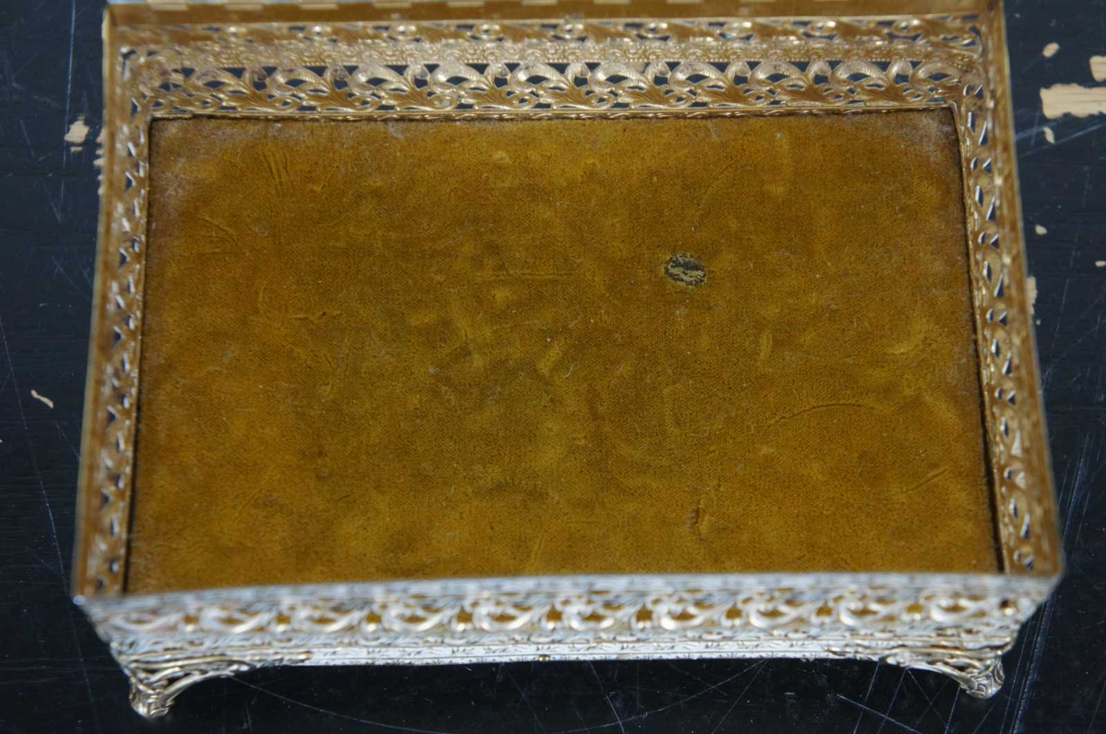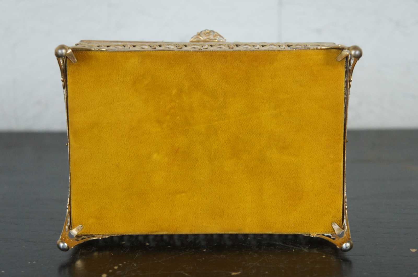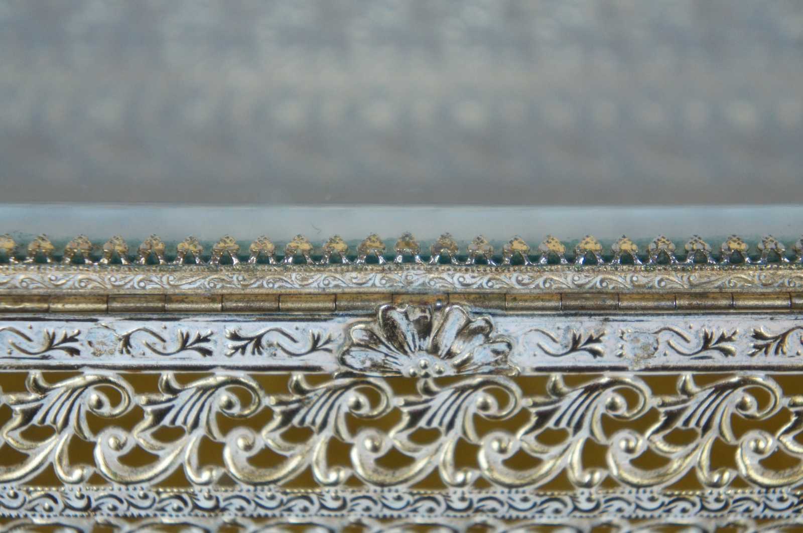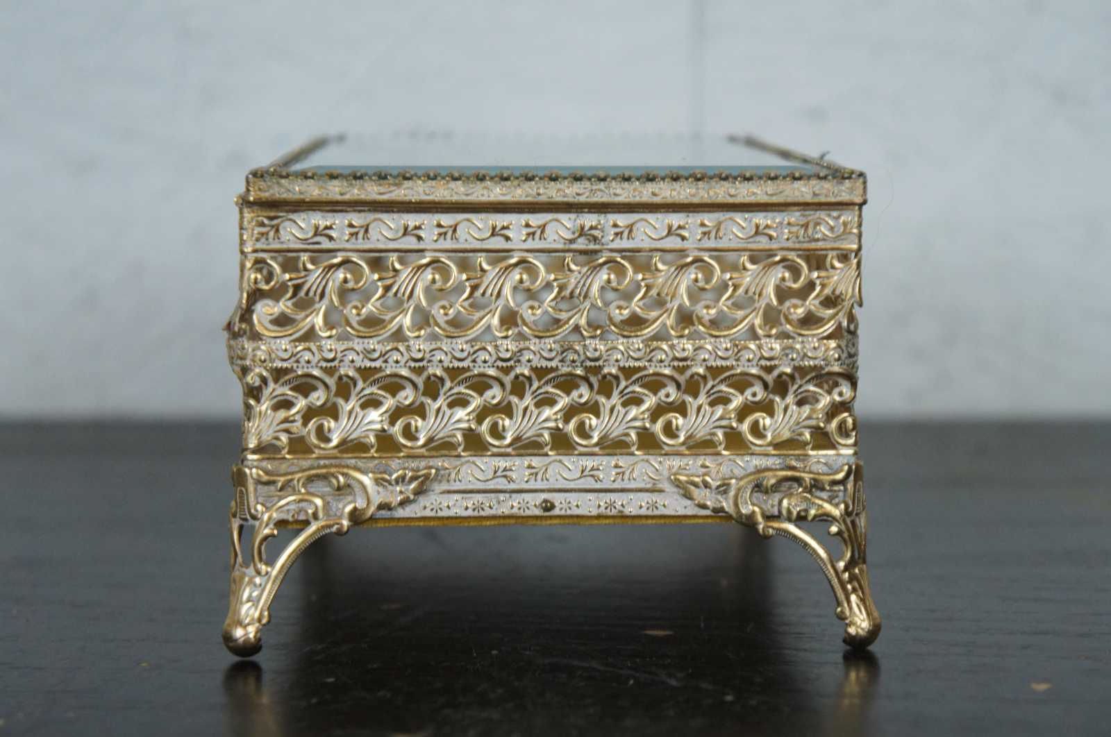 Antique French Regency Brass Filigree Jewelry Casket Trinket Box w Beveled Glass