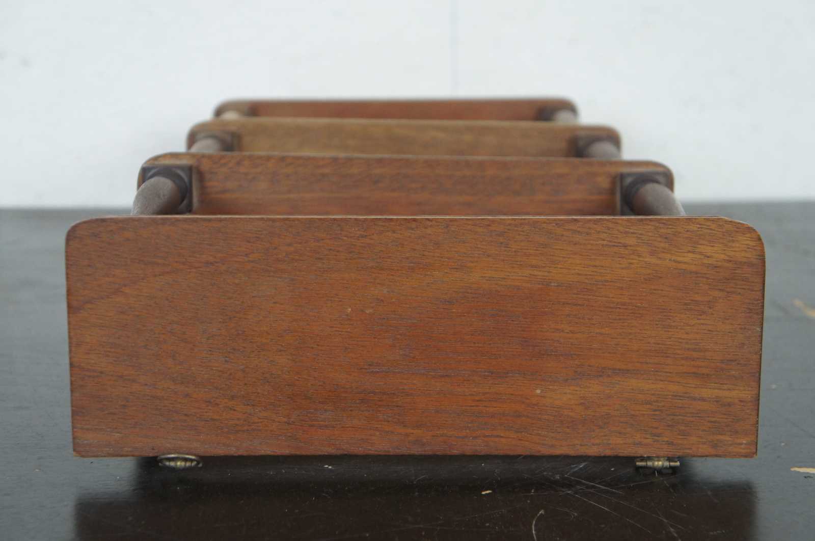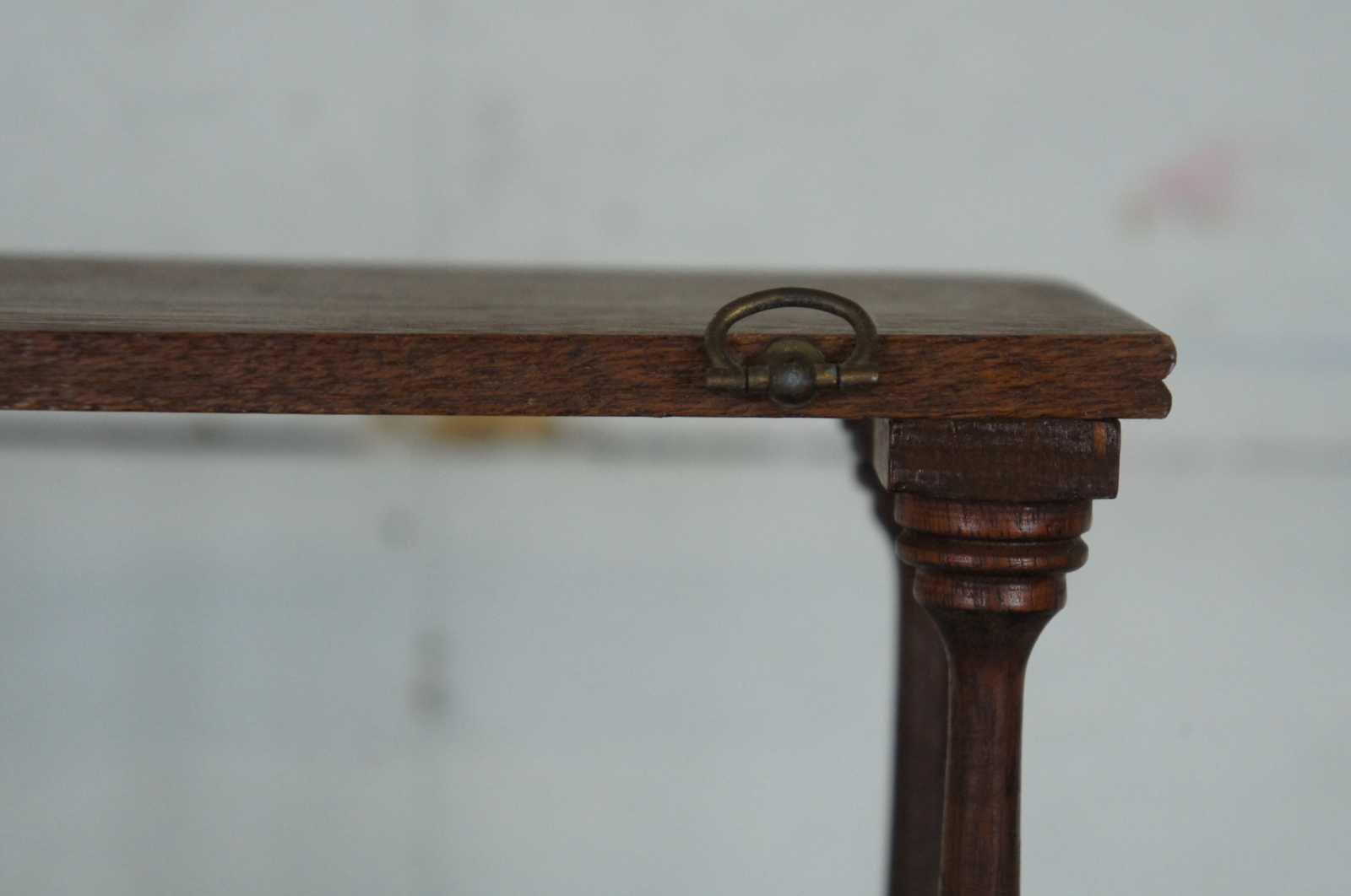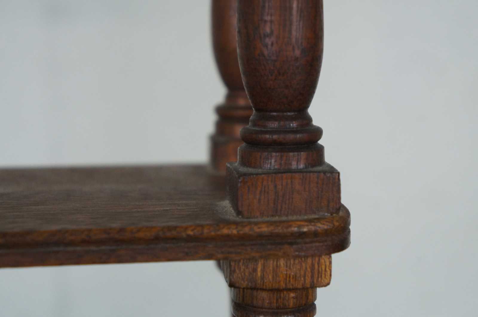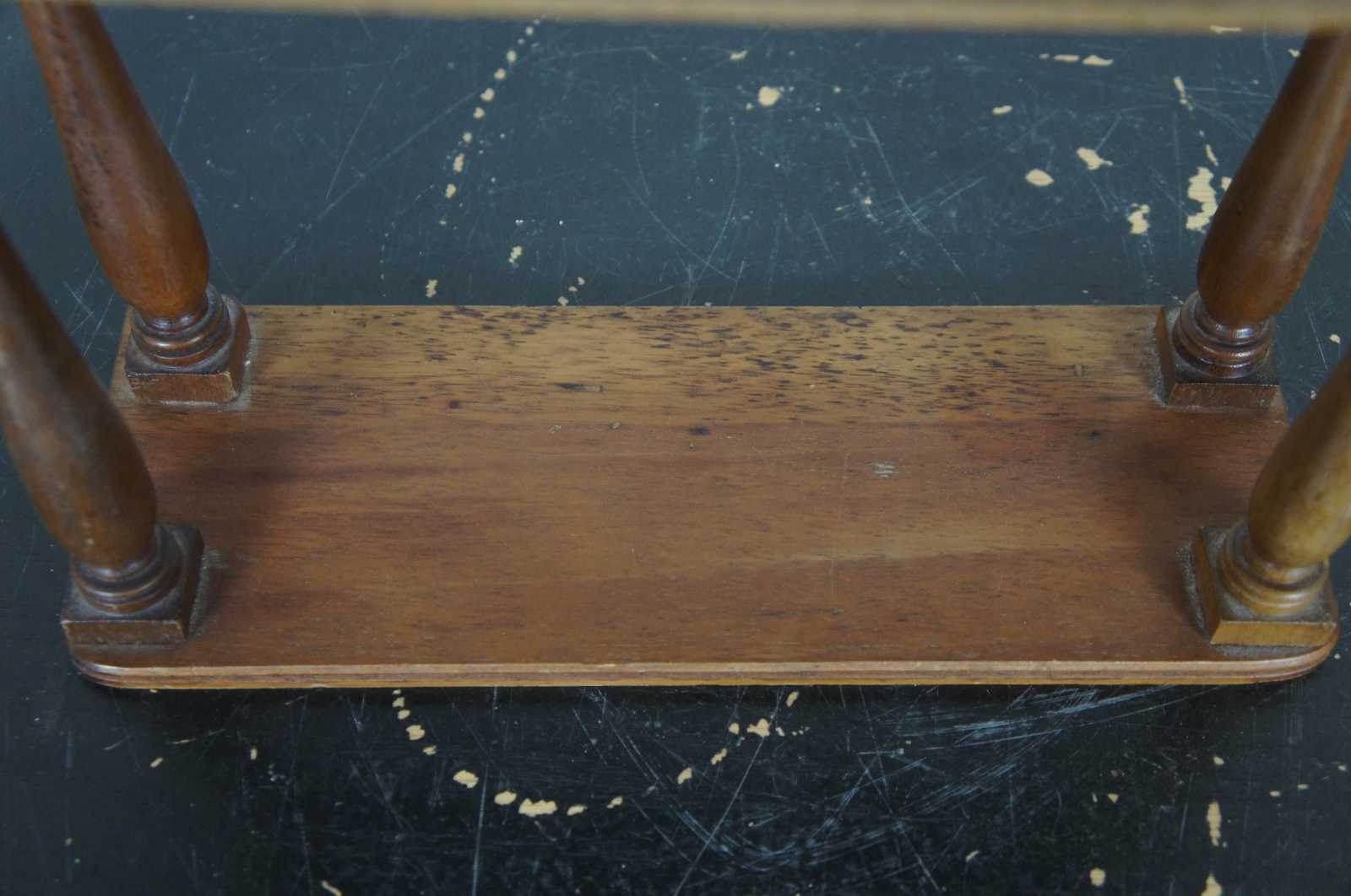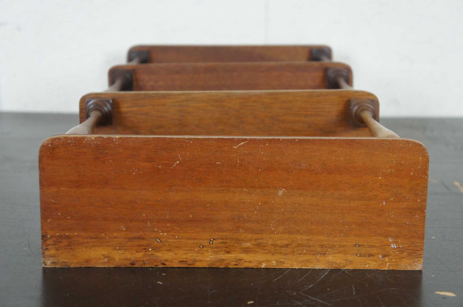 Antique walnut early American wall hanging etagere curio shelf unit with four tiers supported on turned spindle columns.