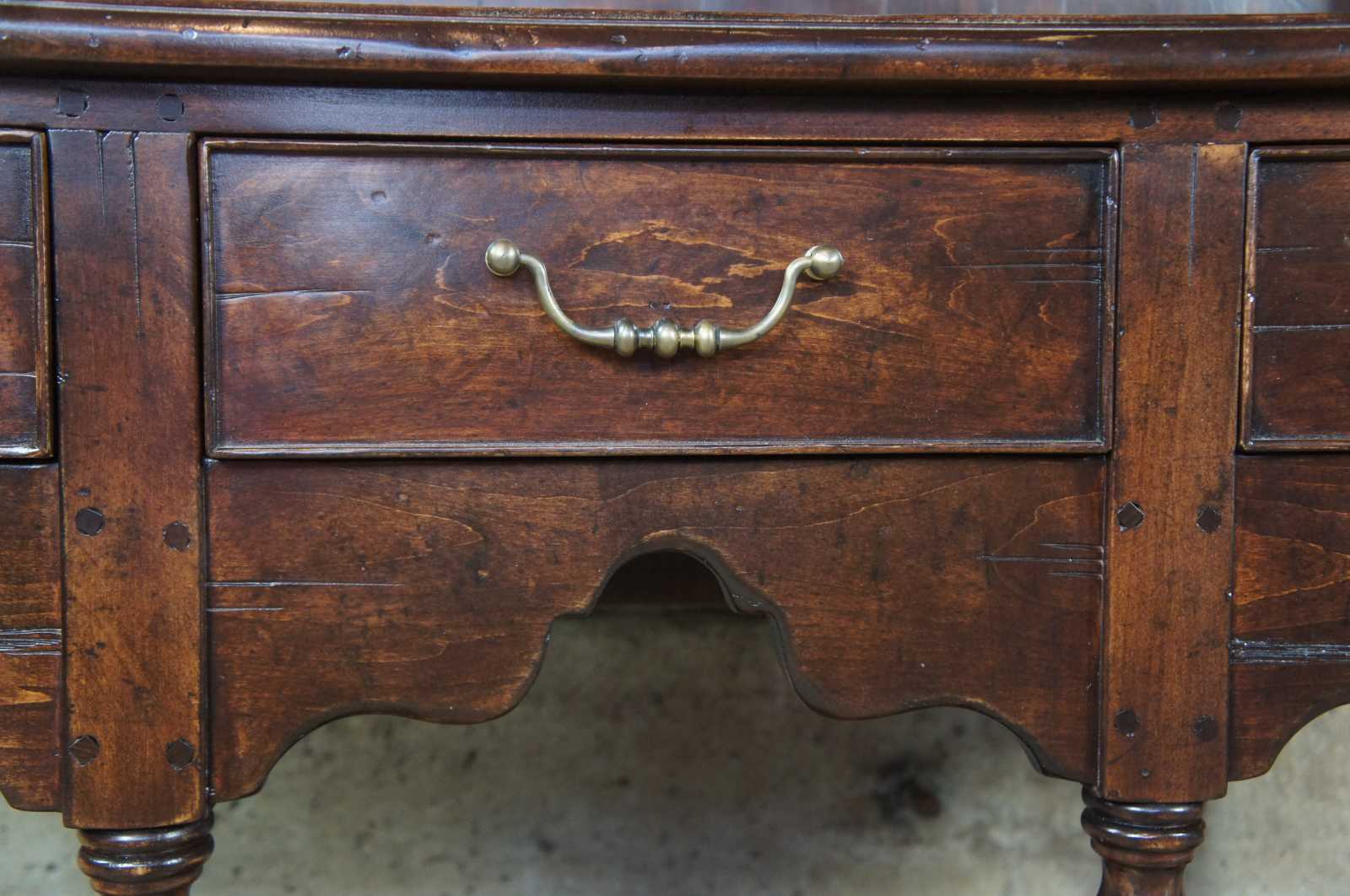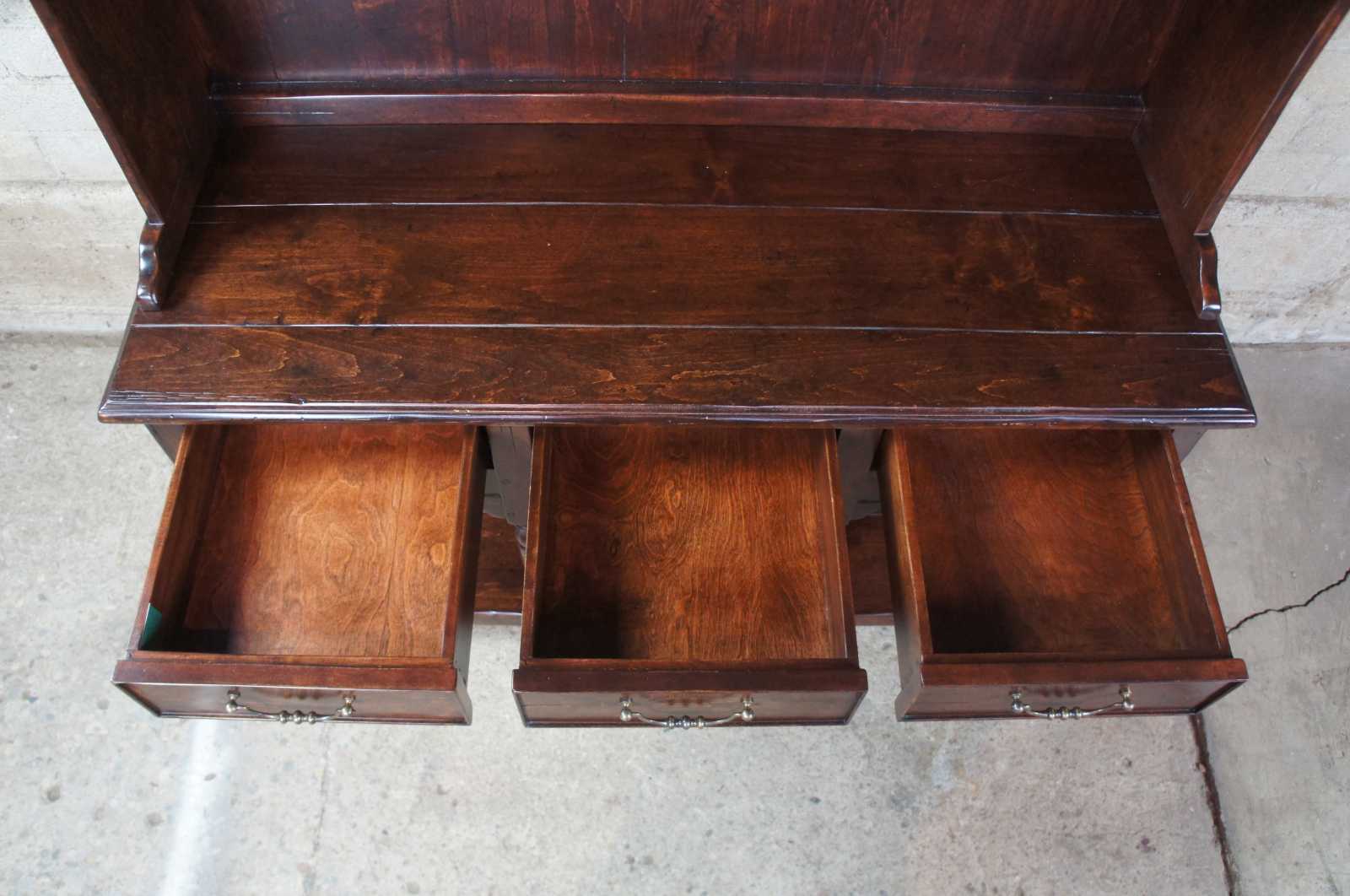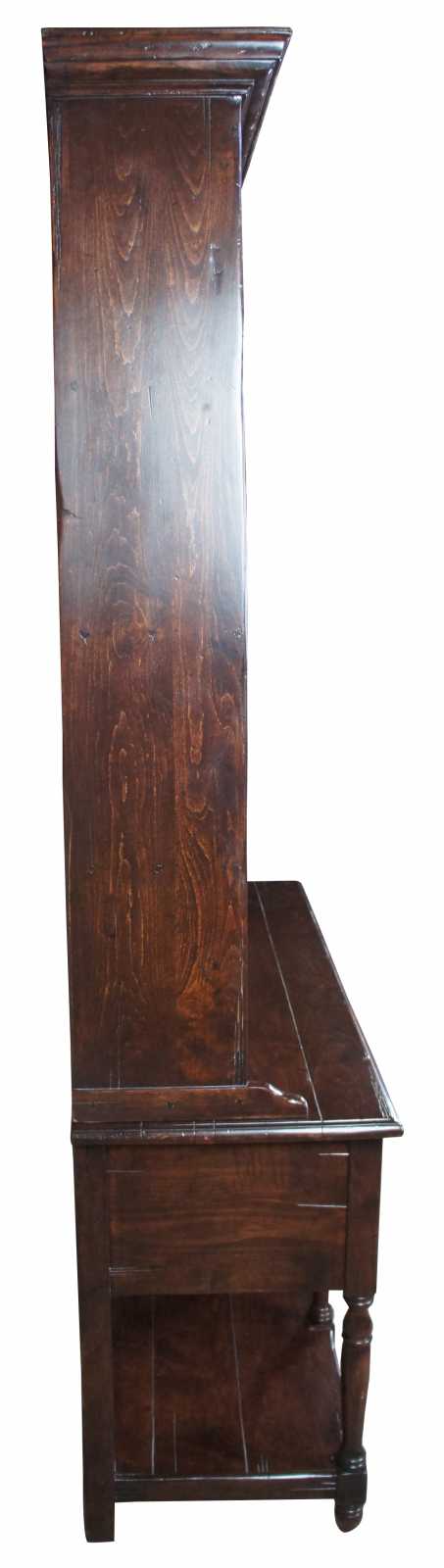 The Sterling Collection H-014 / S-014 English hutch and sideboard. Drawing inspiration from the 18th century Welsch dresser or cupboard, with a long three drawer sideboard and tall hutch for storage. Finely crafted from pine with dovetailed drawers and bail pulls. The Sterling Collection combines four decades of experience with many centuries of European furniture-making tradition.