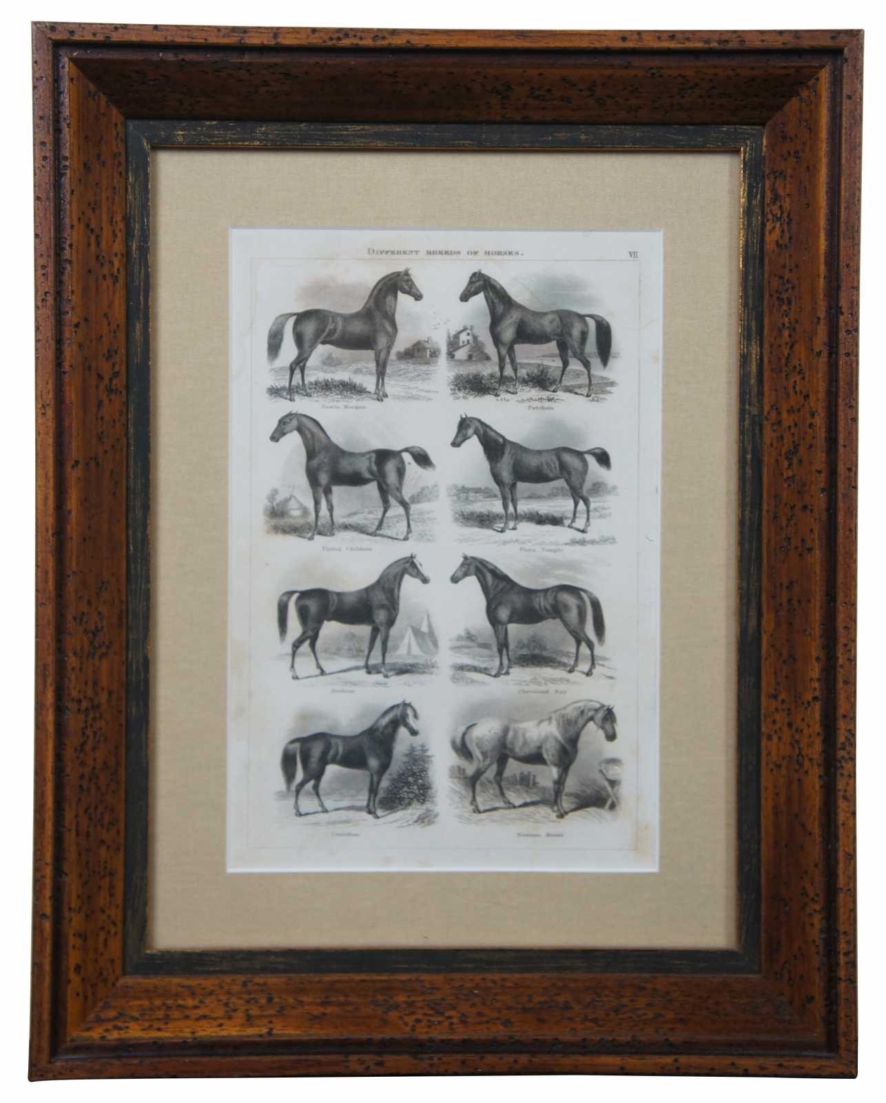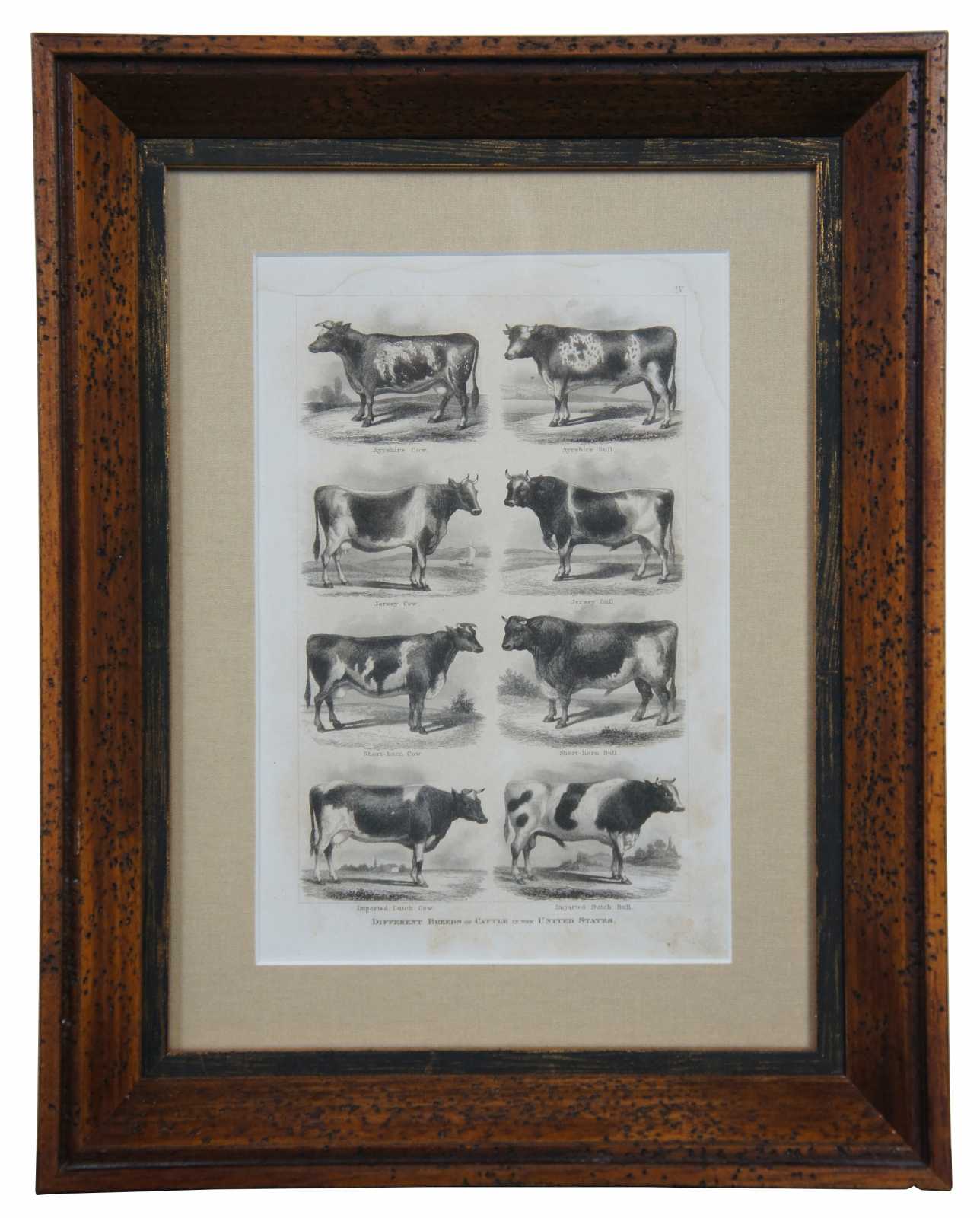 Pages 4 & 7 of Facts for Farmers - Materials fror Land-owners about Domestic Animals, Gardens and Vineyards, Edited by Solon Robinson in Two Volumens New York, A.J.Johnson 1873. Featuring Different Breeds of Horses and Different Breeds of Cattle in the United States. Professionally framed with rustic distressing.