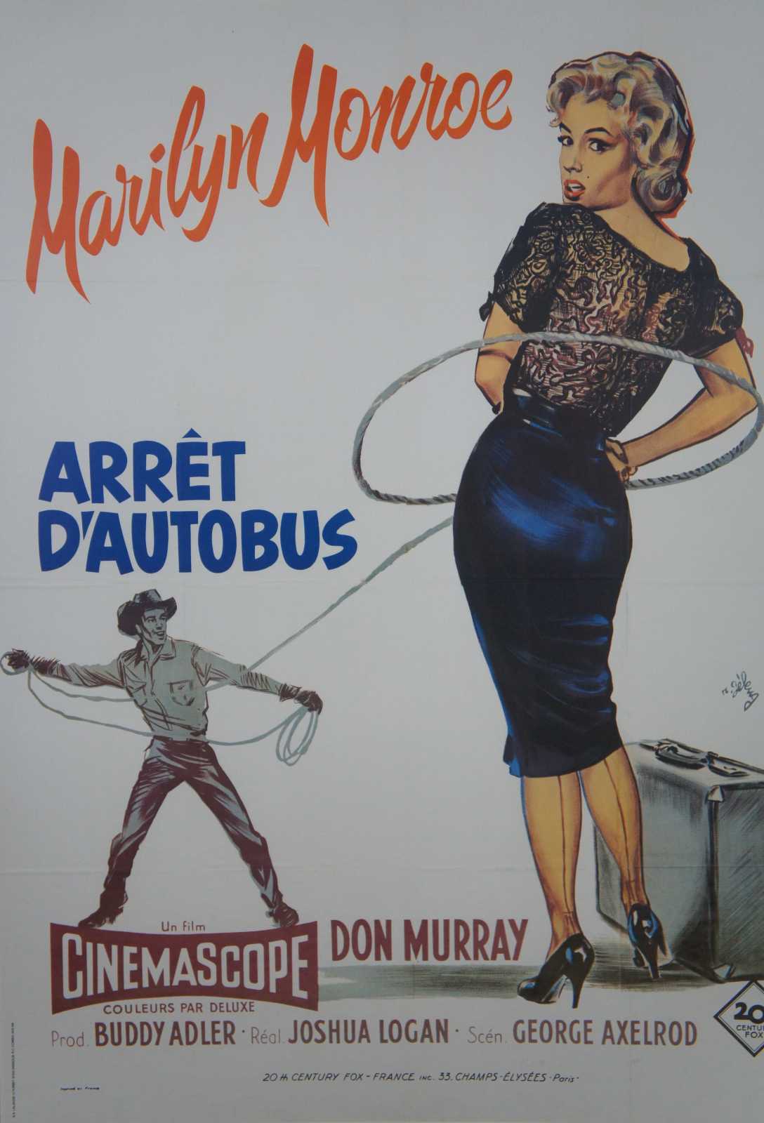 BUS STOP, 1956. Original French “Grande” Movie Poster from a re-release of the movie in the 1970’s. The movie starts Marilyn Monroe, Don Murray, Arthur O’Connell, Betty Field, Eileen Heckart and was directed by Joshua Logan. Cowboy meets singer and falls in love with her in this her 7th best selling movie.