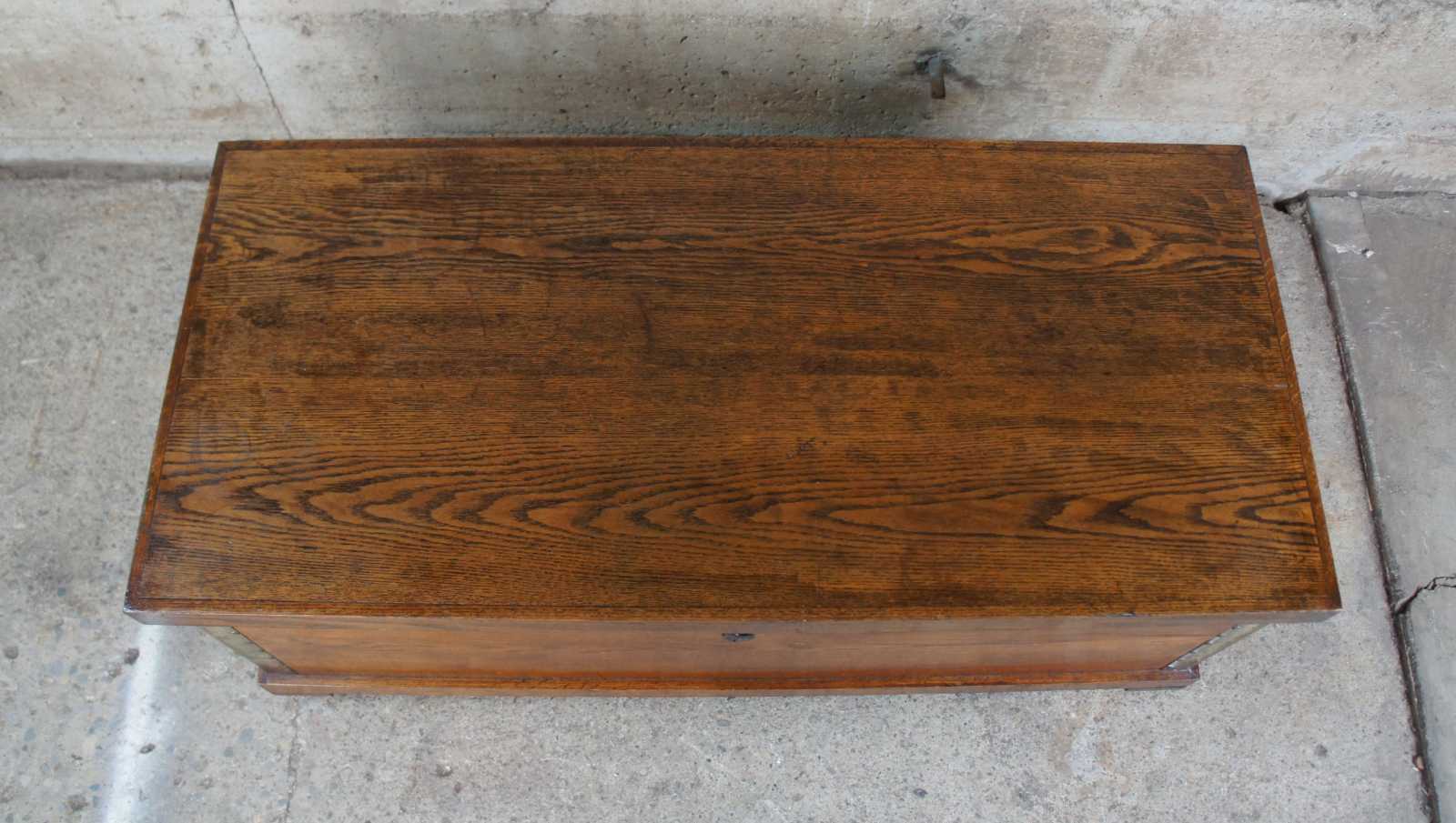 Antique late Victorian oak and brass chest or trunk. Features brass lined corners and edges, and cedar interior.