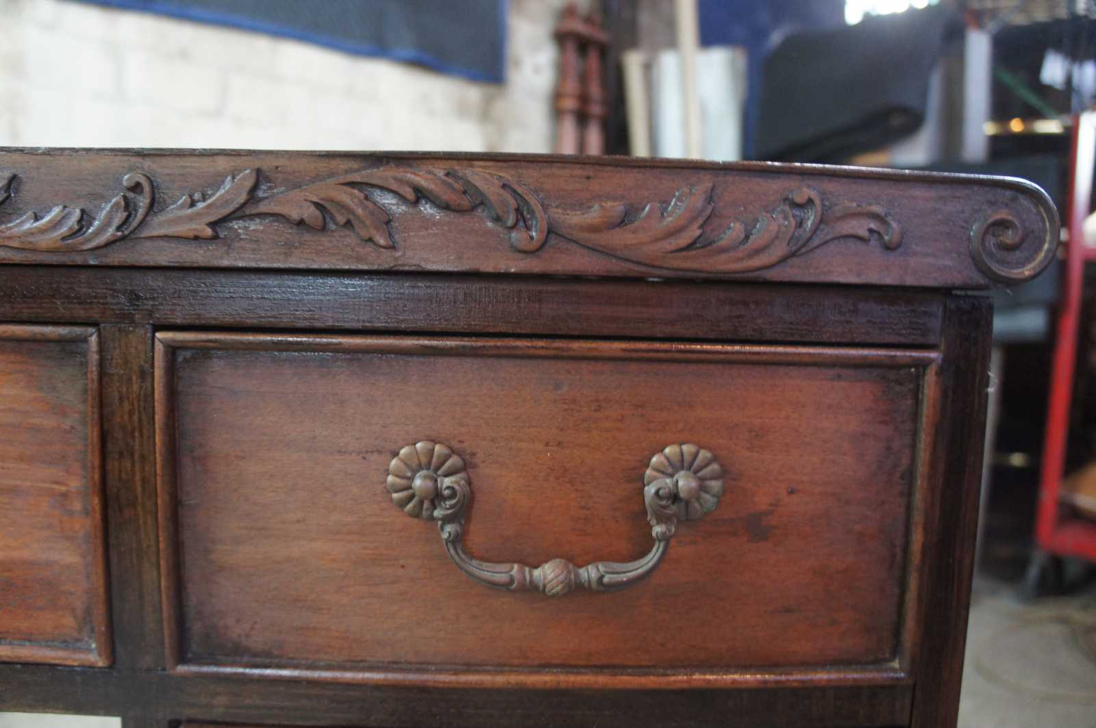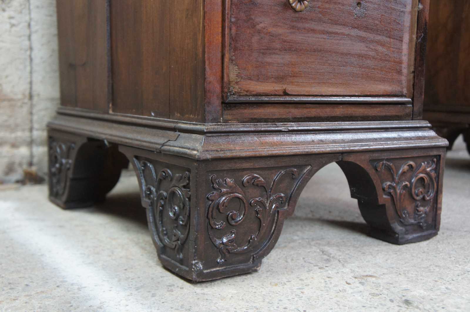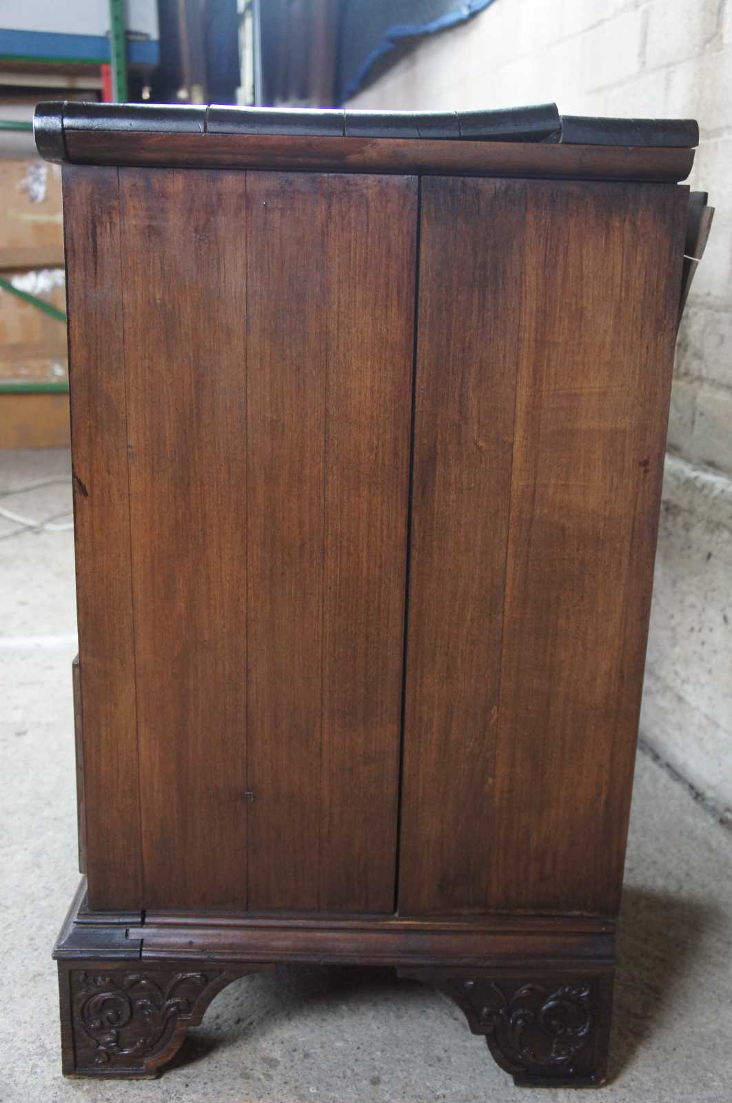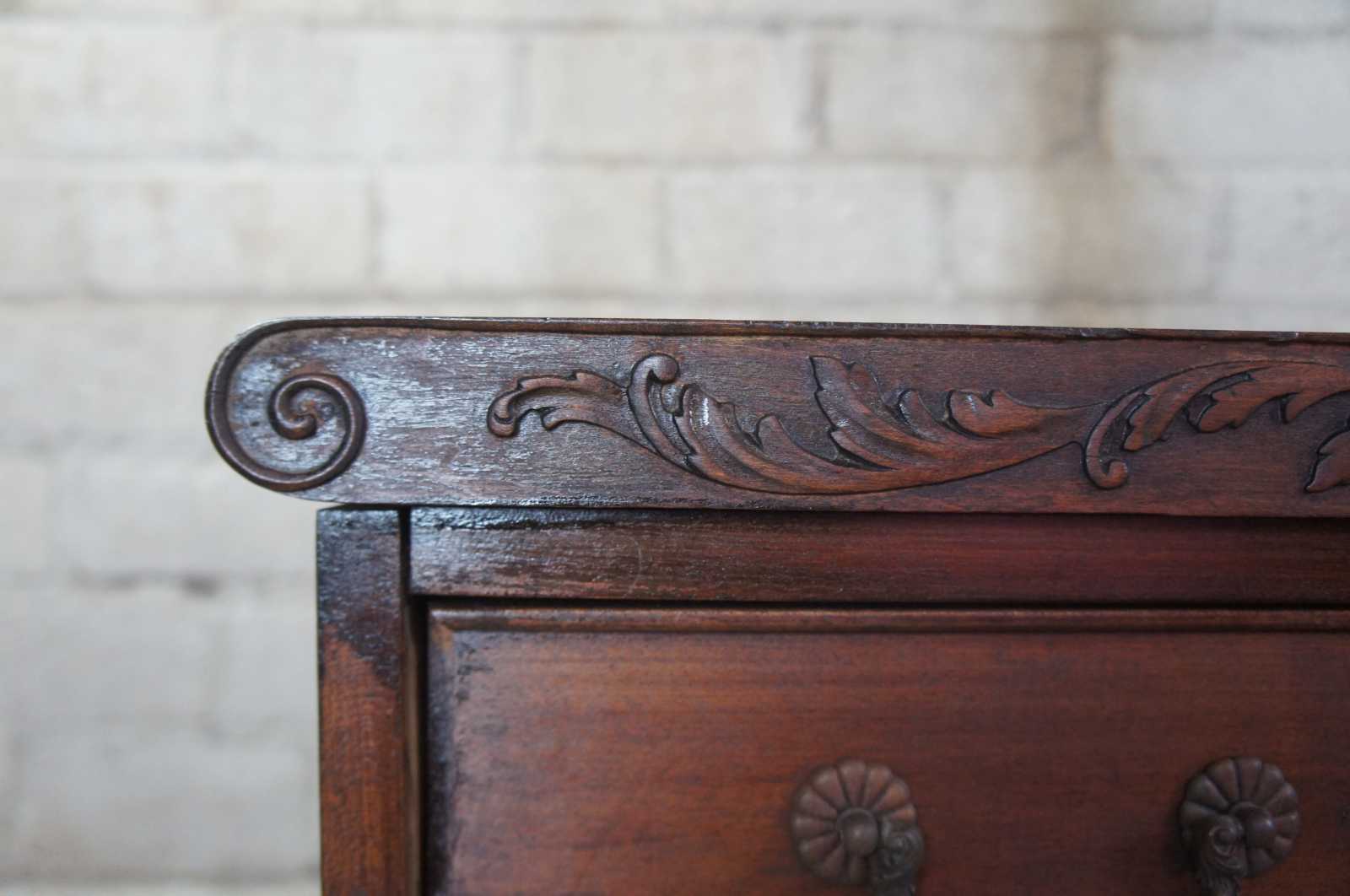Circa 1940s Rococo Revival desk. Made from walnut with seven drawers and ornately carved detail.