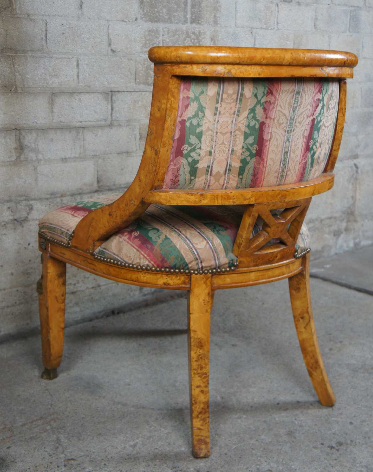 good antique condition, wear commensurate with age; some veneer loss, fraying to fabric, distressing