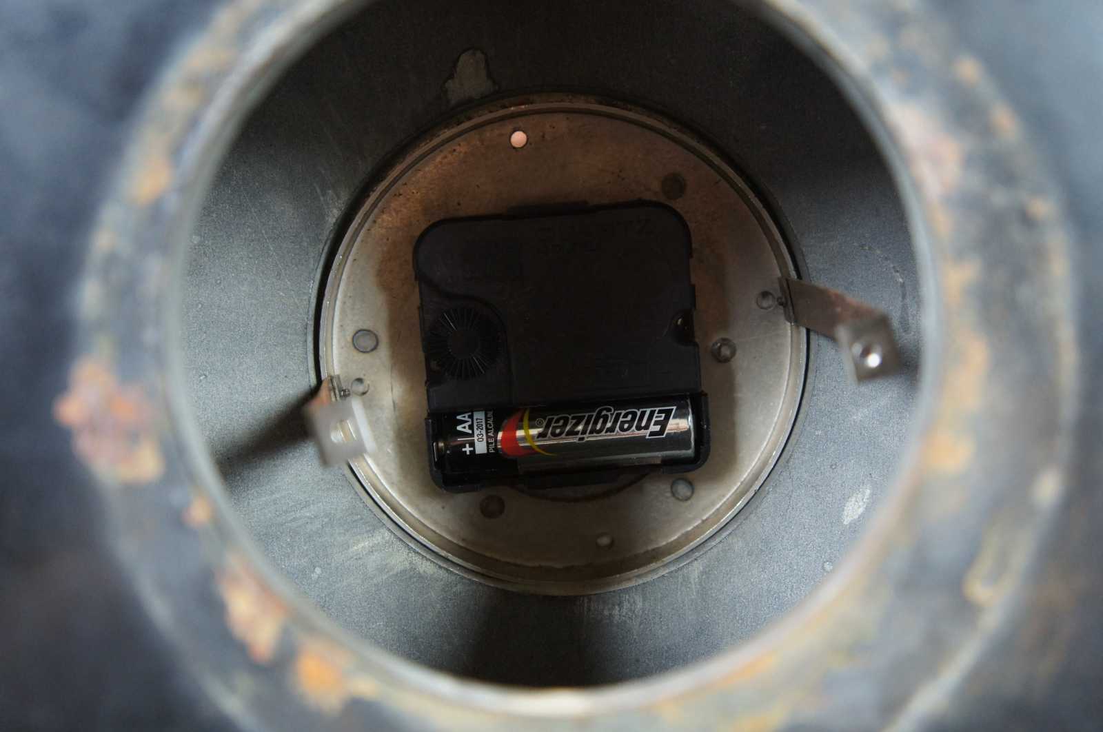 Very Good - Several chips/cracks; slight wear/no glass on clock face; original works included but replaced with battery operated works; see pictures
