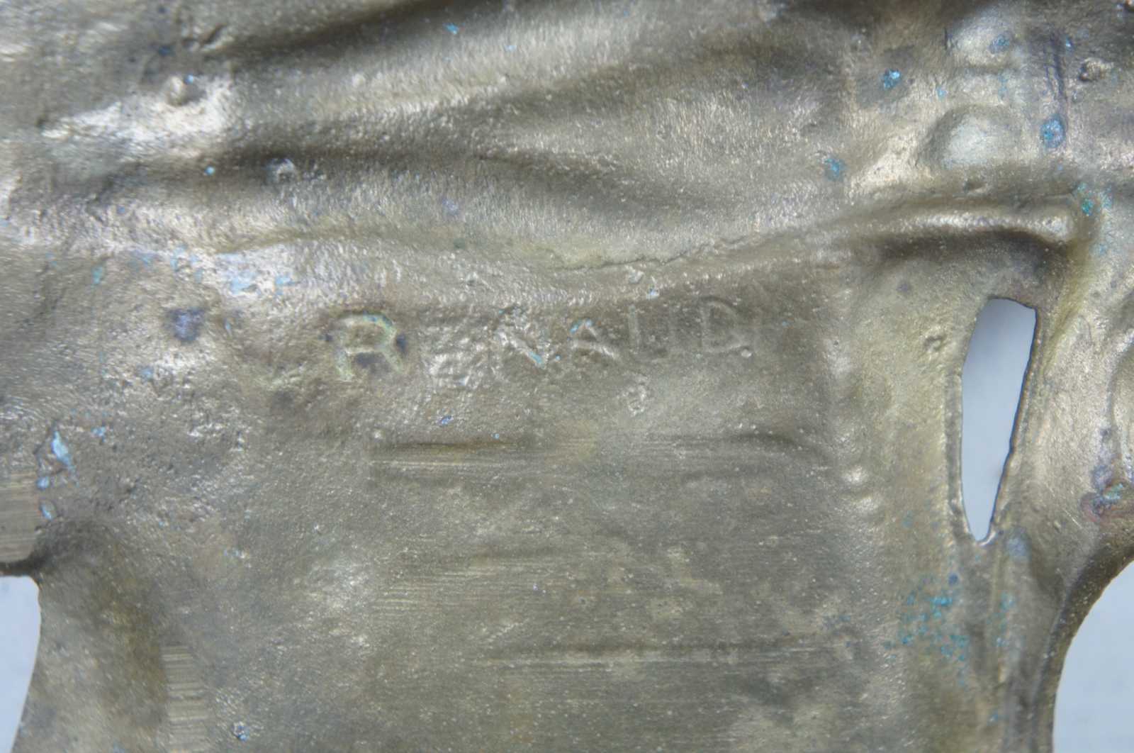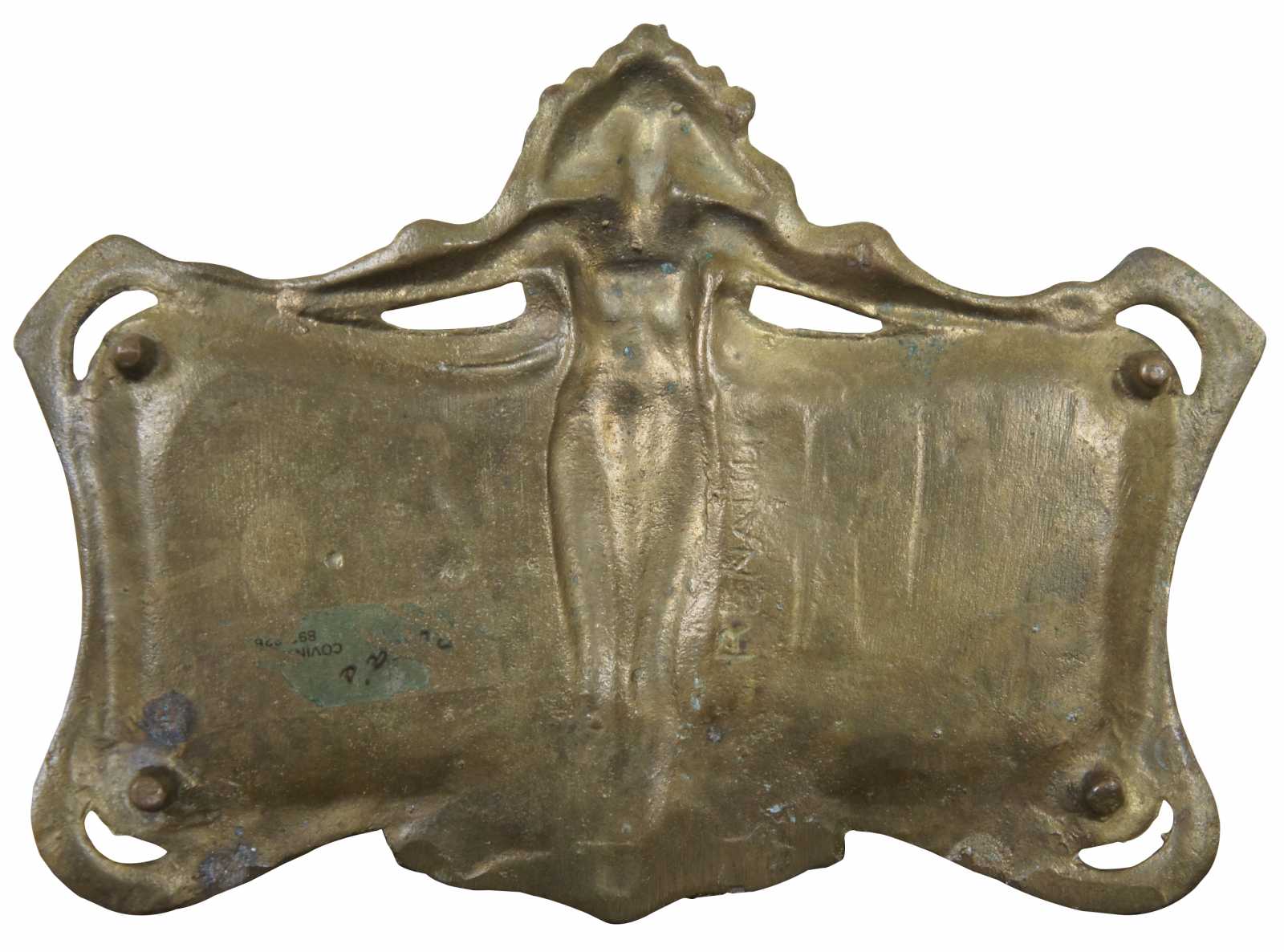 Francis Renaud (1887-1973) Bronze tray. Rectangular ash tray or trinket dish featuring a female figure with her arms outstretched.