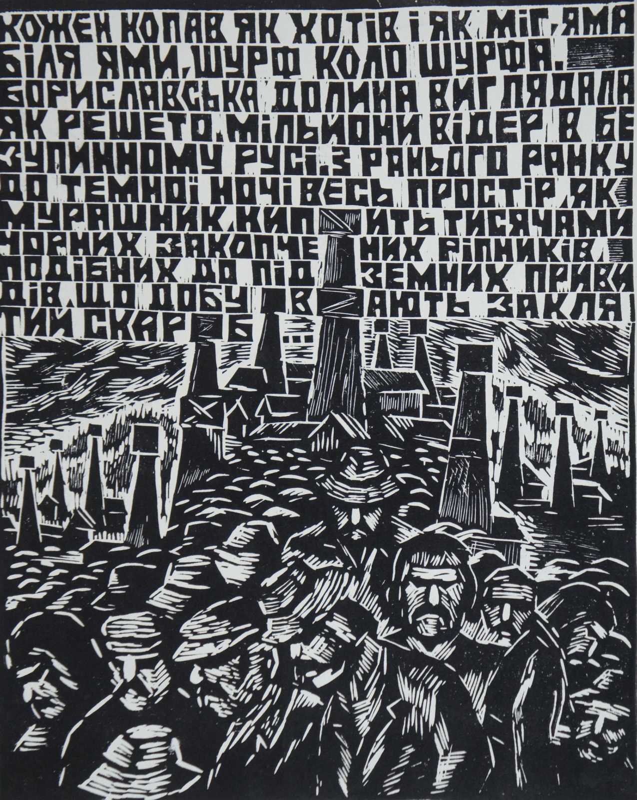 ""Everyone dug as he wanted and as he could, pit after pit, pit after pit. The Borislav Valley looked like a sieve. Millions of buckets in non-stop movement ""from morning to night"", the whole space, like an anthill, boils with thousands of black, smoky workers, similar to underground ghosts, every day sculpt the cursed treasure"".
