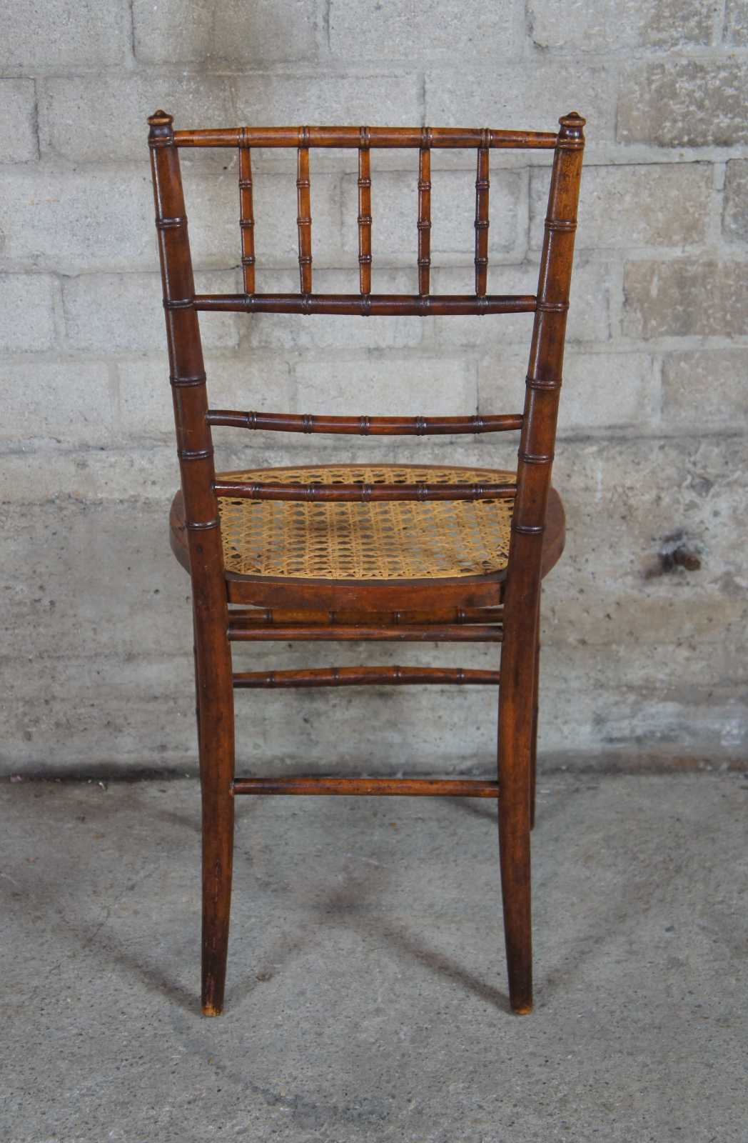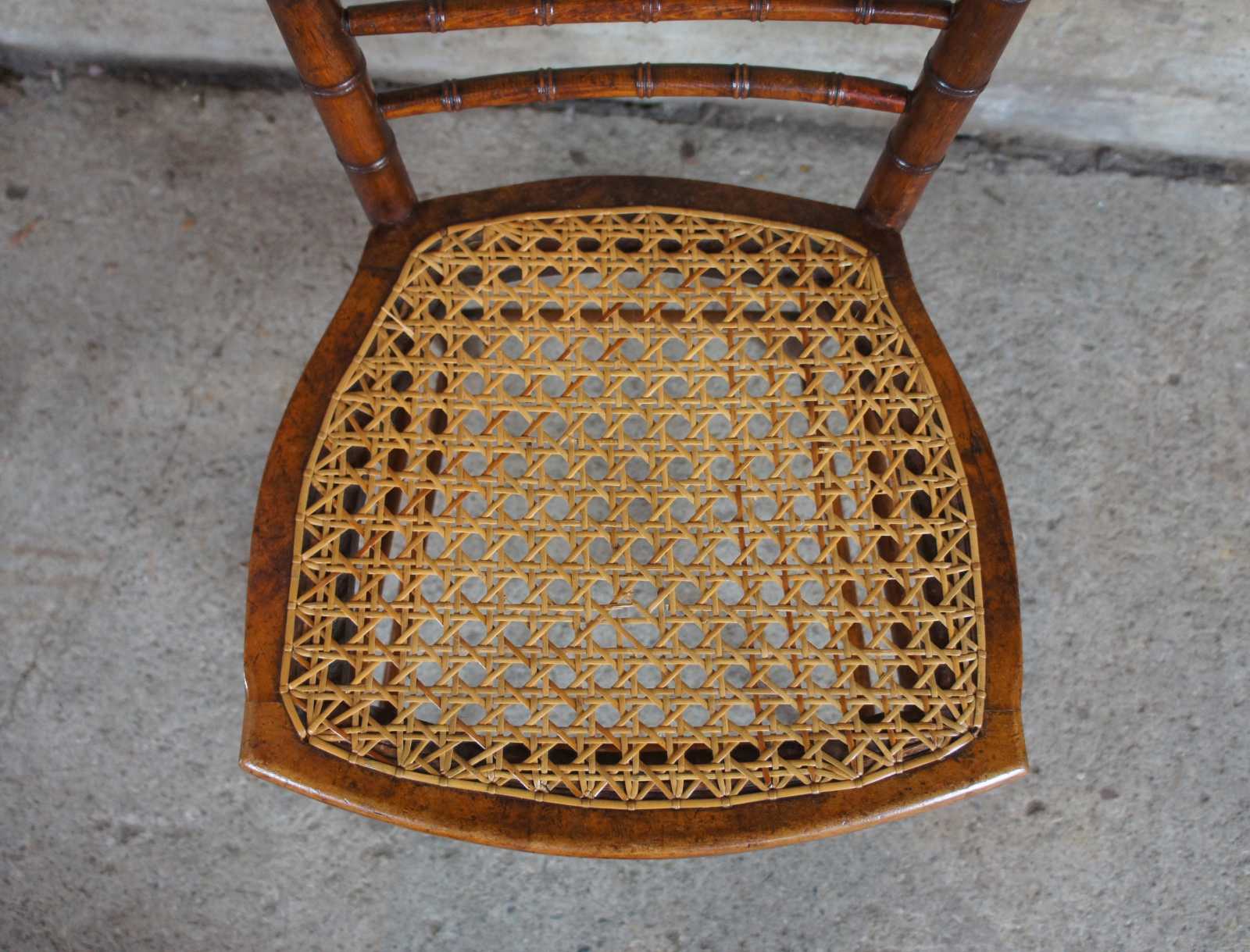 Late Victorian, British colonial inspired side chair. Made from walnut with spindled bamboo like design and cane seat.