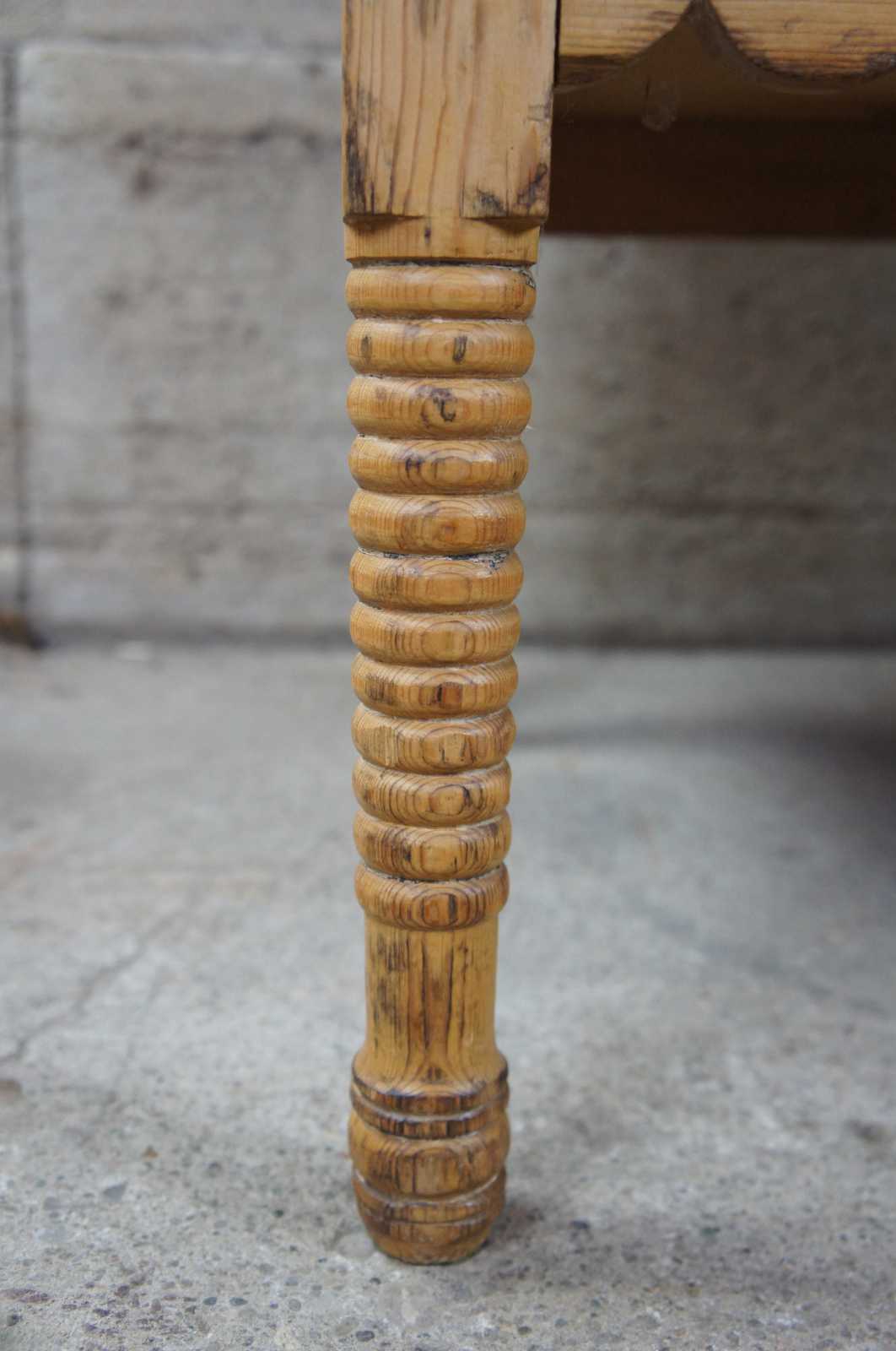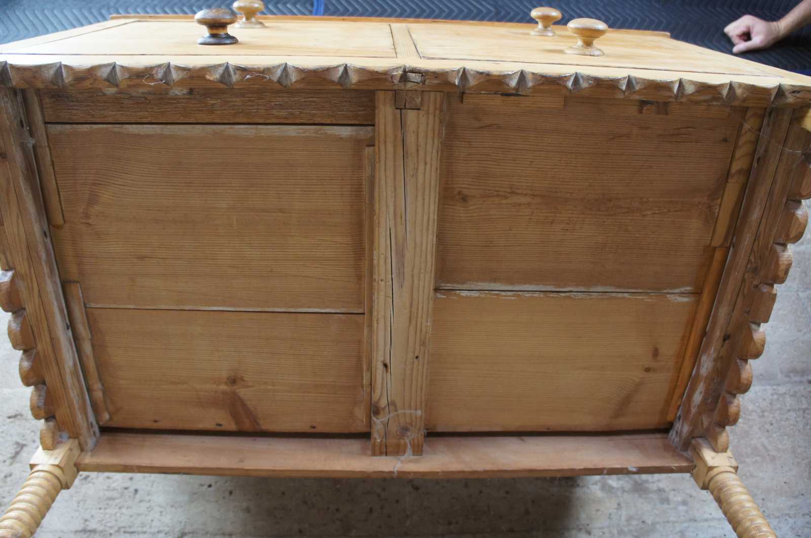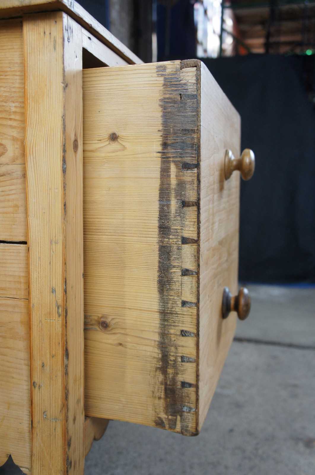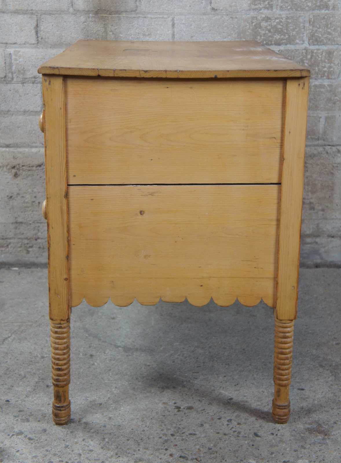 Antique 19th century early American pine chest. Features two large hand dovetailed drawers making for perfect use as a dough bin slash box. Includes carved aprons and ribbed legs.