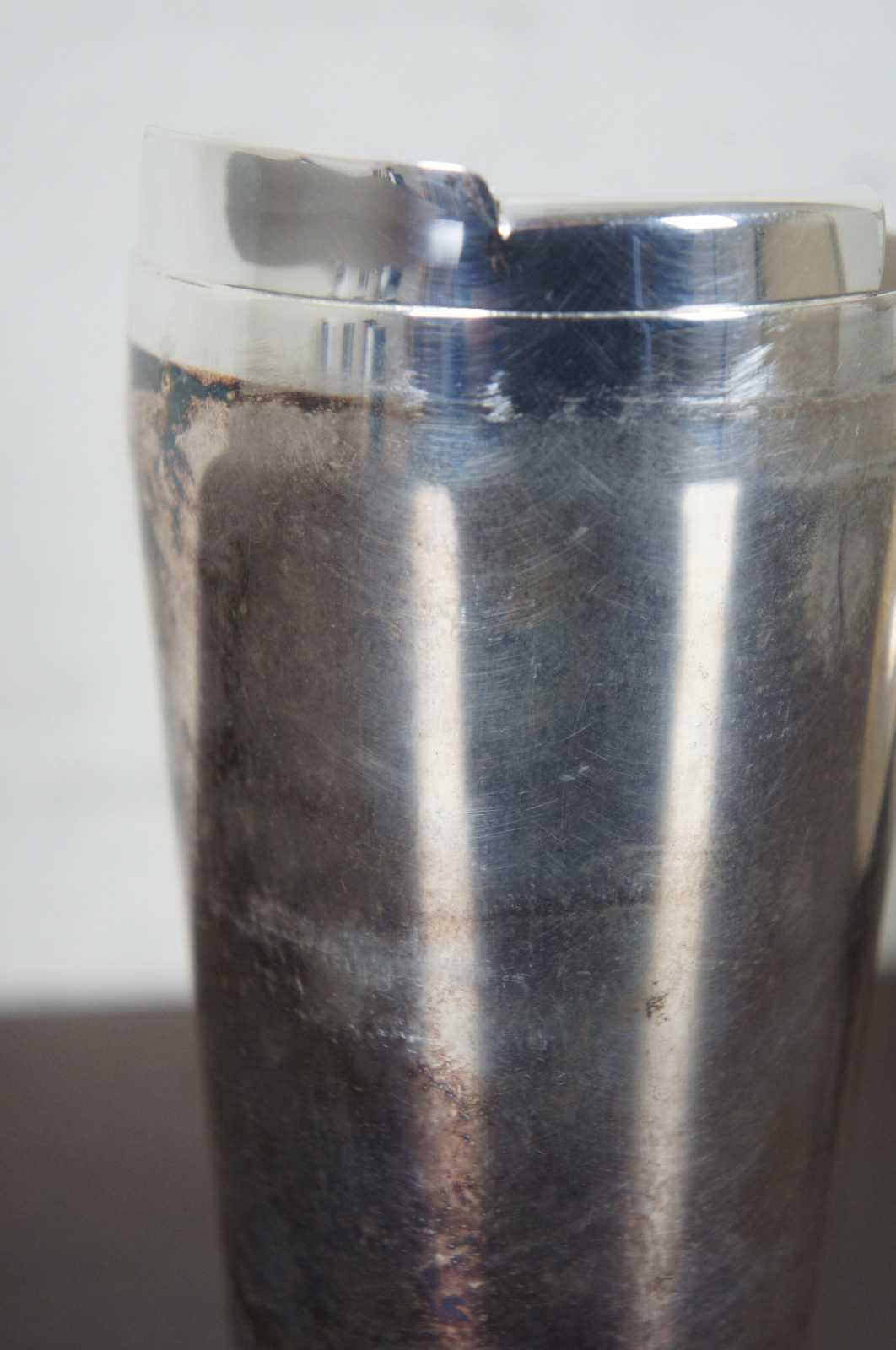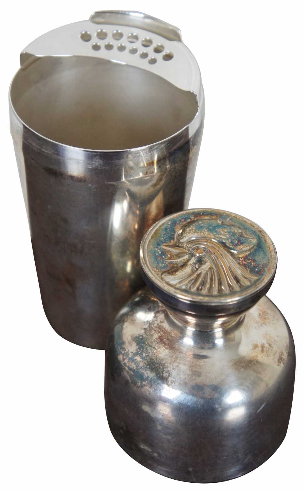 Antique 1930s silver plated cocktail shaker by Napier featuring a rooster on the top of the lid.