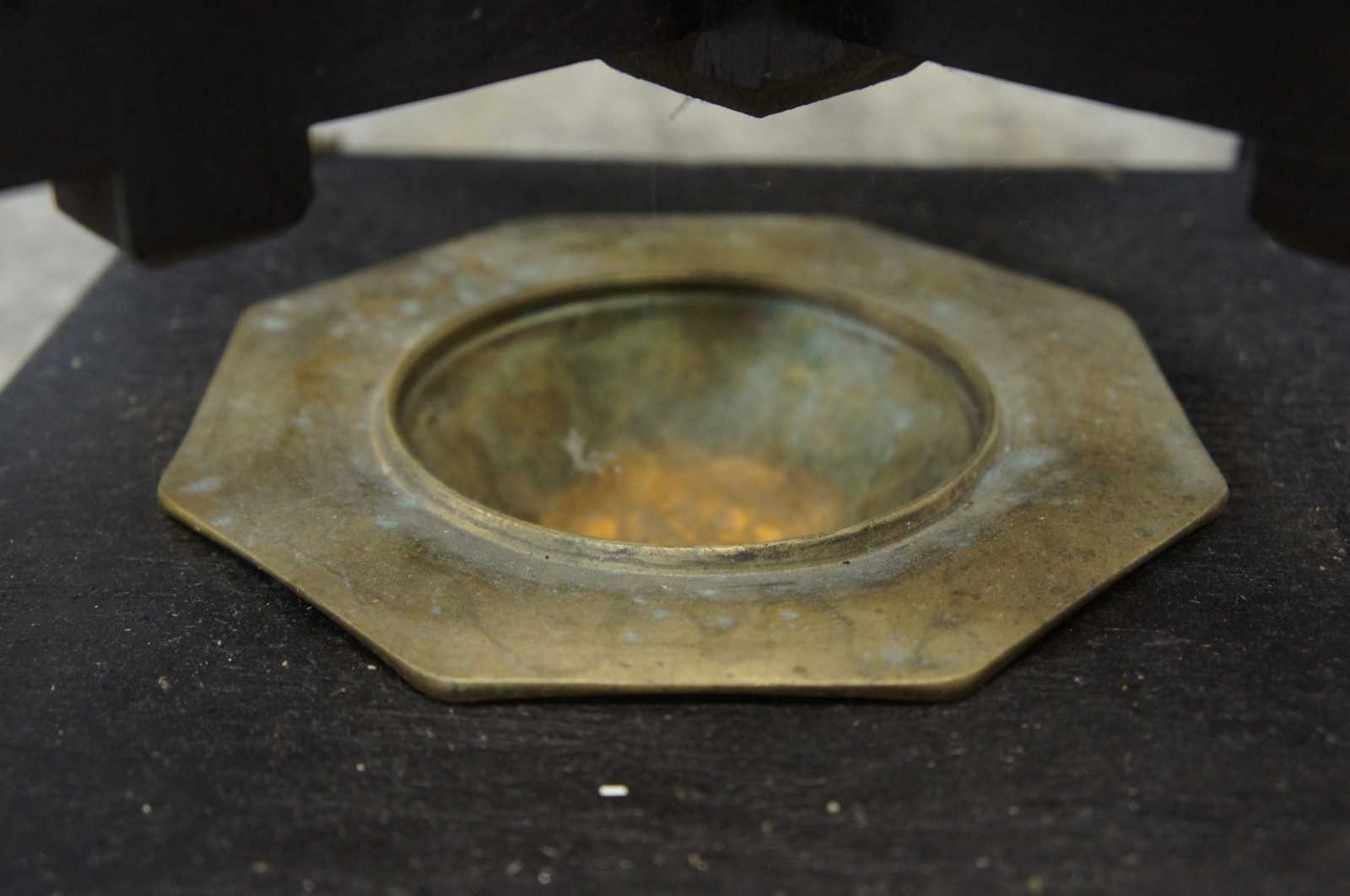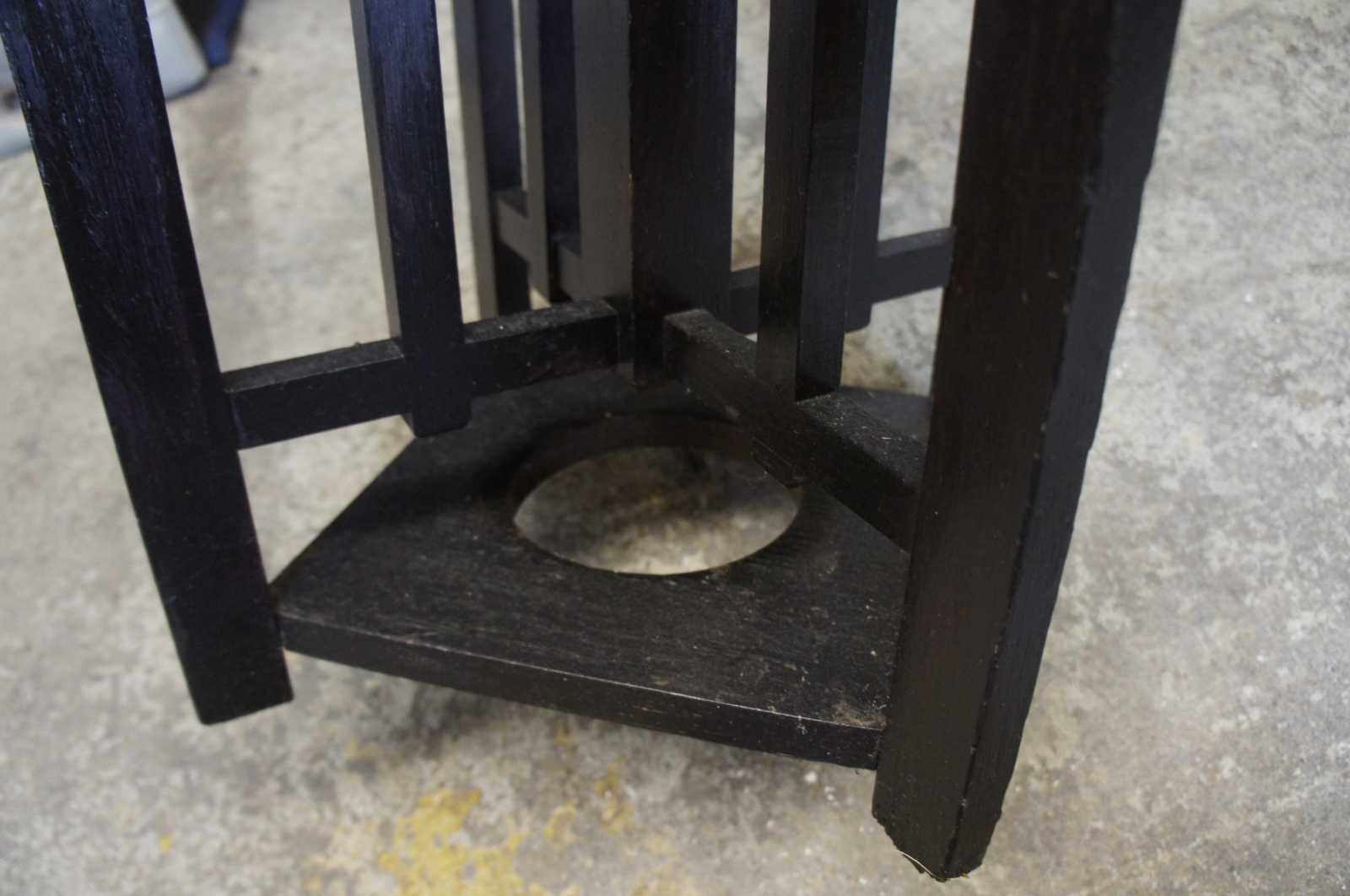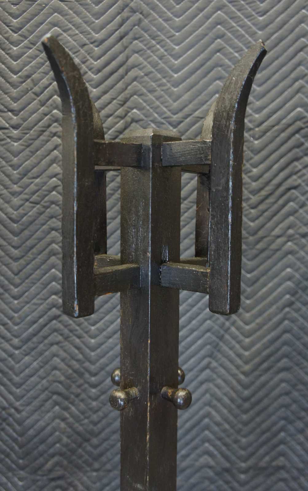 Early 20trh century painted oak mission hall tree. Supported by four legs and a cross spindled base leading up to wooden hooks. The stand has a neat chain design allowing for storage of canes and umbrellas.