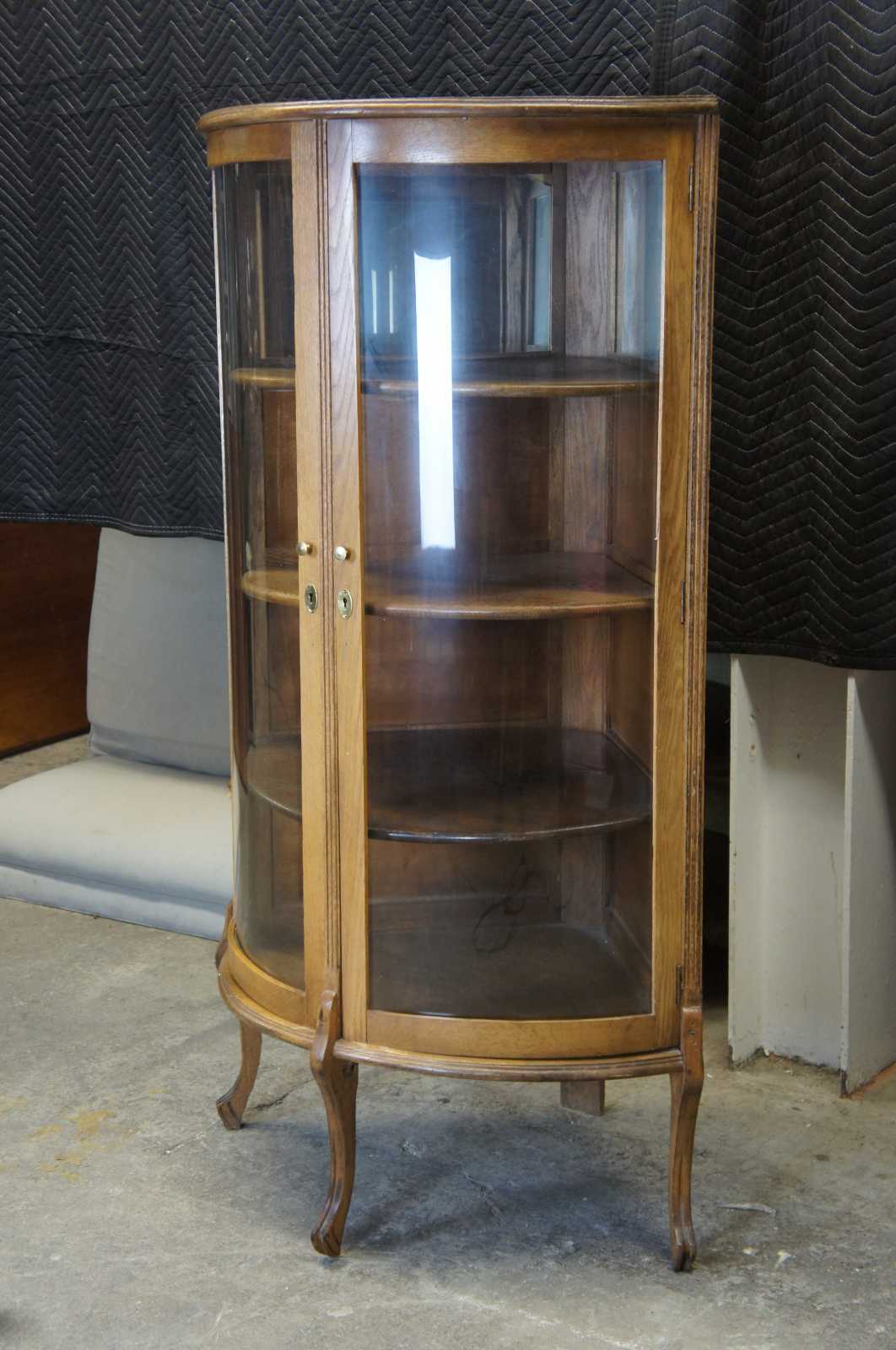 Good antique condition, wear and distressing commensurate with age and use, heavy warping / staining / fading to shelves, light warping and surface wear to top, no key, see pictures.