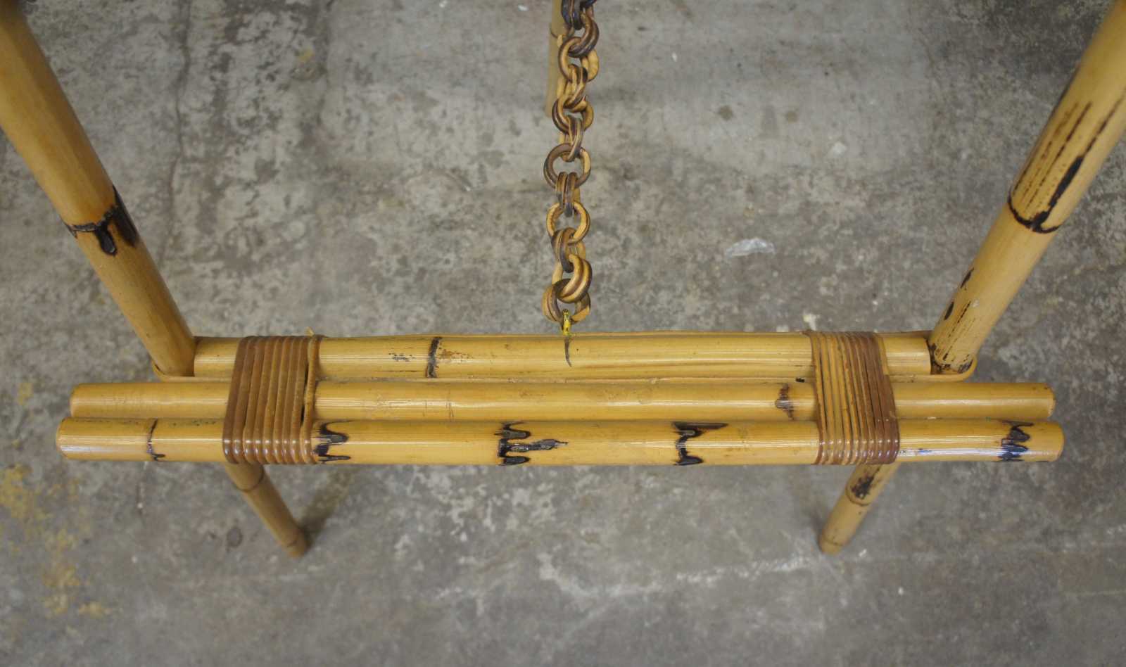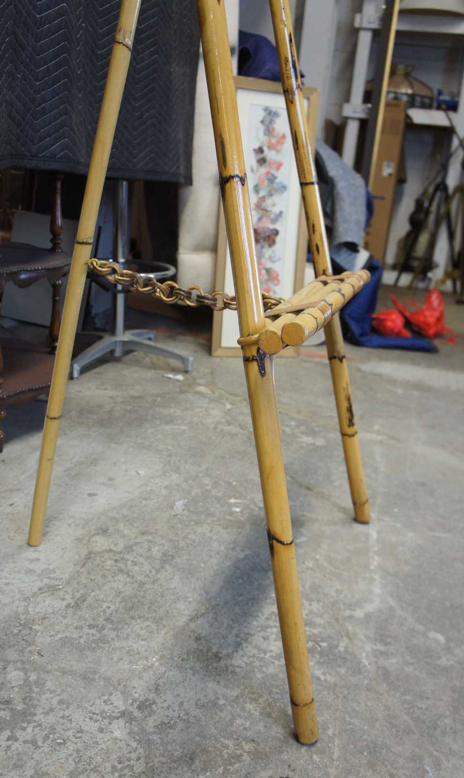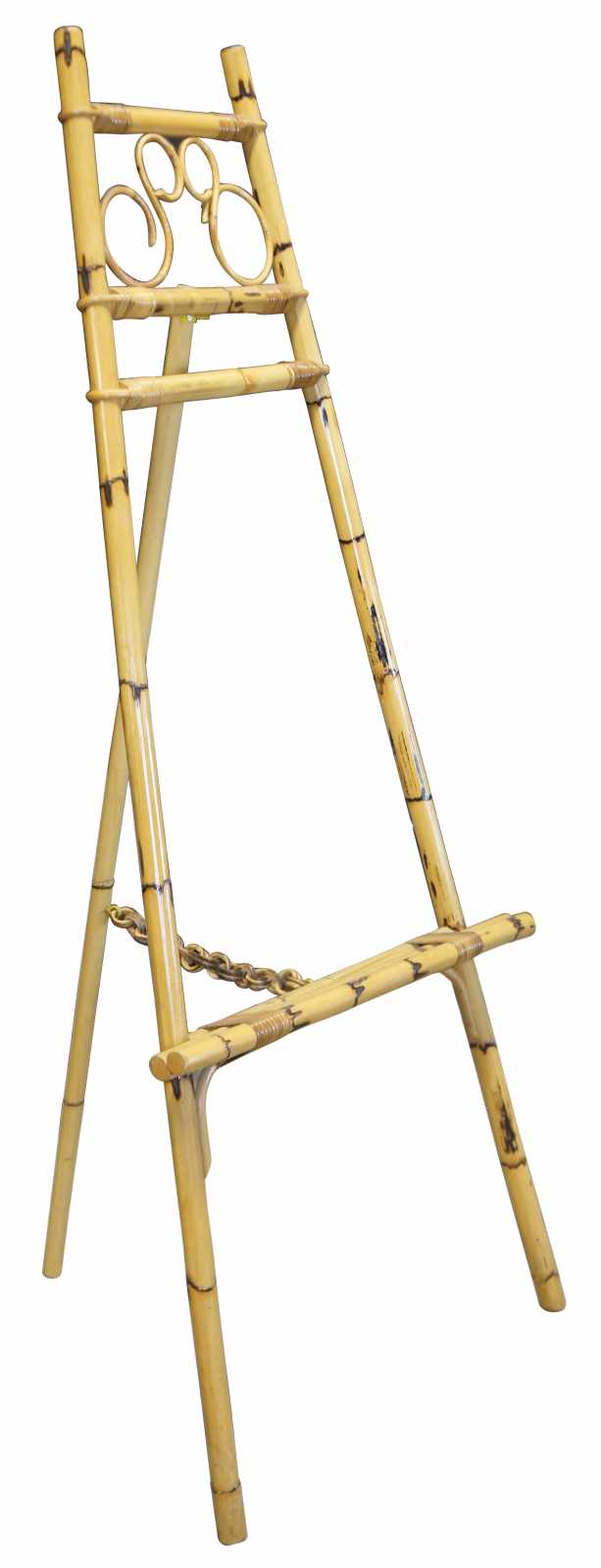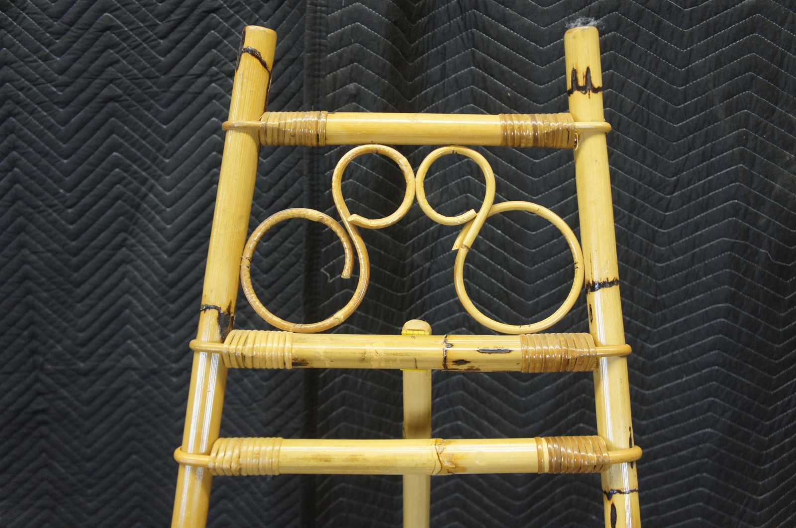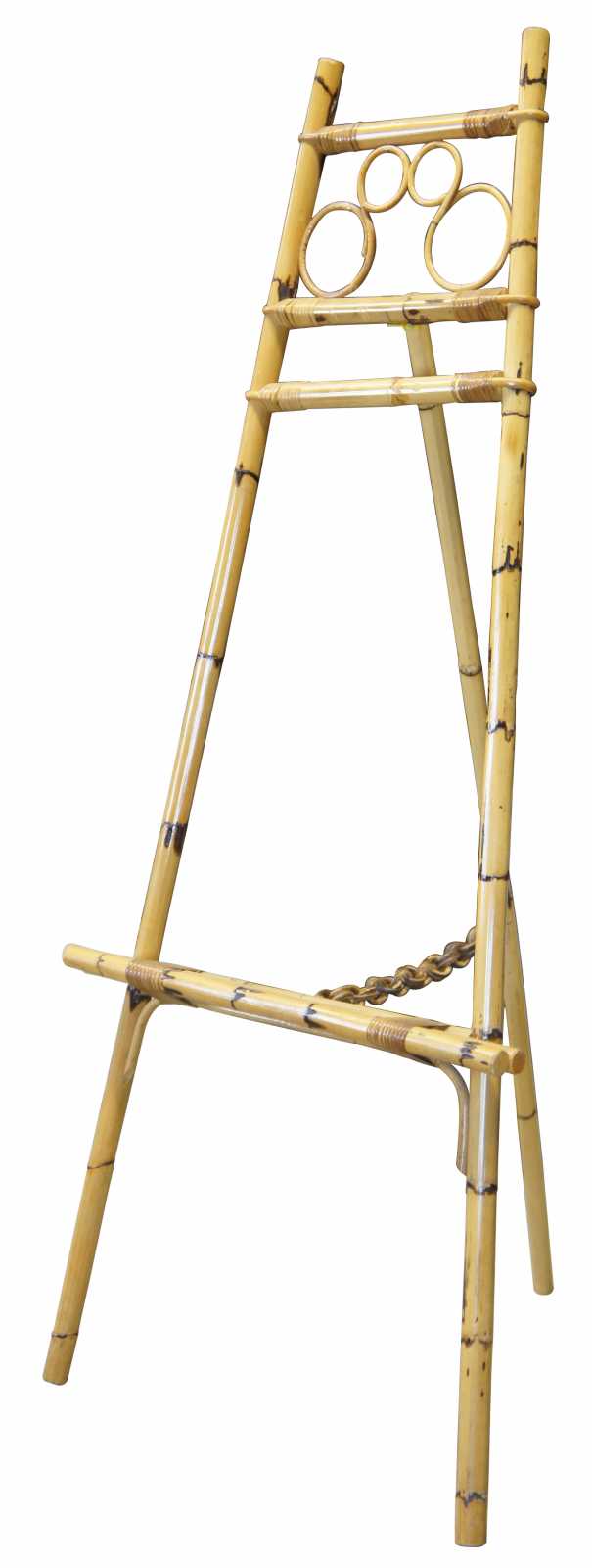 20th century bamboo easel or art stand. Features rattan accents and scrolled design towards top.