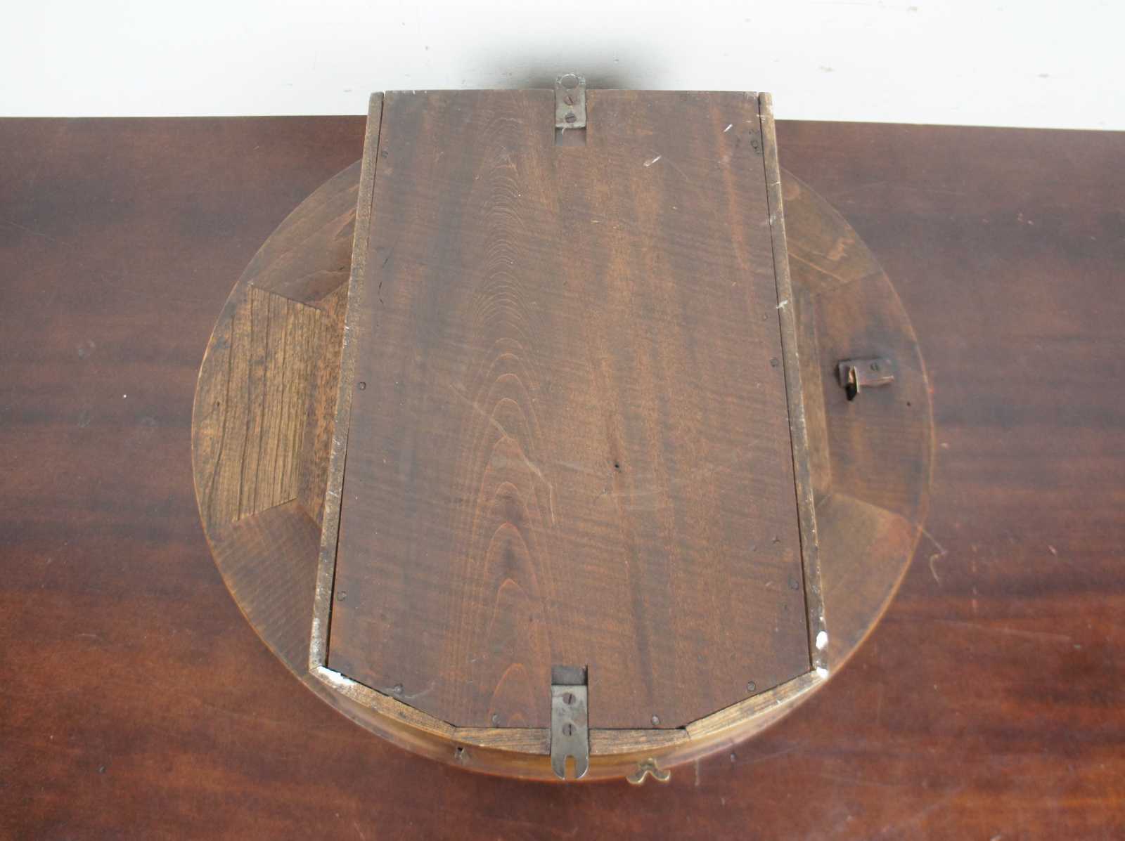 Antique round oak wall clock with “Drink Coca-Cola in Bottles” face. Features a neat design with peek through pendulum and key. Attributed to The Sessions Clock Co. of Connecticut.