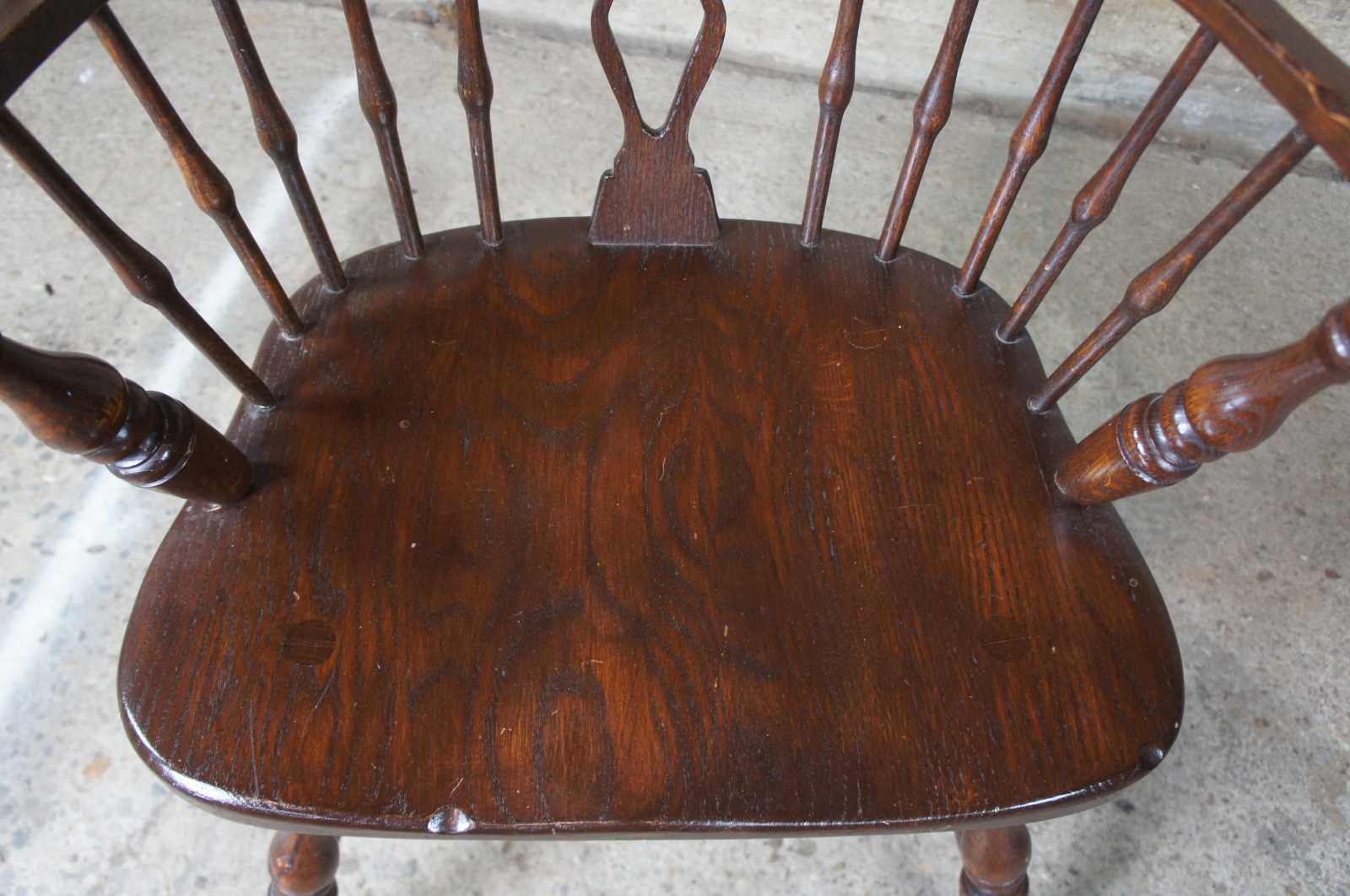 Circa 1970s Cushman Colonial Stone House Collection Windsor dining chairs. The Stone House Collection was by General Interiors for HT Cushman Manufacturing Company.
