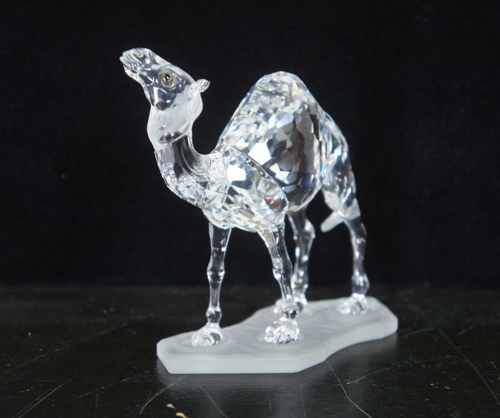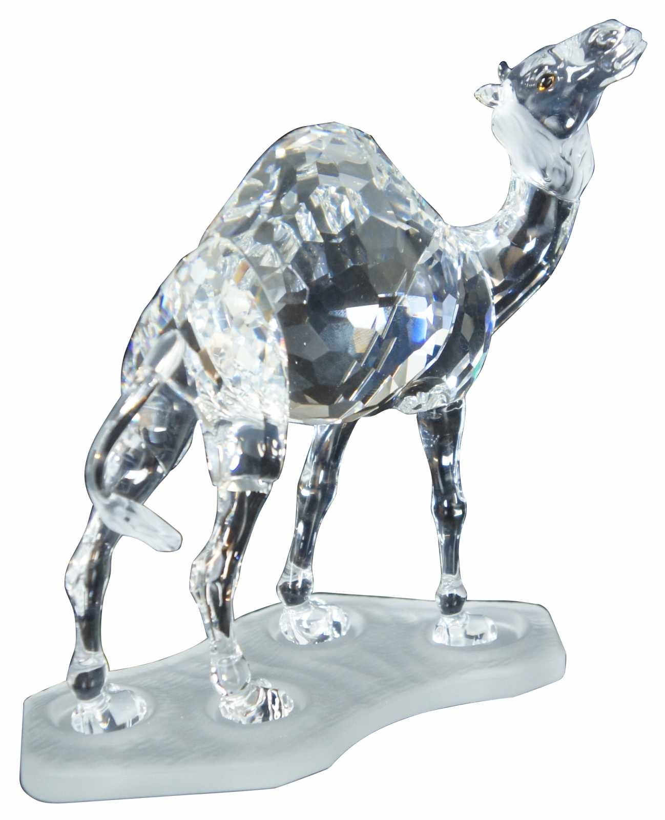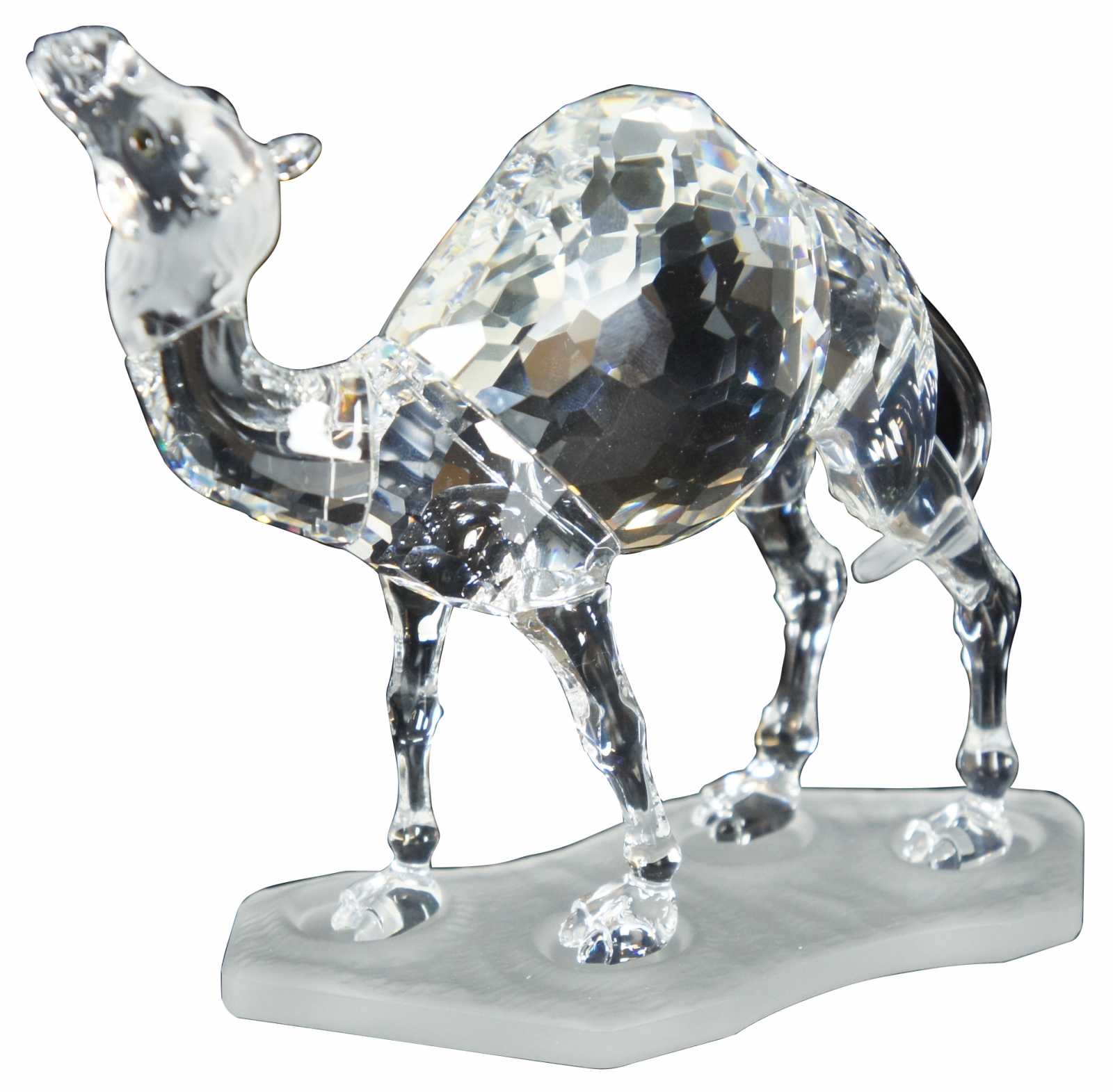 Swarovski crystal figurine of a single hump Dromedary camel on a frosted glass base. 247683