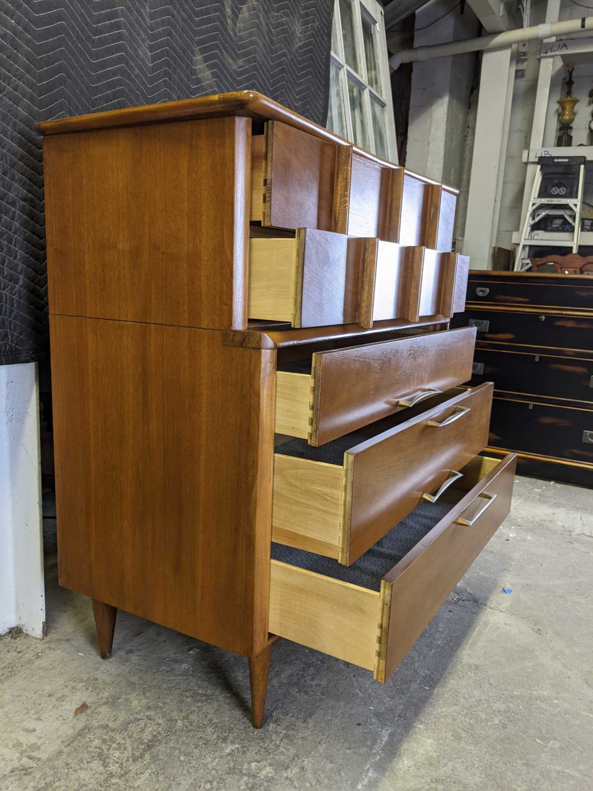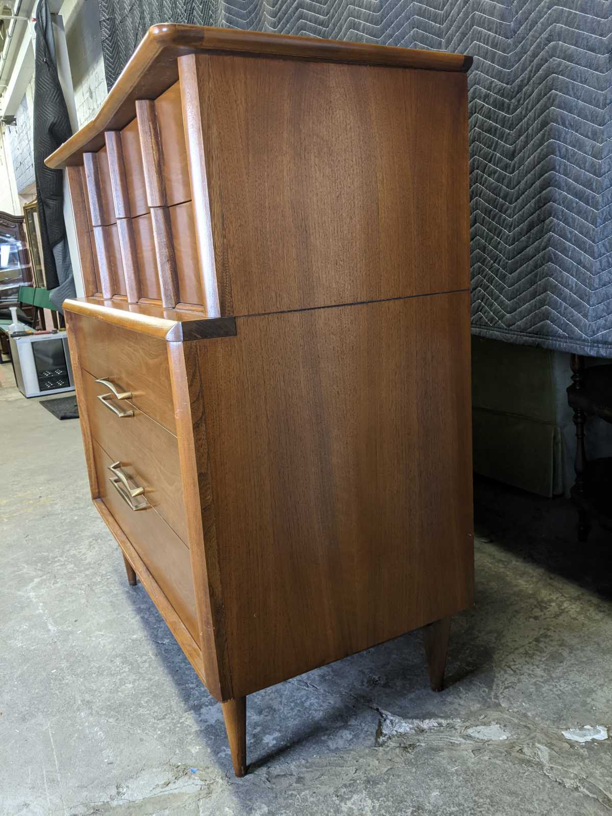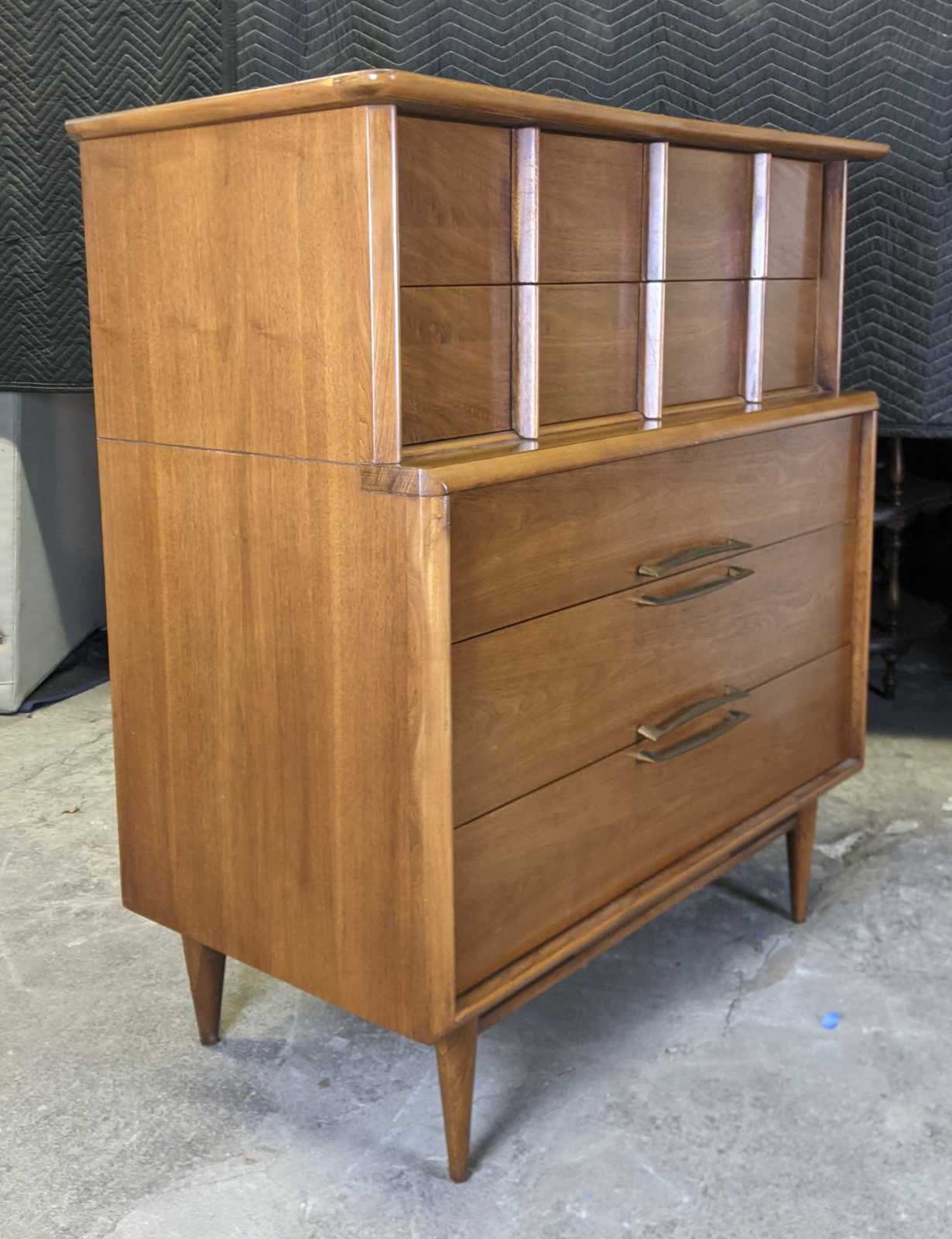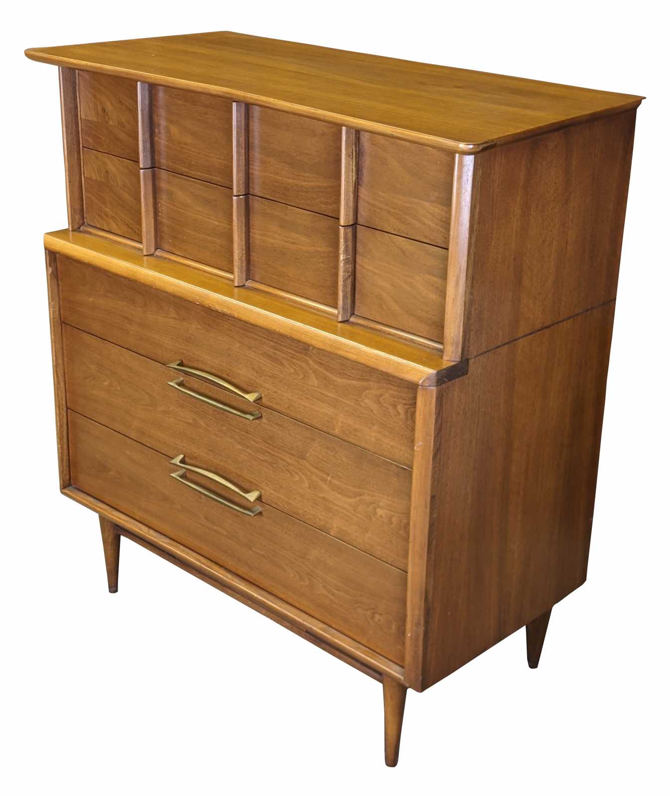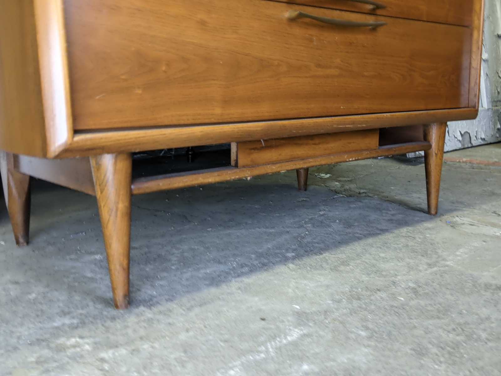 Vintage scuptural shaped dersser by Kent Coffee. Made from continiental walnut with dovetailed drawers and tapered legs. Circa 1960s. #6900.
