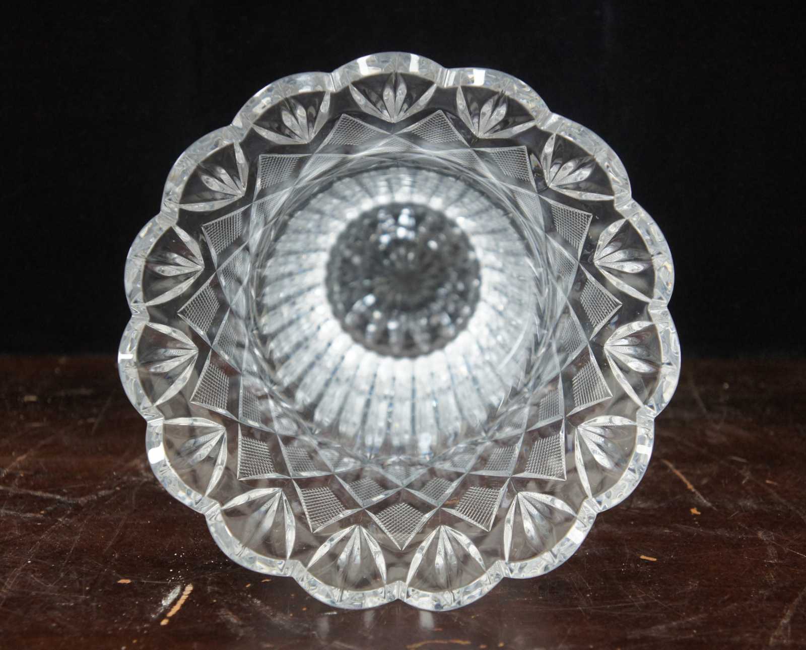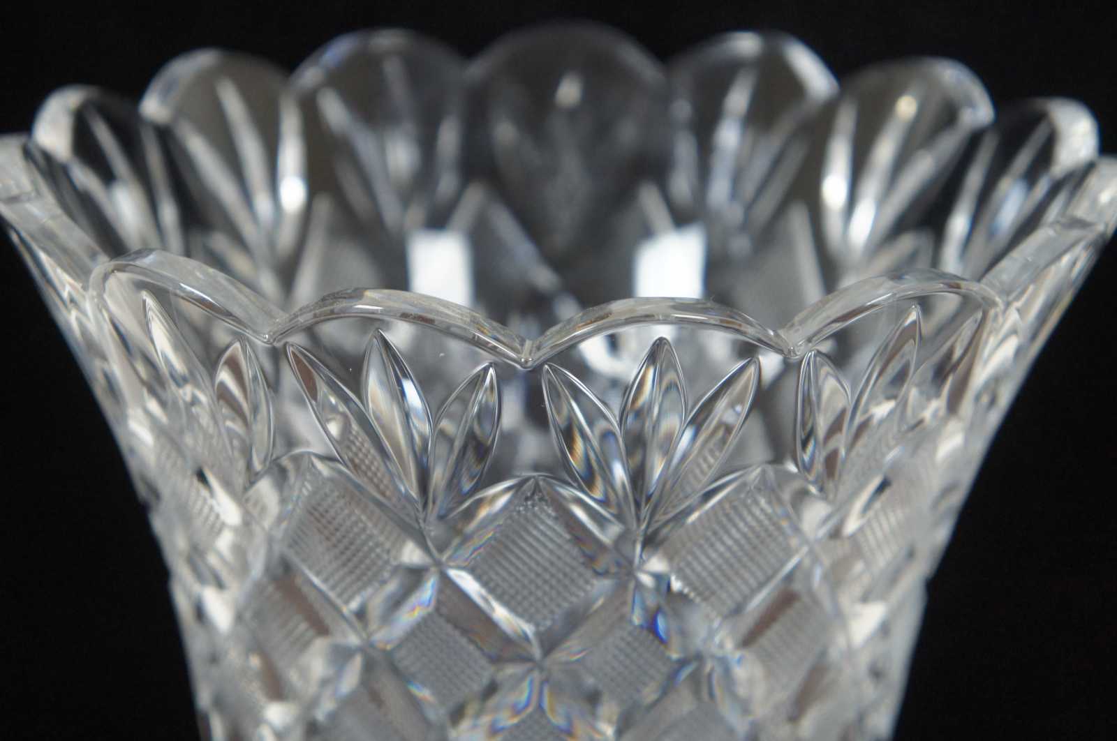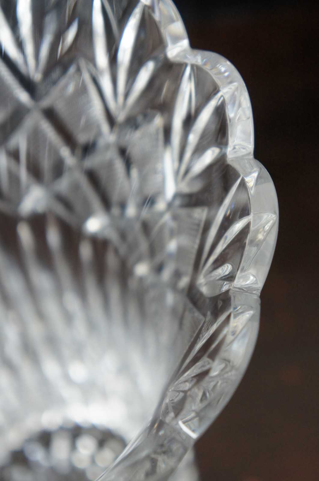 Waterford cut crystal Romance of Ireland Collection Irish Lace patterned centerpiece vase with scalloped edge and flared mouth. Includes original box.
