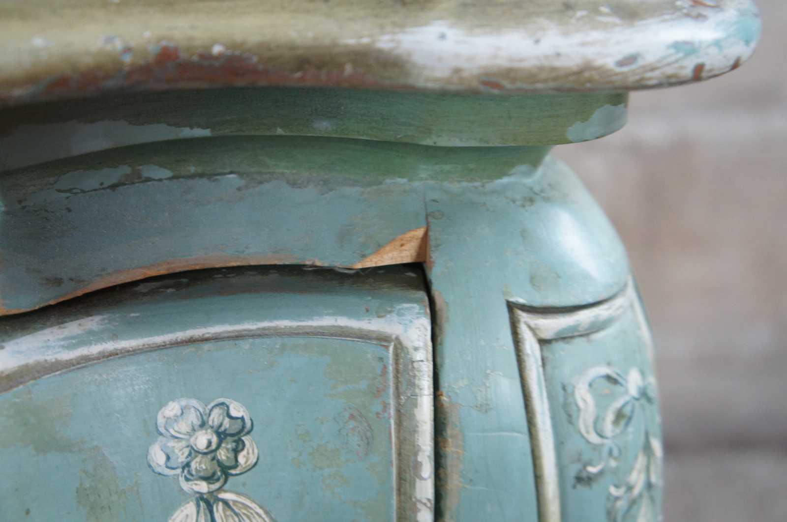 Distressing / paint loss / wear, fading / scratching, small piece of wood missing above top right drawer, see pictures.