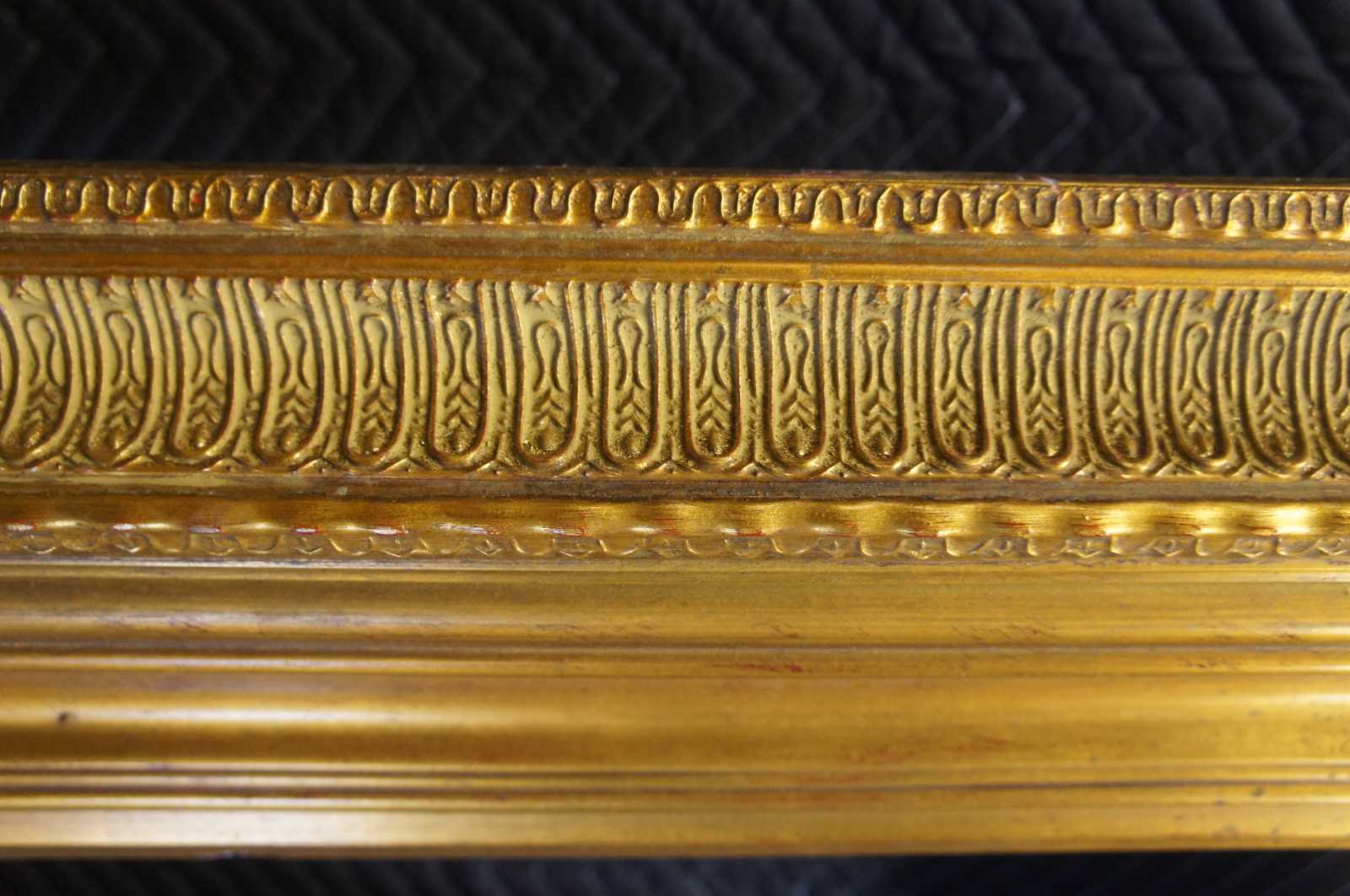Vintage ornate gold frame. Made of wood with acanthus design and red undertone.