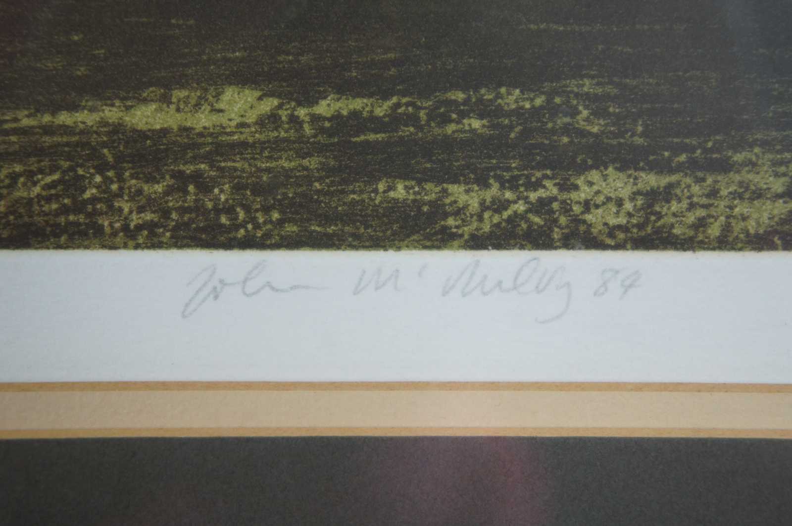 Limited edition, pencil signed aquatint etching / print number 79/175 titled Jardins de Luxembourg II by John McNulty. Features a tree lined path and a row of senat chairs. John McNulty was born in Dublin in 1949. He graduated from the National College of Art, Dublin and the Etching Center, Geneva. McNulty has had 15 exhibitions and 4 international fairs, Basel, Tokyo, New York, New York and Brisbane. His works have appeared in 2 major motion pictures, which are Wall Street with Michael Douglas and Regarding Henry with Harrison Ford and are in 19 collections including the Sears collection in Chicago, the Smith Barney, IBM, Amex, Bank of Scotland and Metropolitan Life collections and the Glaxo collection in London.