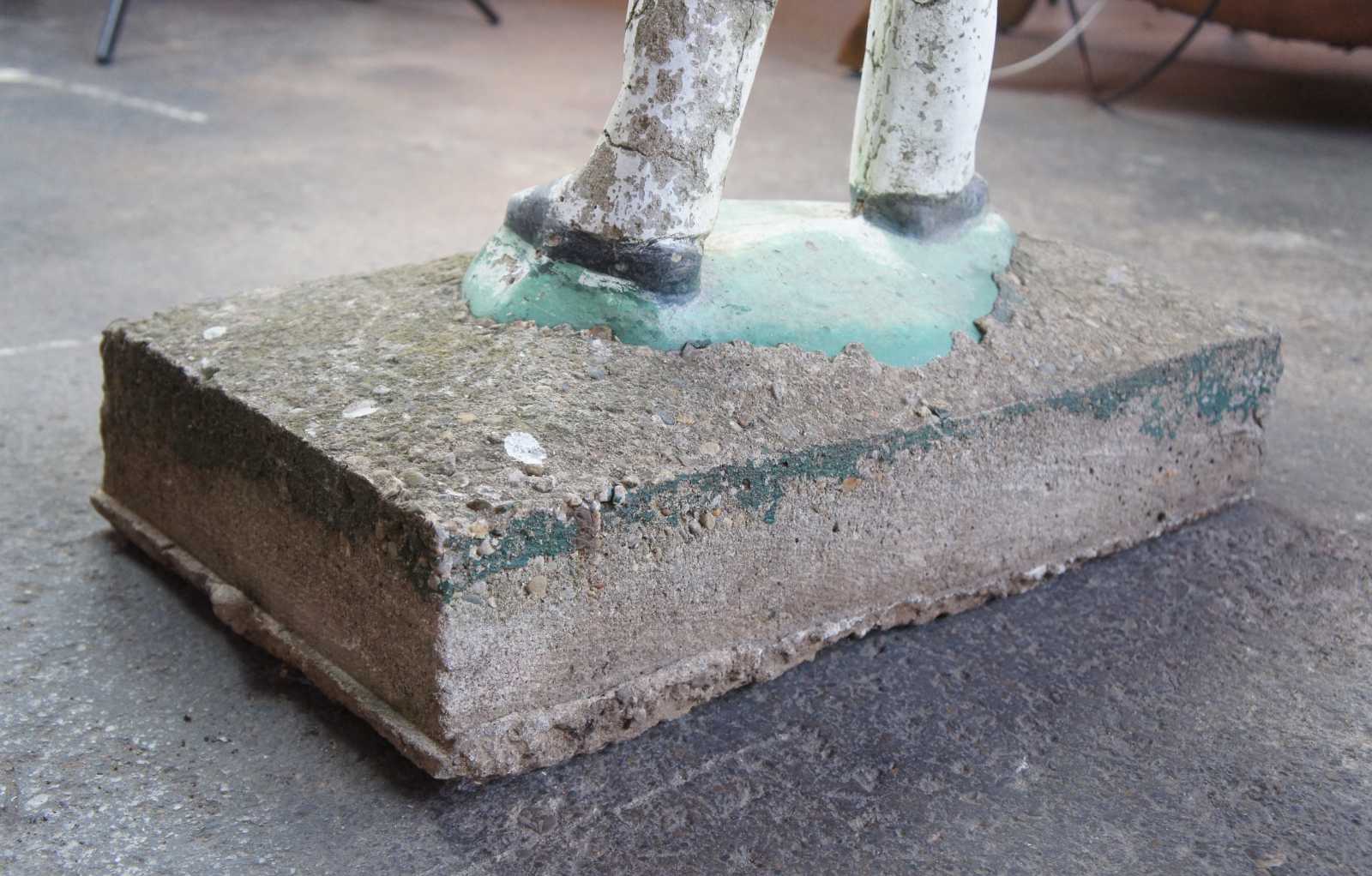 Antique condition, missing lantern, paint and concrete loss, weathering / eroding from exposure to elements over the years, some cracking to lets, see pictures.