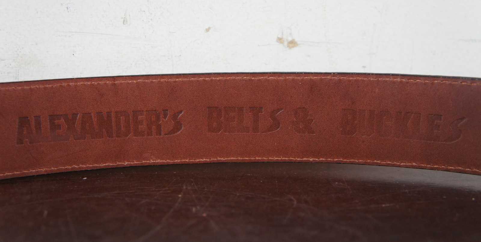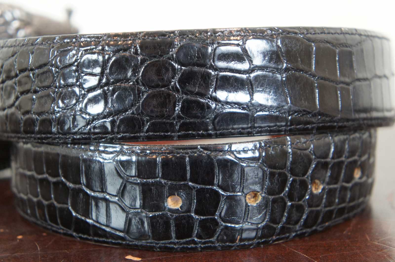 Vintage Barry Kieselstein-Cord sterling silver alligator belt buckle and brown crocodile skin belt.