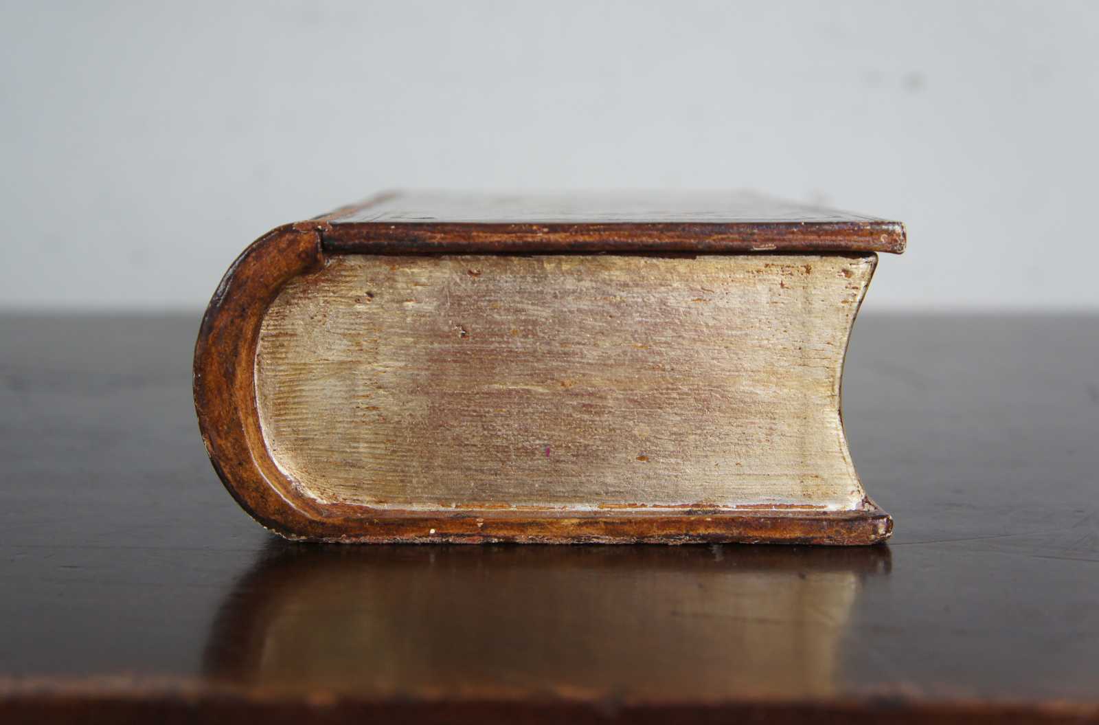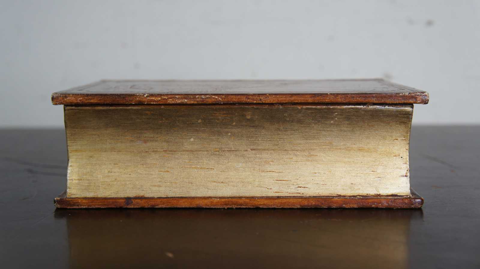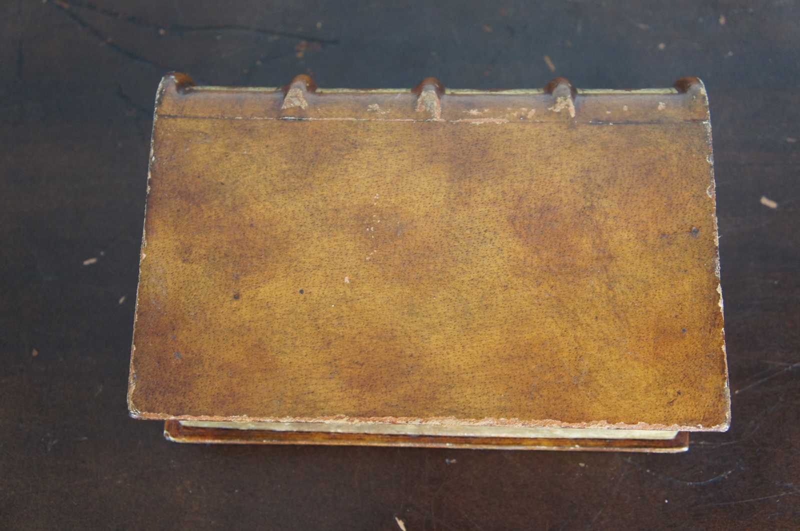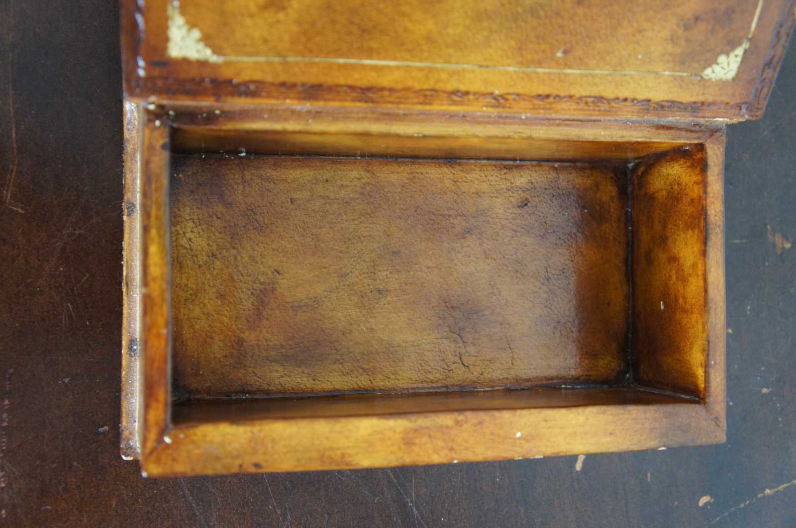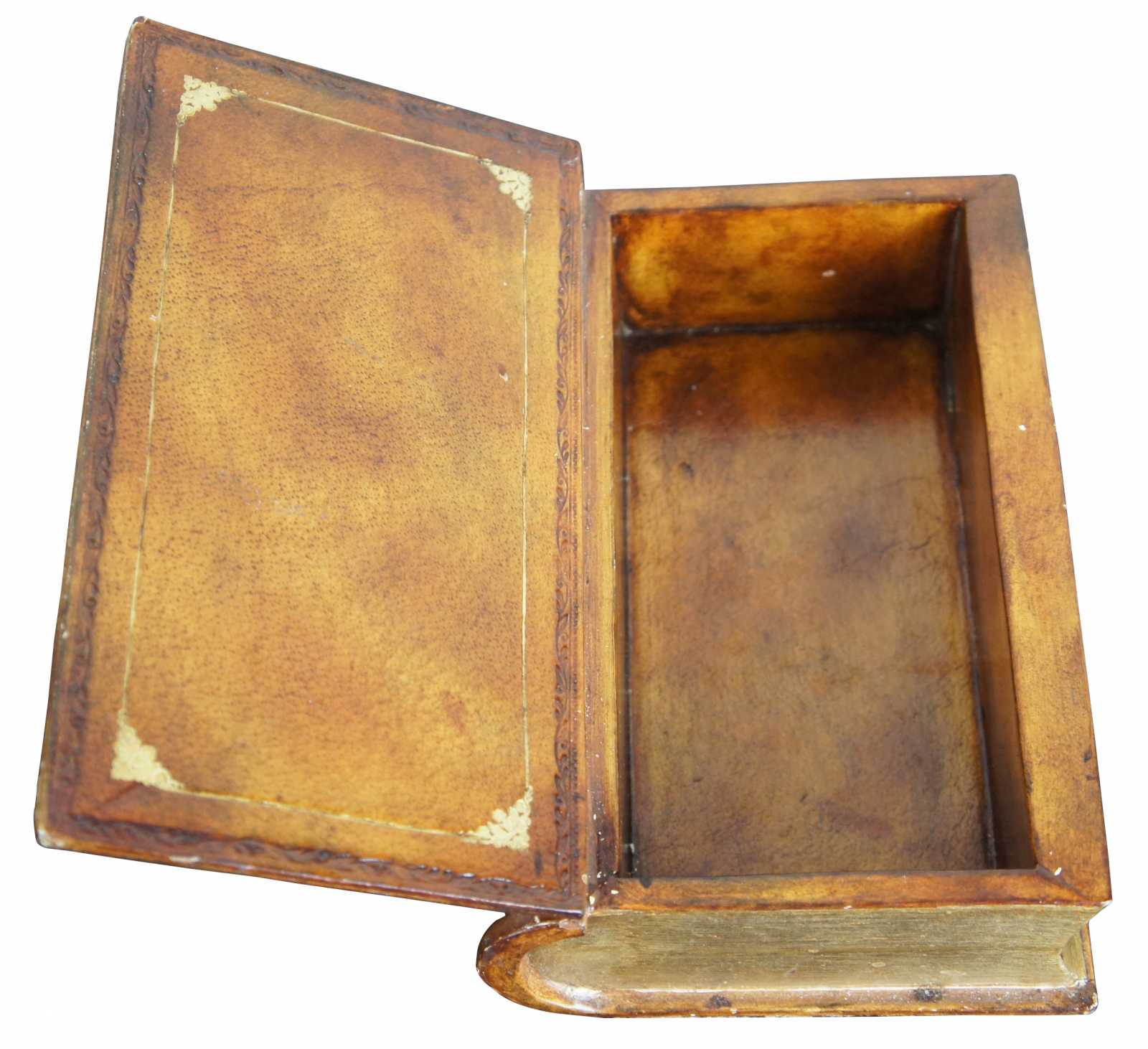 Maitland Smith false book box, late 20th century. Titled Wines of the world by Macgraw. Feautres a light brown exterior with faux gold gold edges and intricate tooling. A fun stash for your library or neat keepsake box to accent your table.