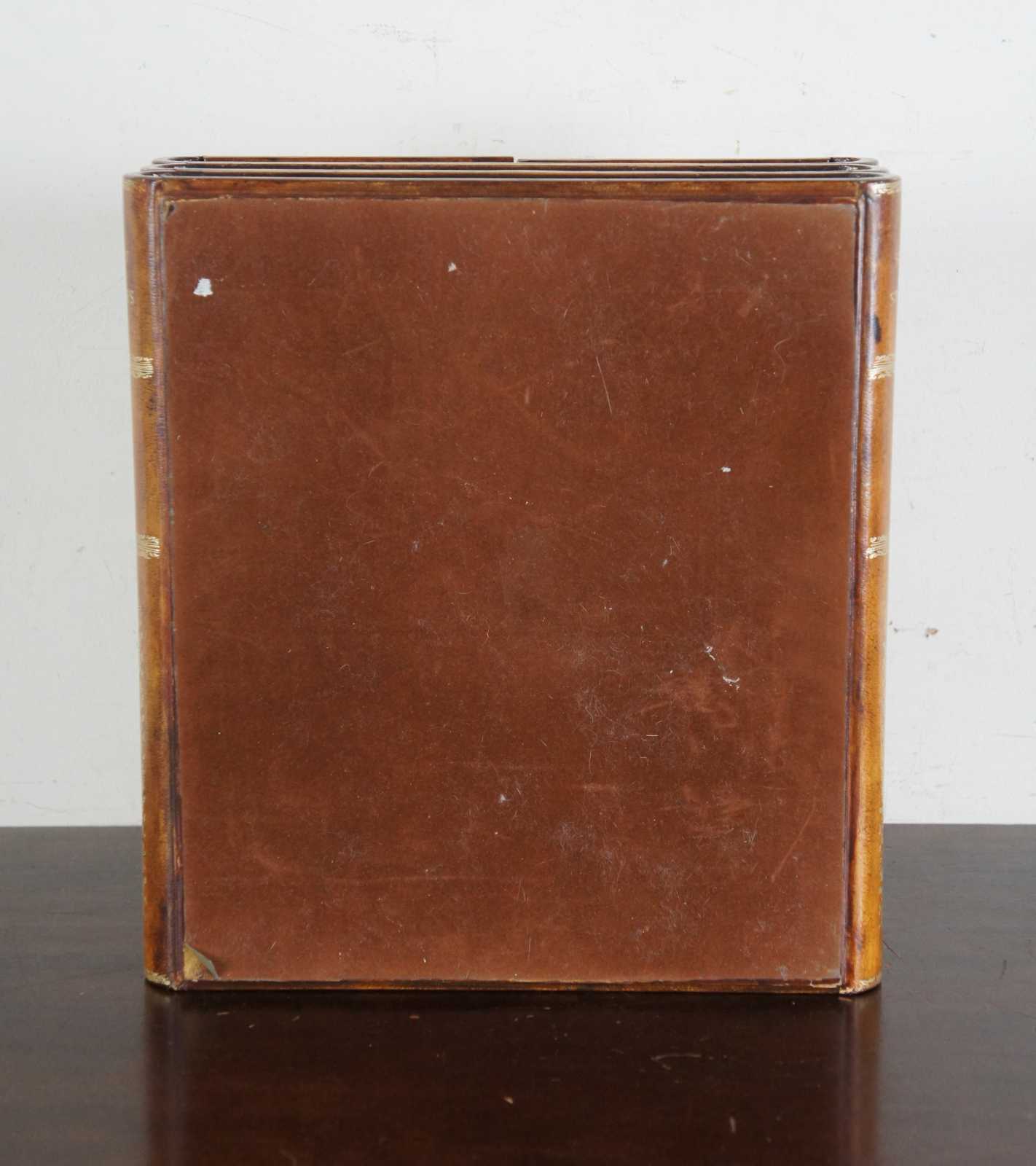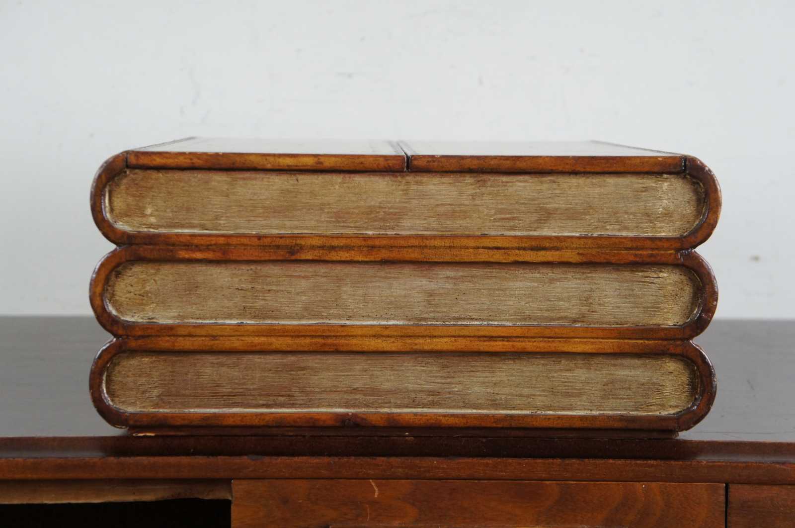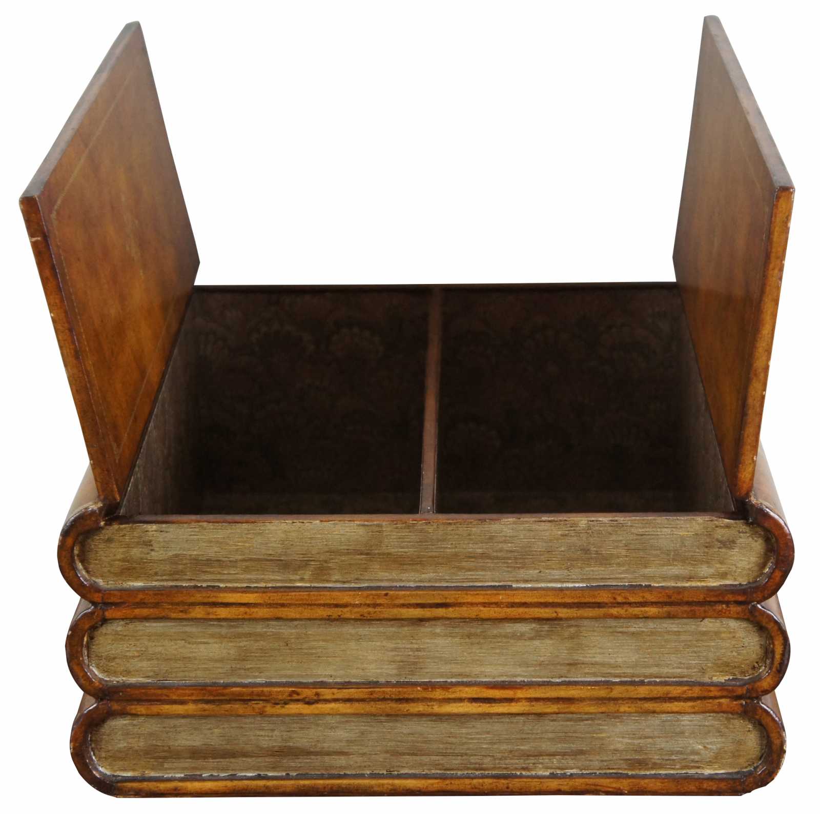 Large tooled leather triple book box by Maitland Smith, late 20th century. Features Volumes I, II and III of Short Stories. Interior opens to a lined and diveded two compartment storage area.
