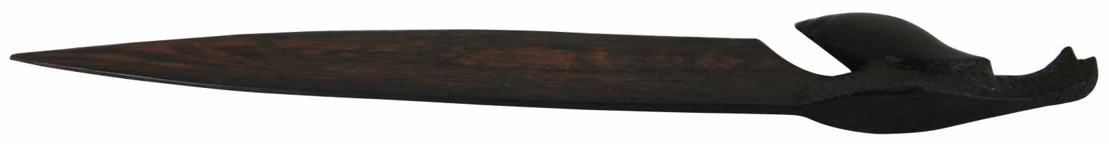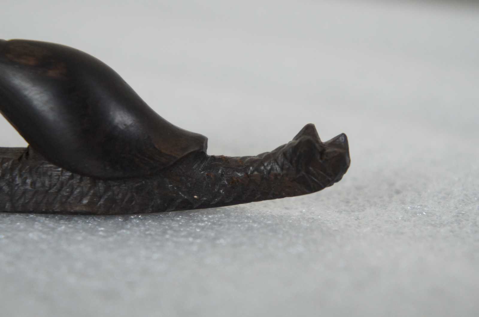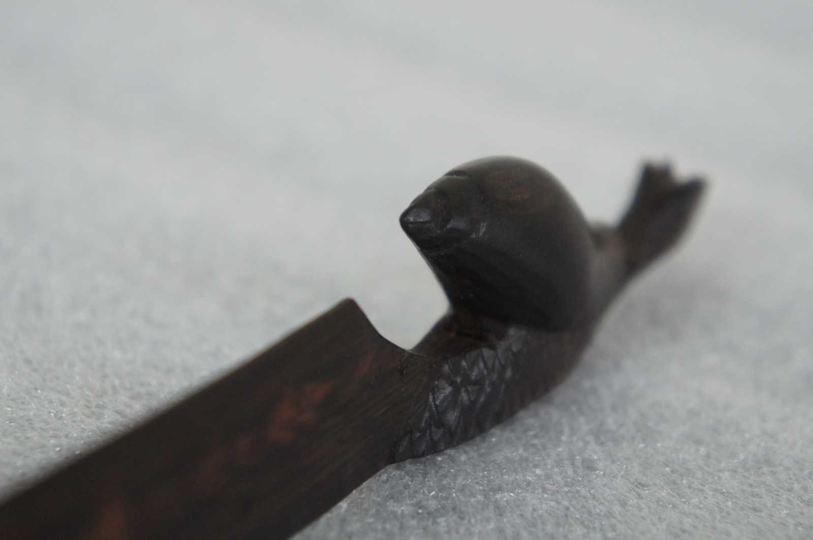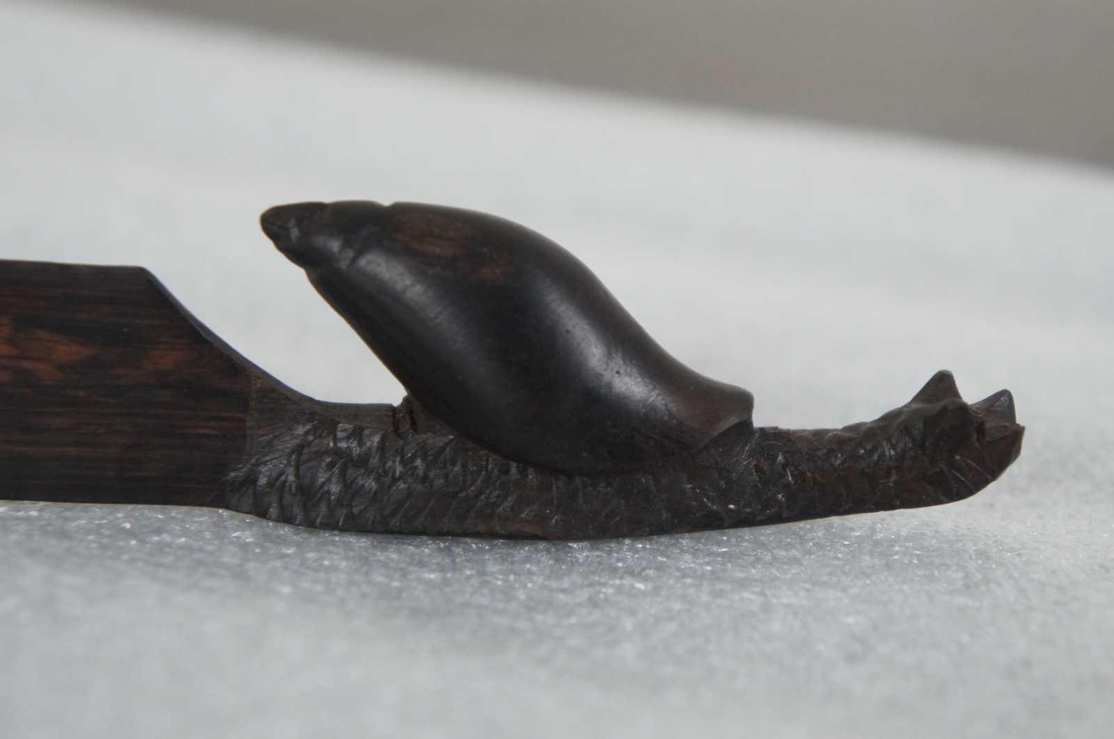 Vintage hand carved ebony wood letter opener knife with a Snail / Mollusk / Slug / Gastropod and spiral shell handle.