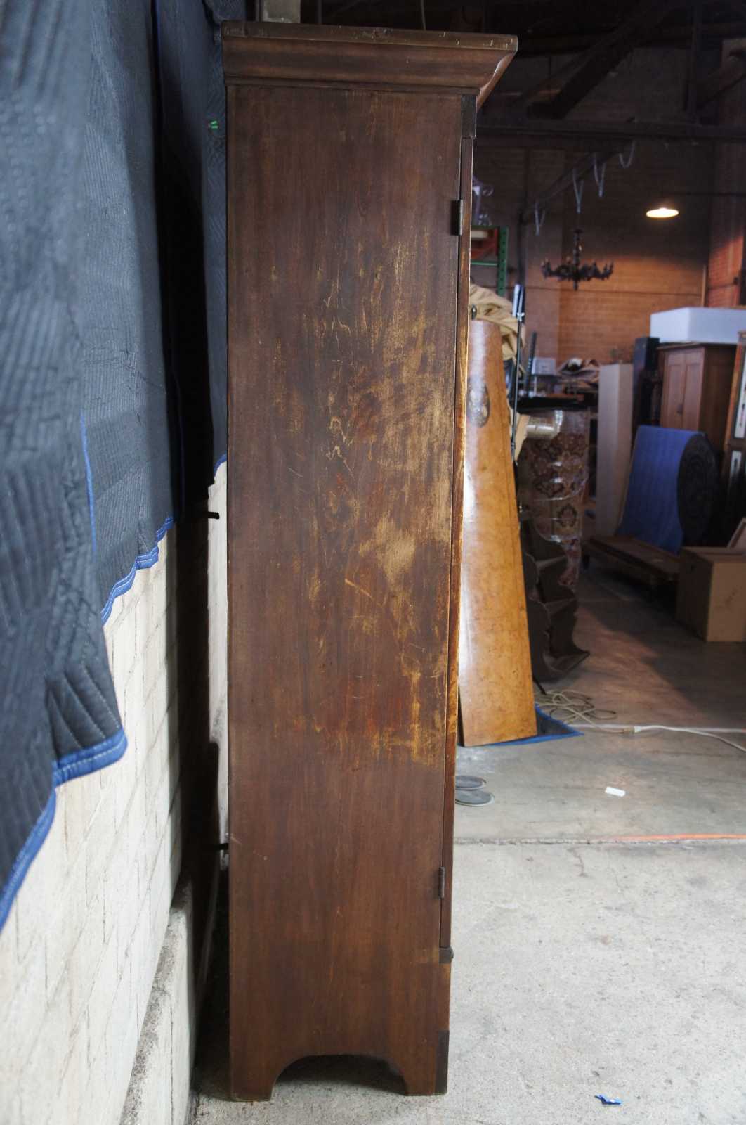 Good Antique Condition; Natural Distressing from Age. Some Wear to the Left Side. Shelves can be made for an additional cost.
