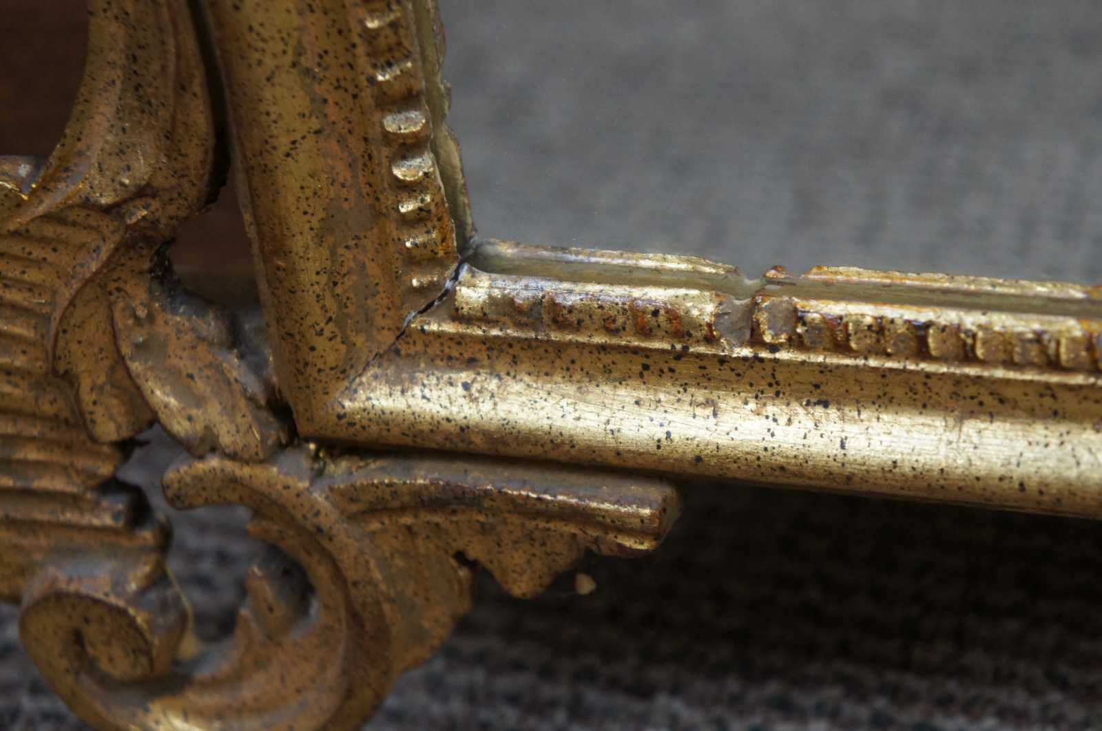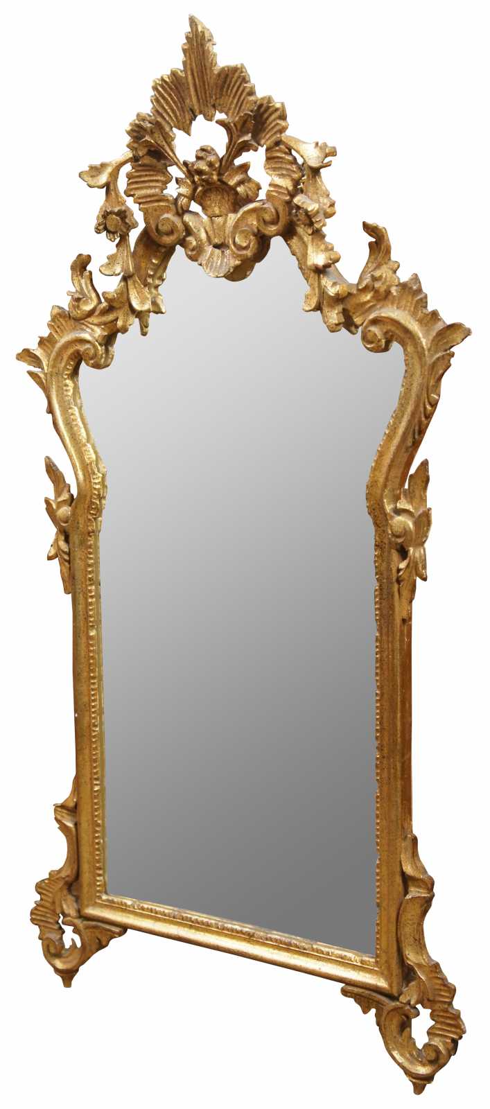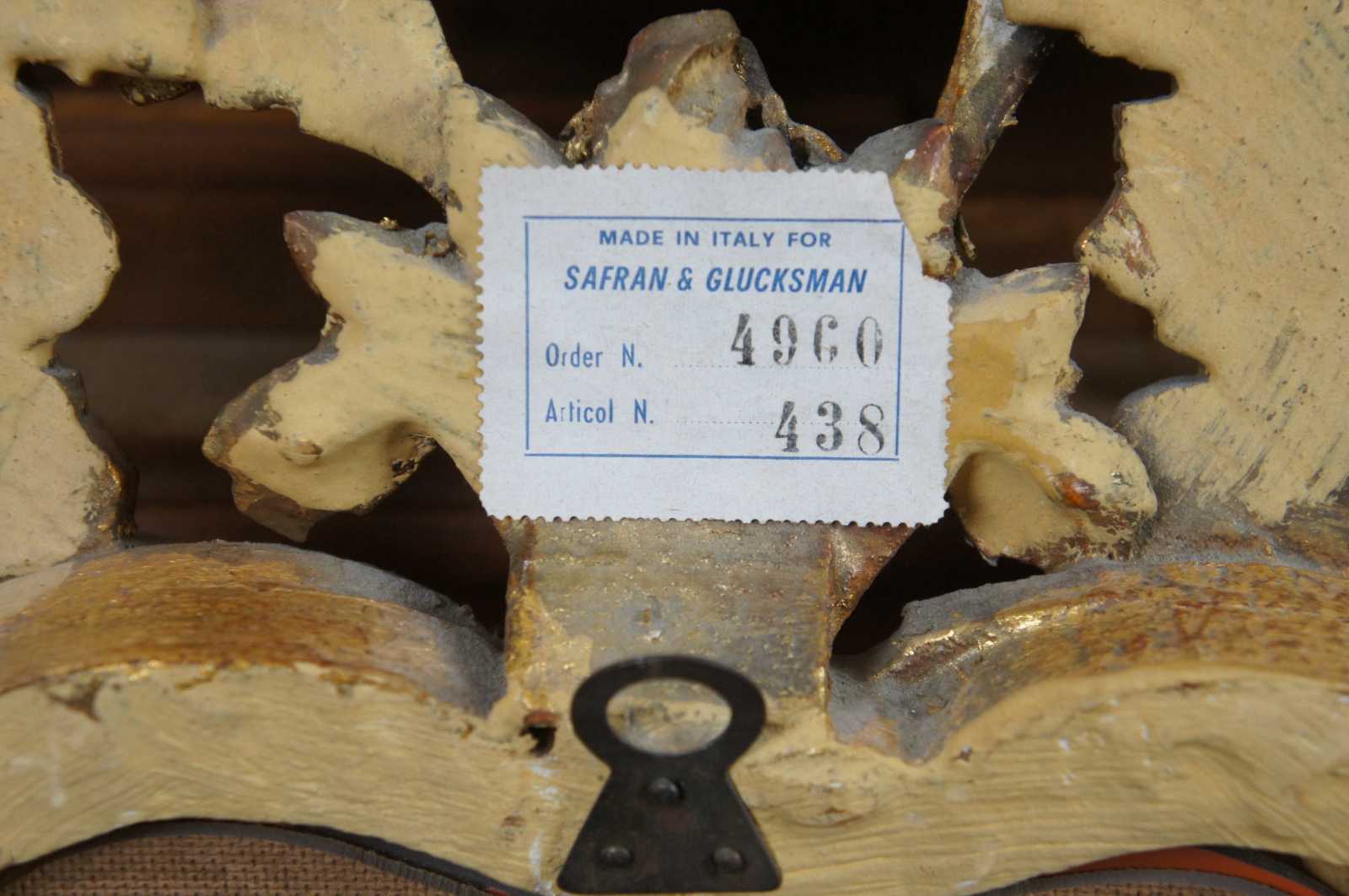 Vintage pair of Rococo style ornate gold wall mirrors made for Safran & Glucksman of Italy.