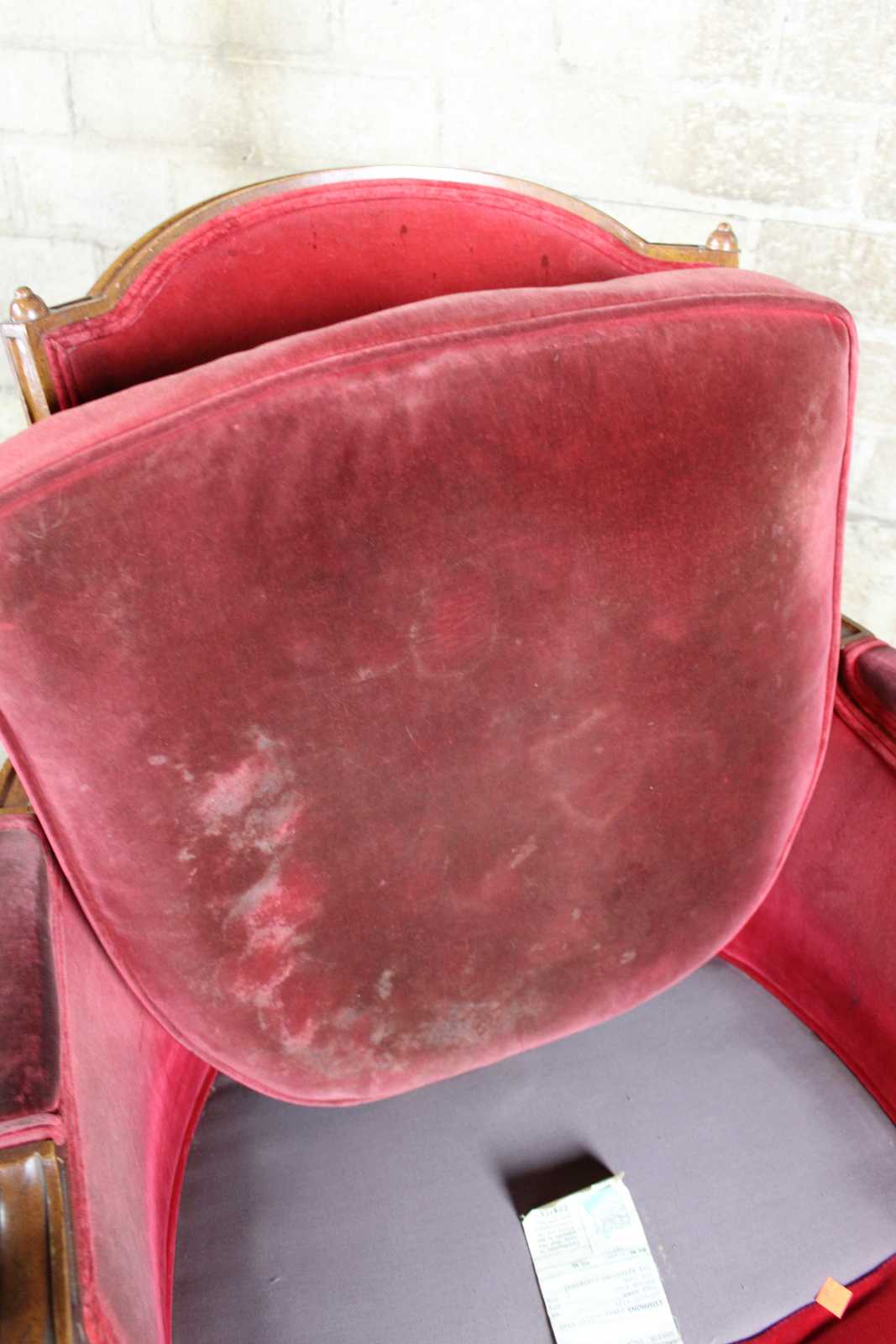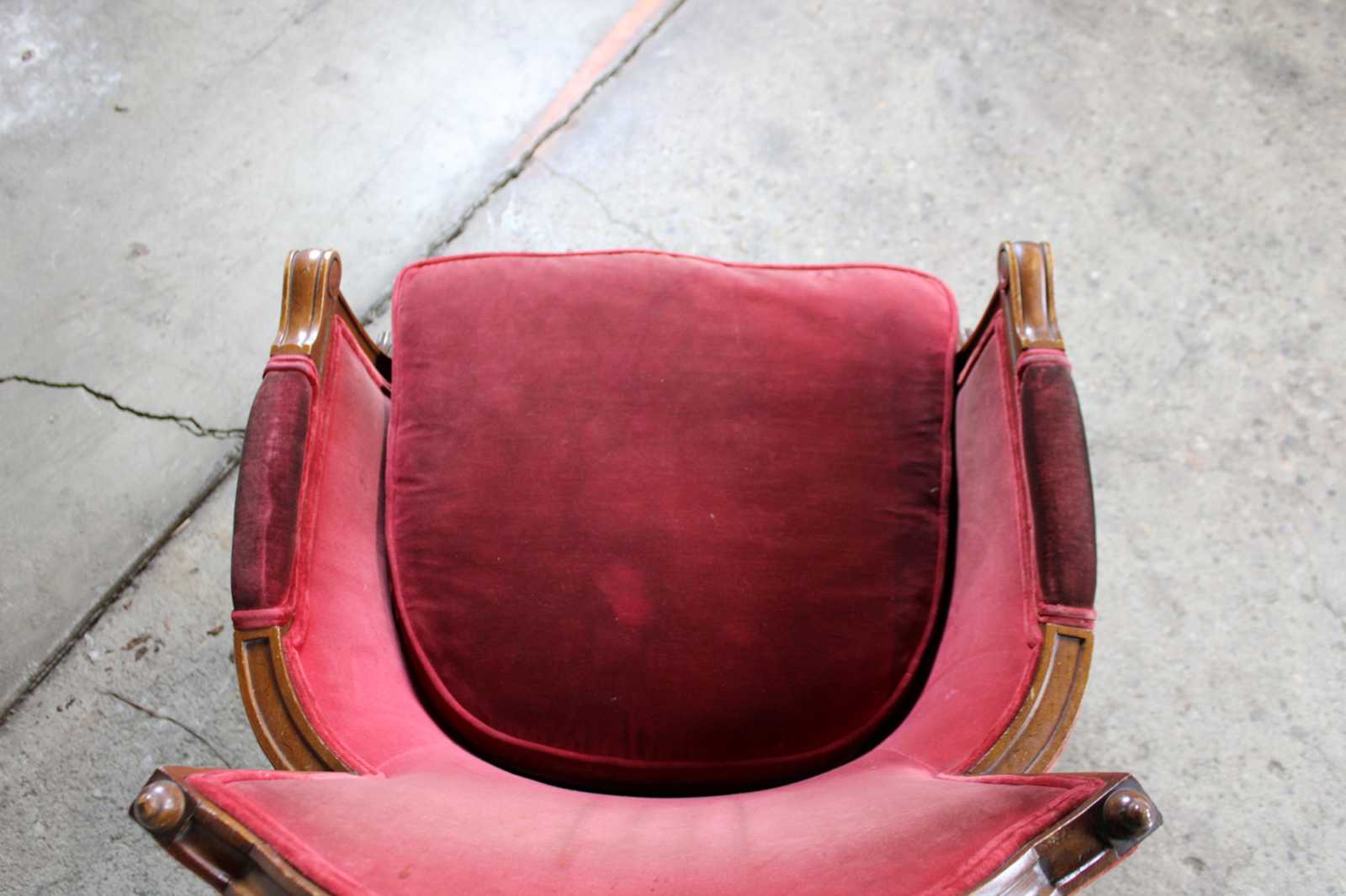 Vintage condition, wear and distressing, heavy wear to fabric, some wood loss / scratching to arm area on one, see pictures.