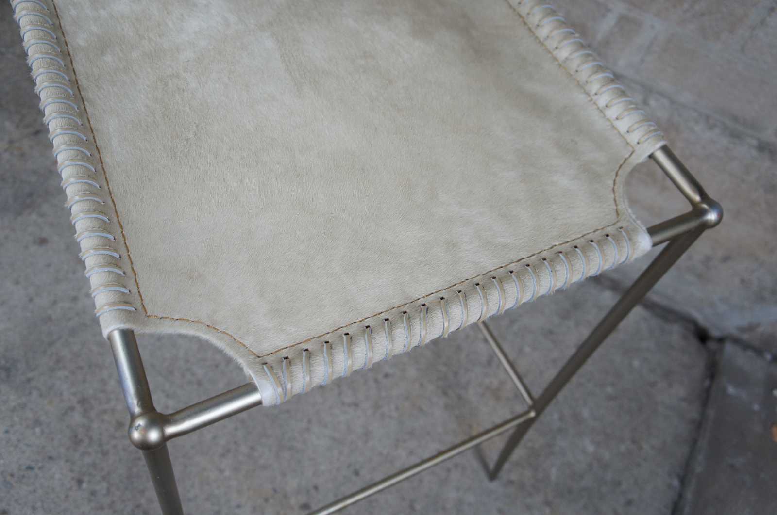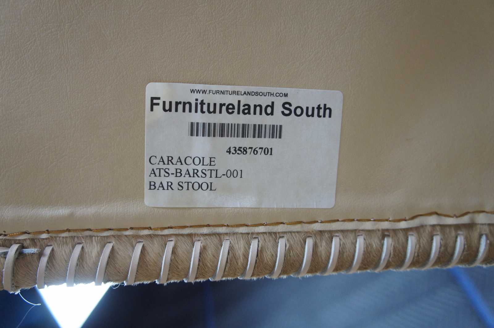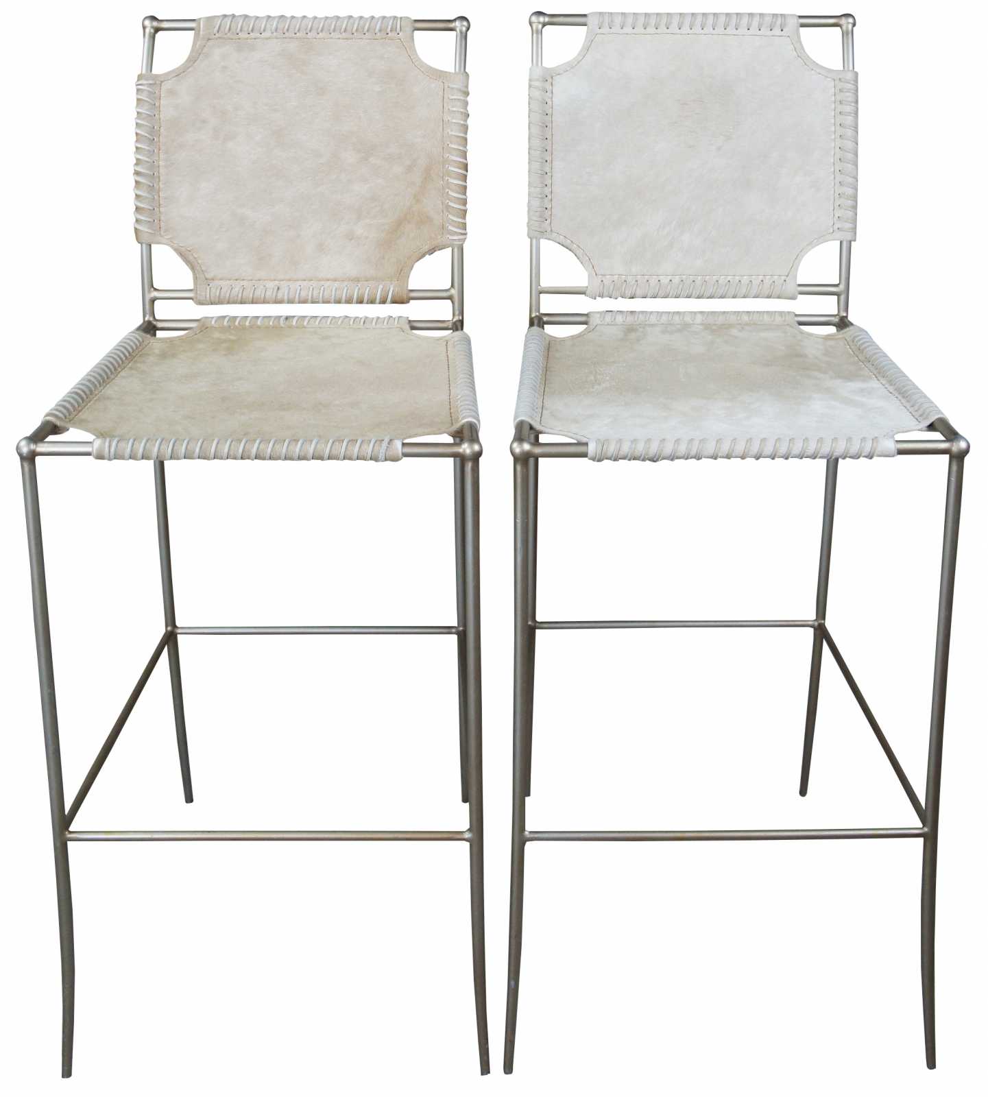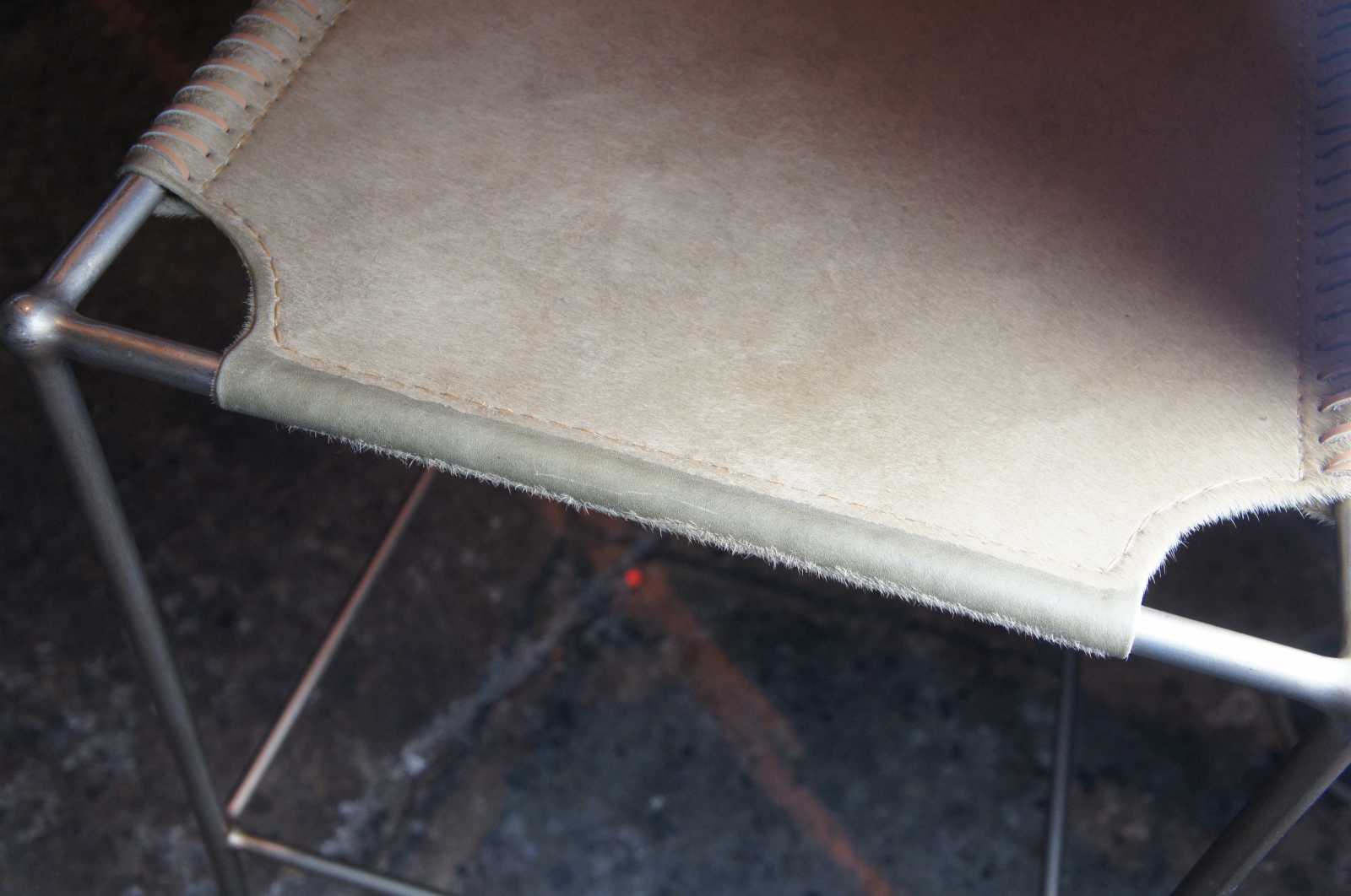 3 Caracole In Stitches bar stools,ATS-BARSTL-001. Part of their Modern Artisan line. Features a streamline metal frame with leather wrapped seat and back.