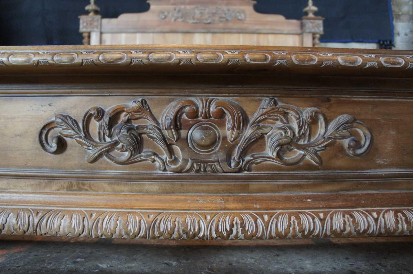 French style panel bed by Restoration Hardware. Features ornate hand carving and bun feet. From the second Empire-inspired bedroom collection – a mid-19th-century French style characterized by the use of rich woods and decorative molding. Carefully hand-finished using an 11-step process that imparts subtle highlights.