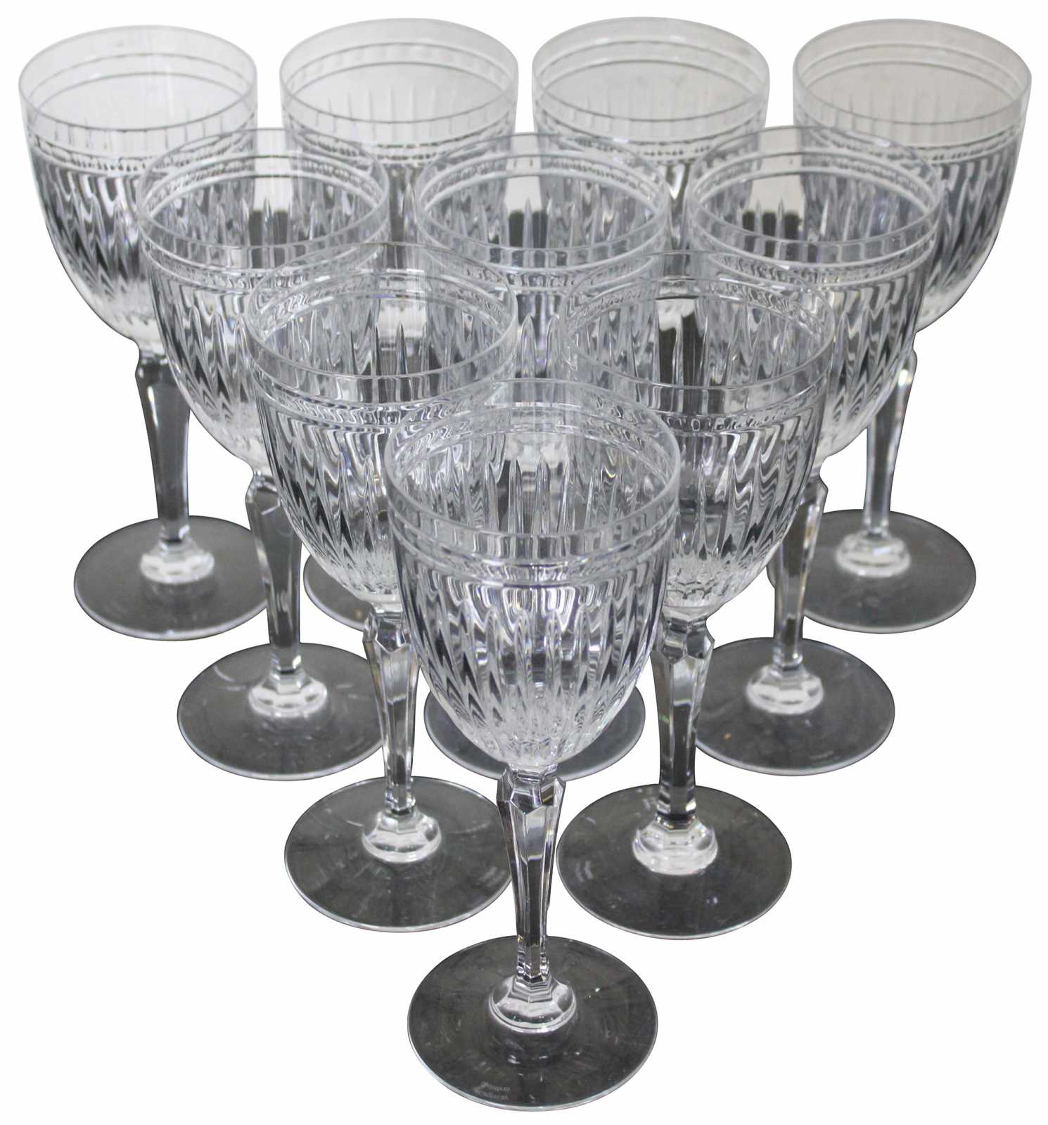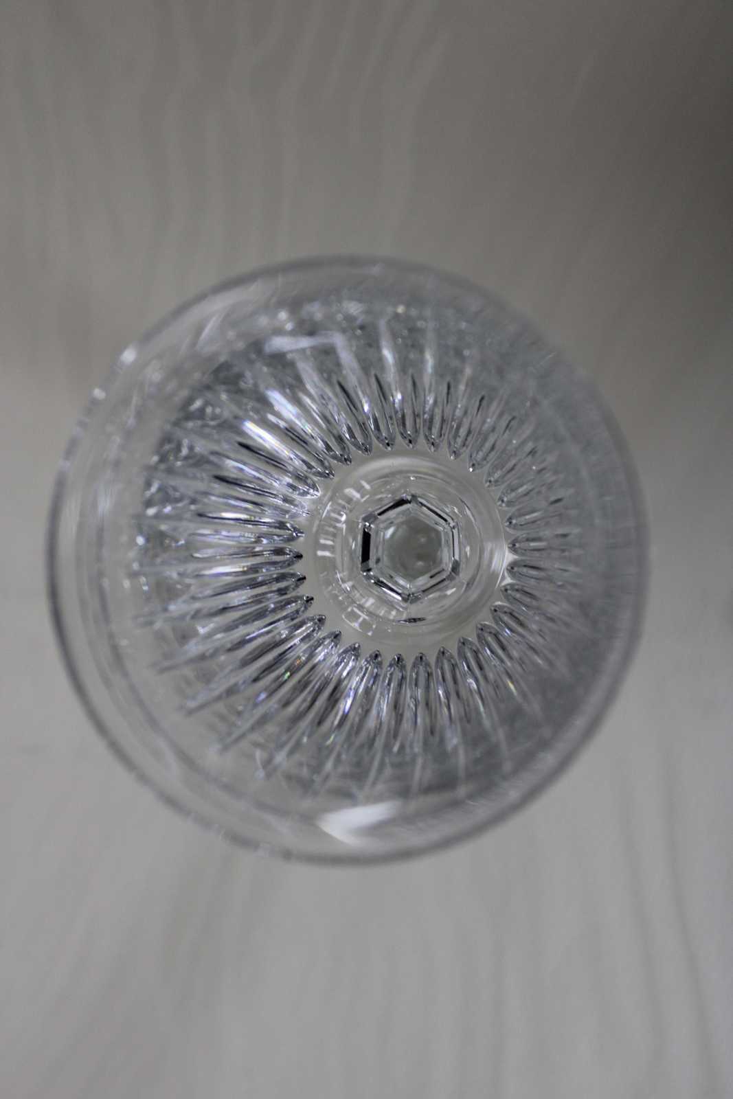 The Hanover pattern features a regular size cut stem with a smooth base (many Waterford pattern have a cut/etched design on the base) & a vertical cut paneled design with banding on the goblet portion.