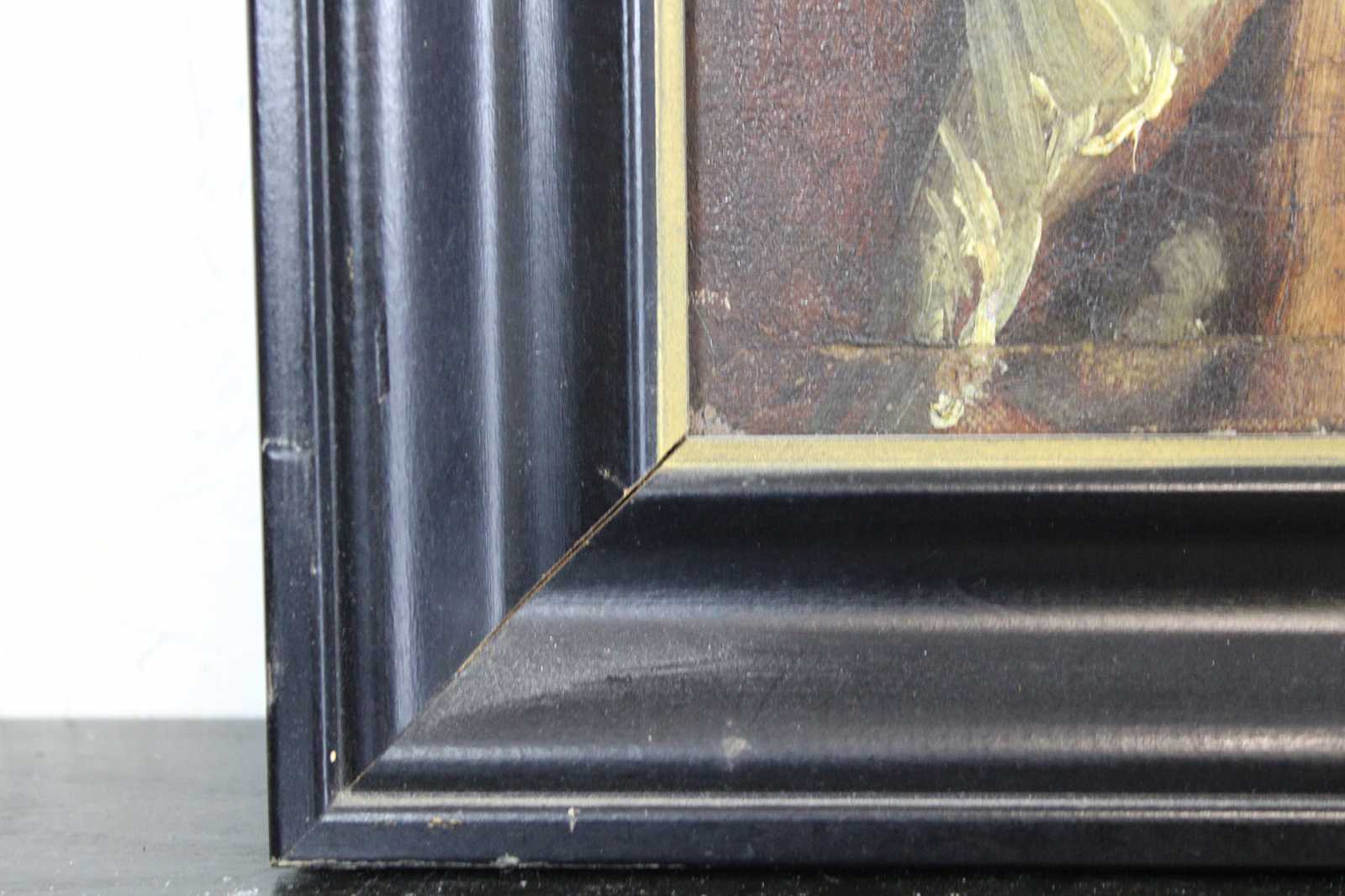 Good antique condition, some wear / crazing / paint loss and foxing to canvas, few scuffs / light distressing to frame, see pictures.