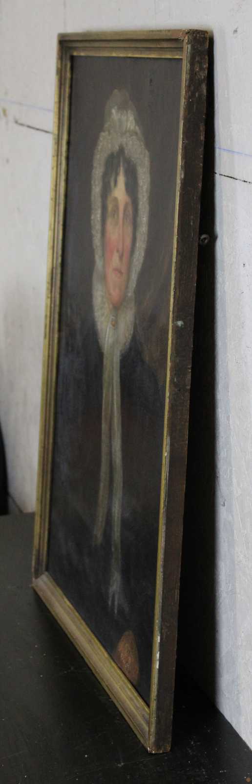 Antique 19th century late victorian portrait. Features an upper class married women seated with bonnet. Canvas unsigned. Framed in wood with gold trim.
