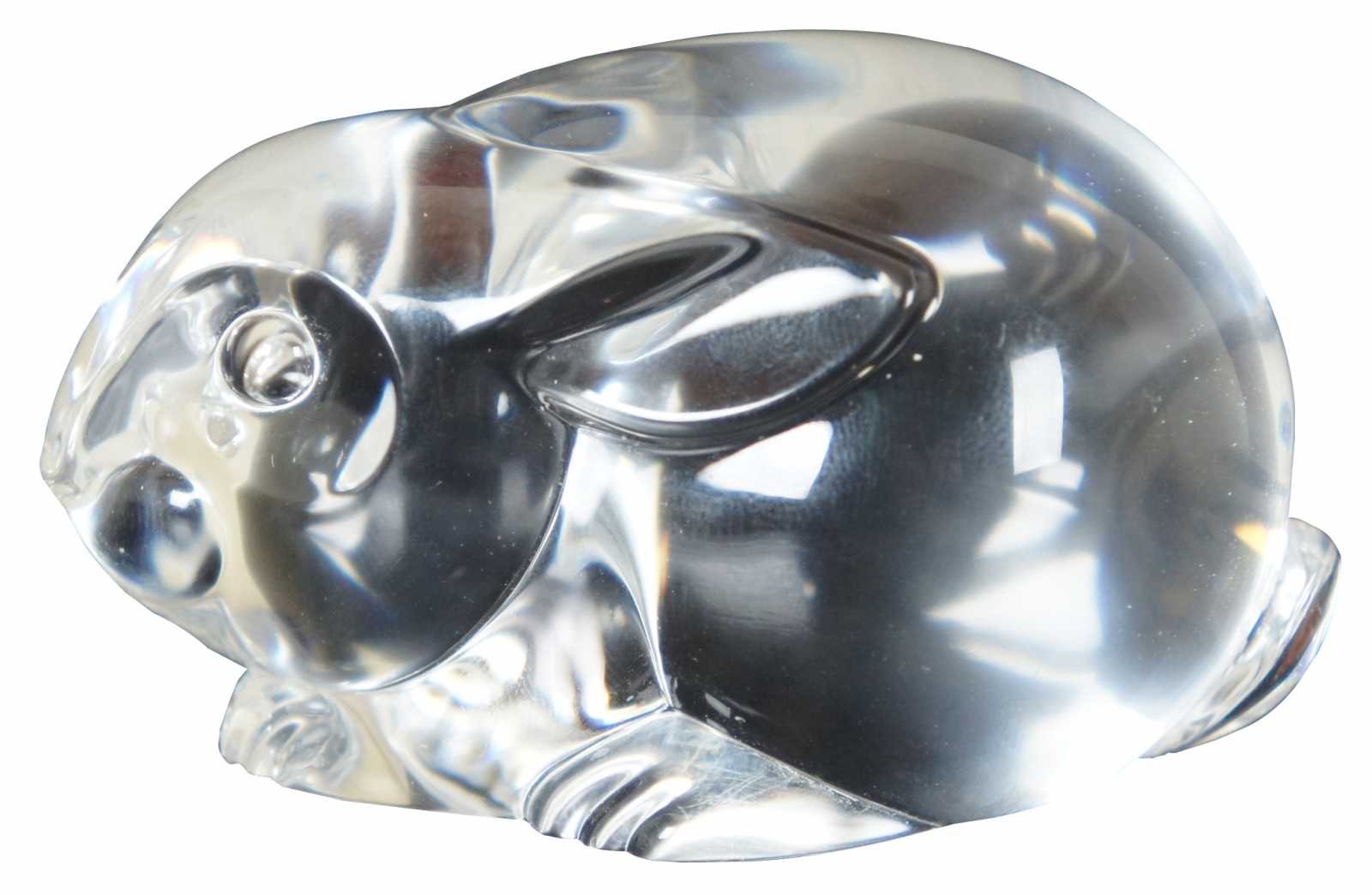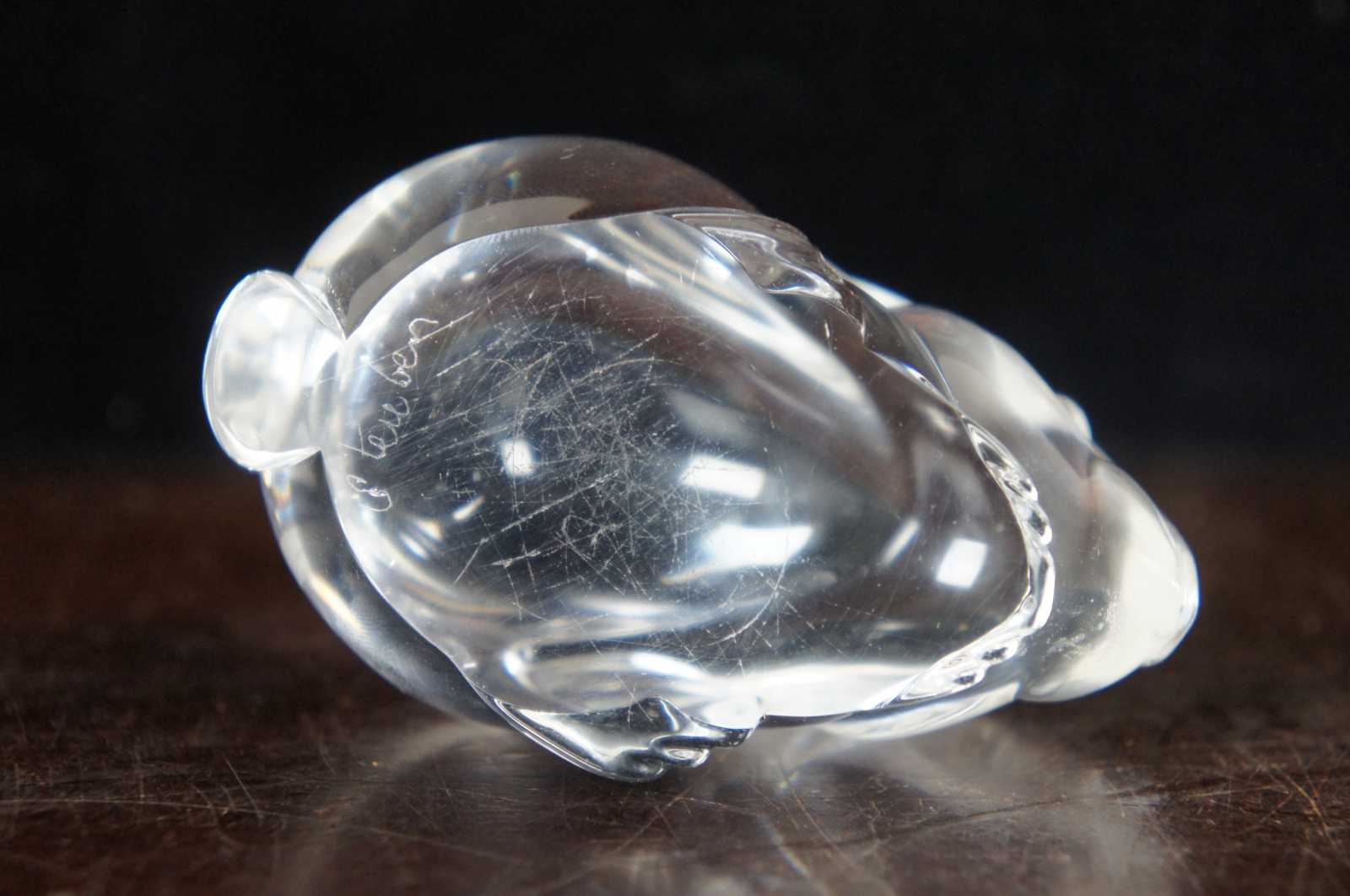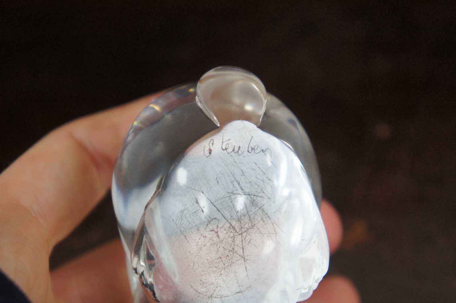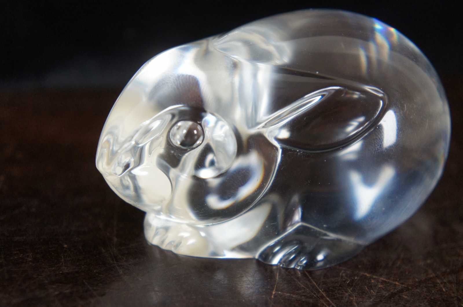 Steuben glass rabbit shaped hand cooler; includes original box.