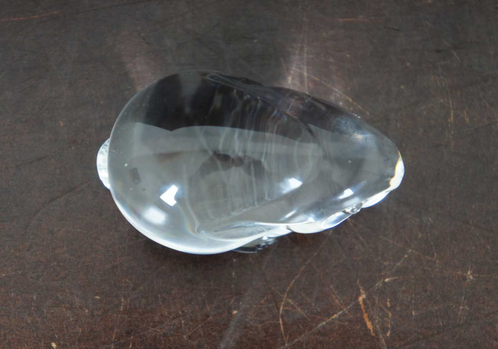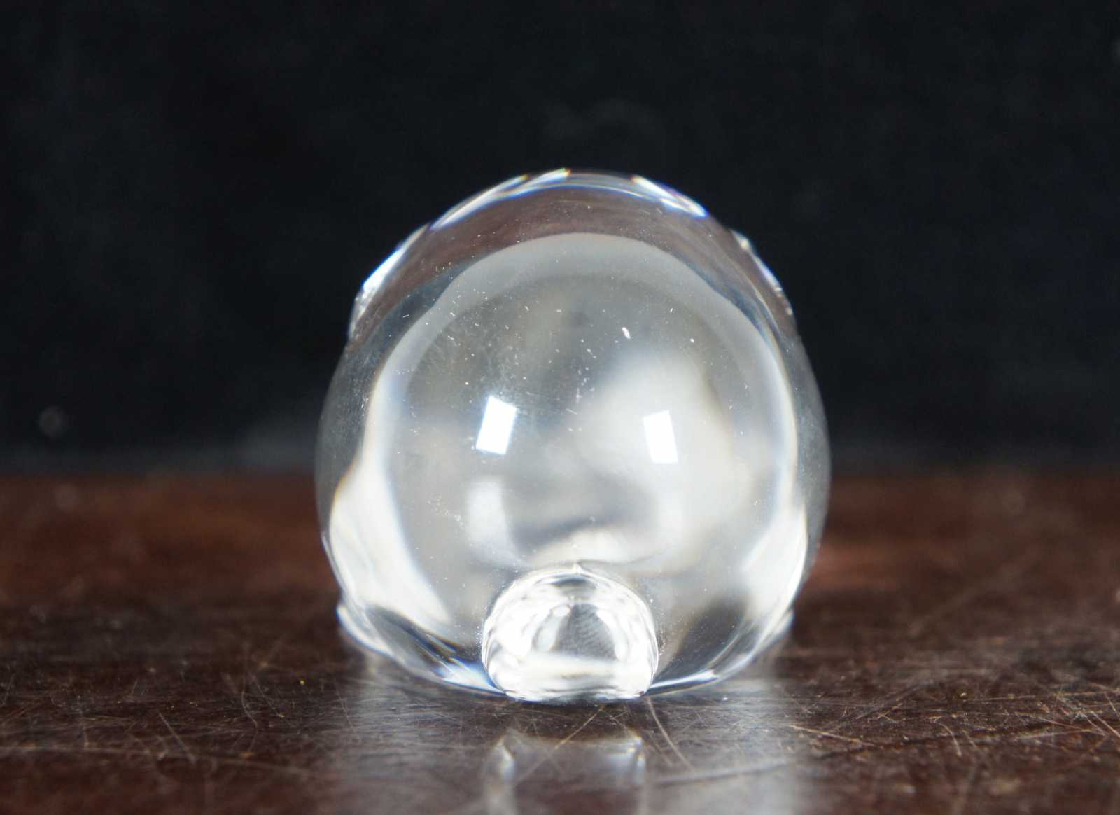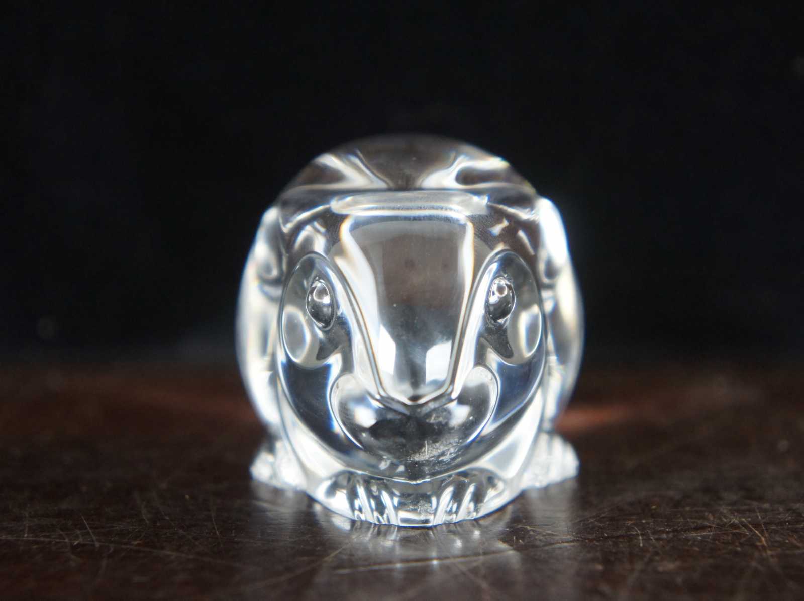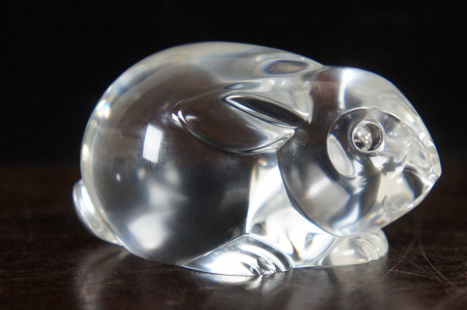 Steuben glass rabbit shaped hand cooler; includes original box.