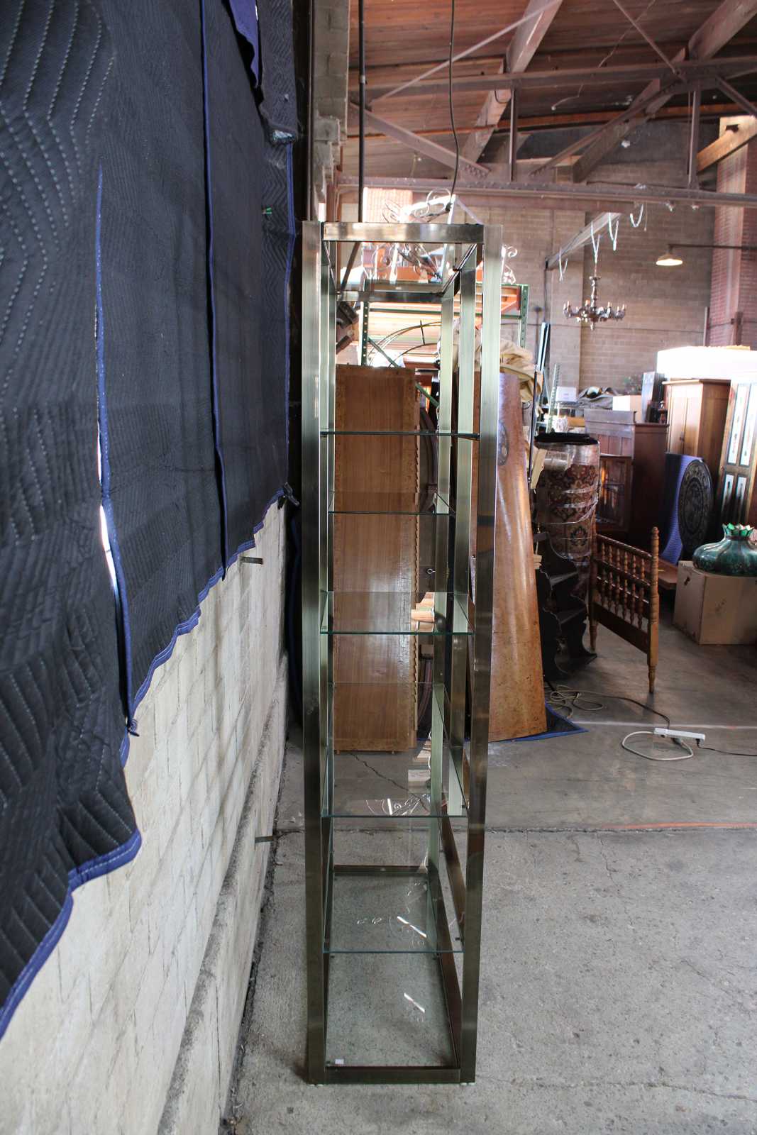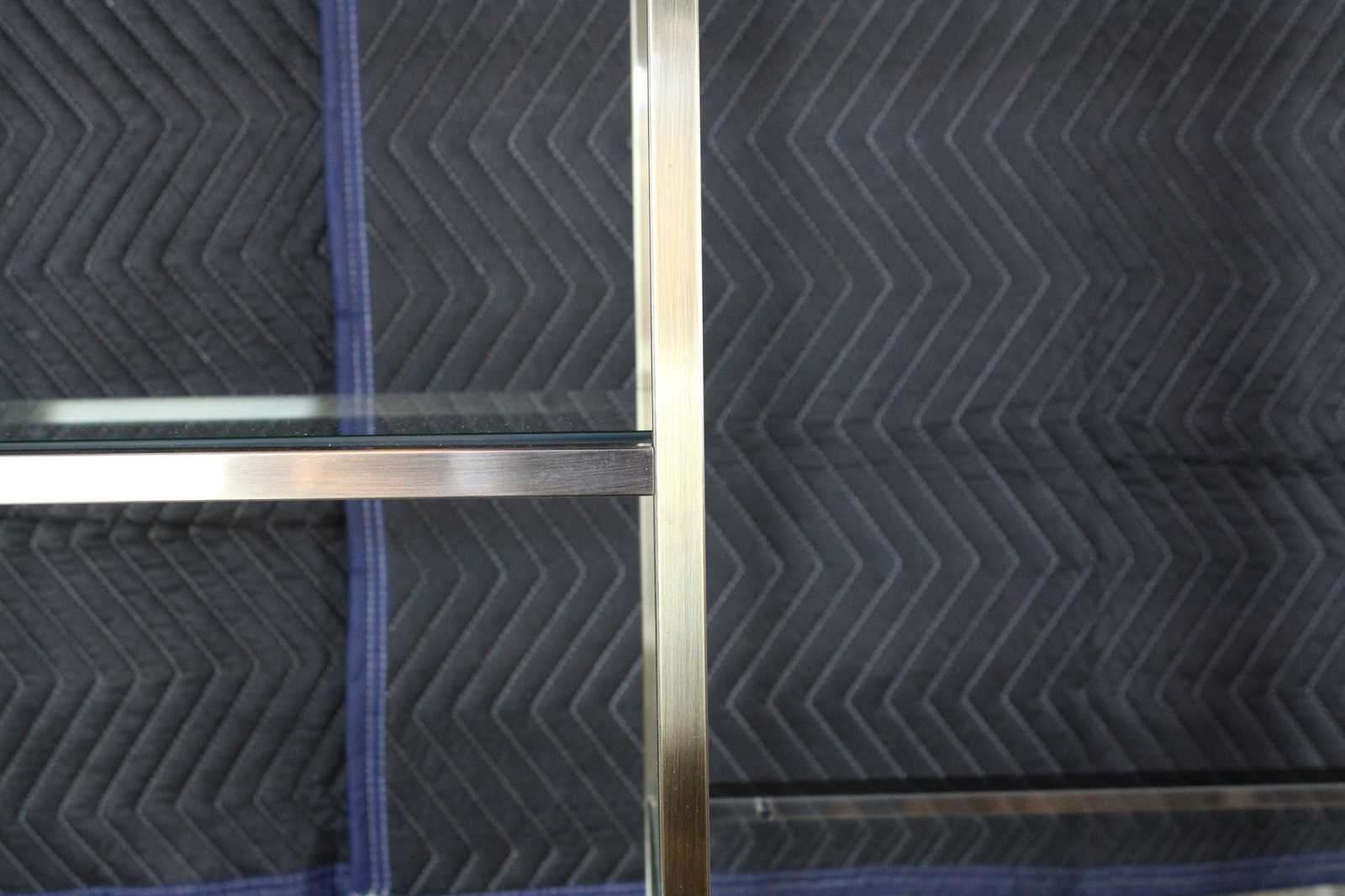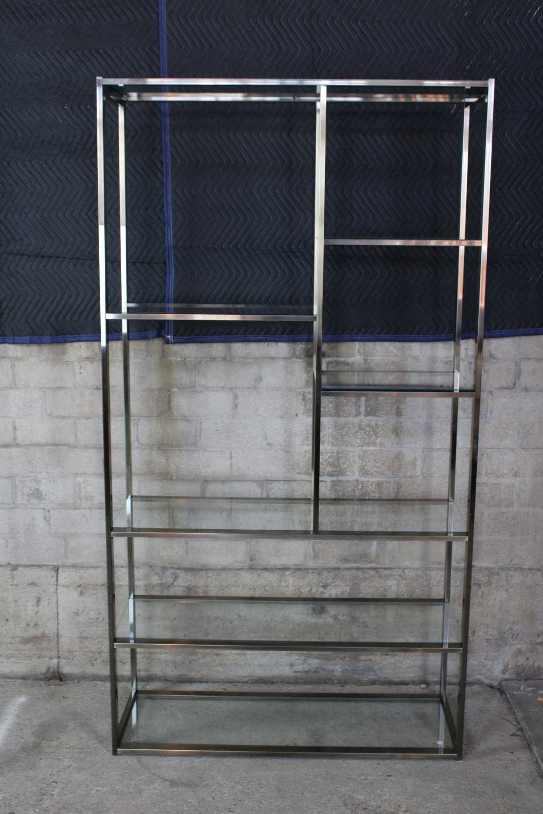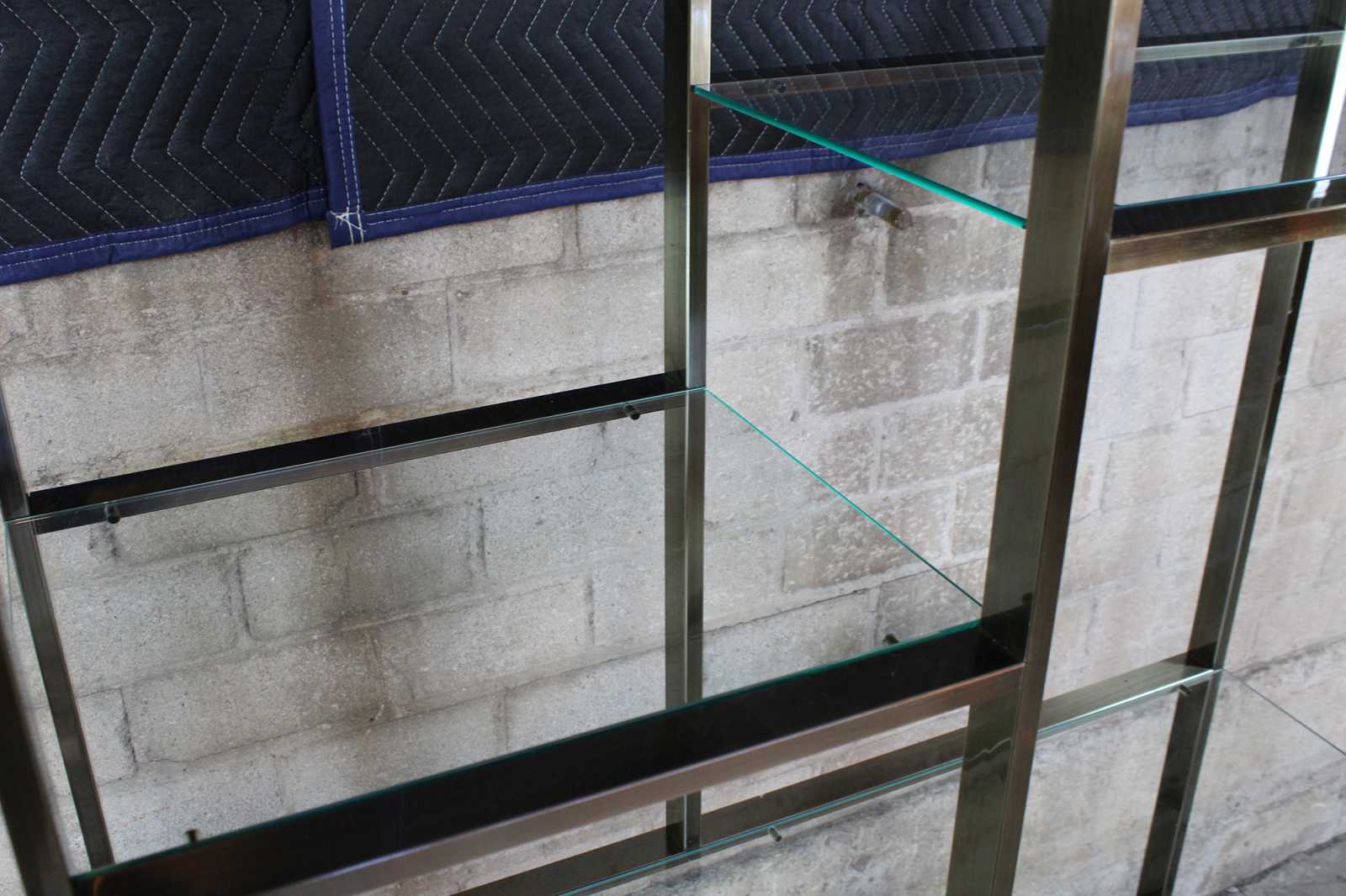 Vintage MCM LaBarge chrome and glass etagere or room divider. Features sleek modular design with polished chrome and exposed glass sides.