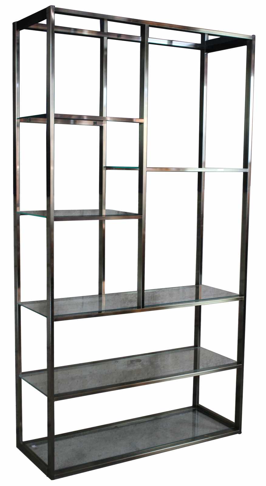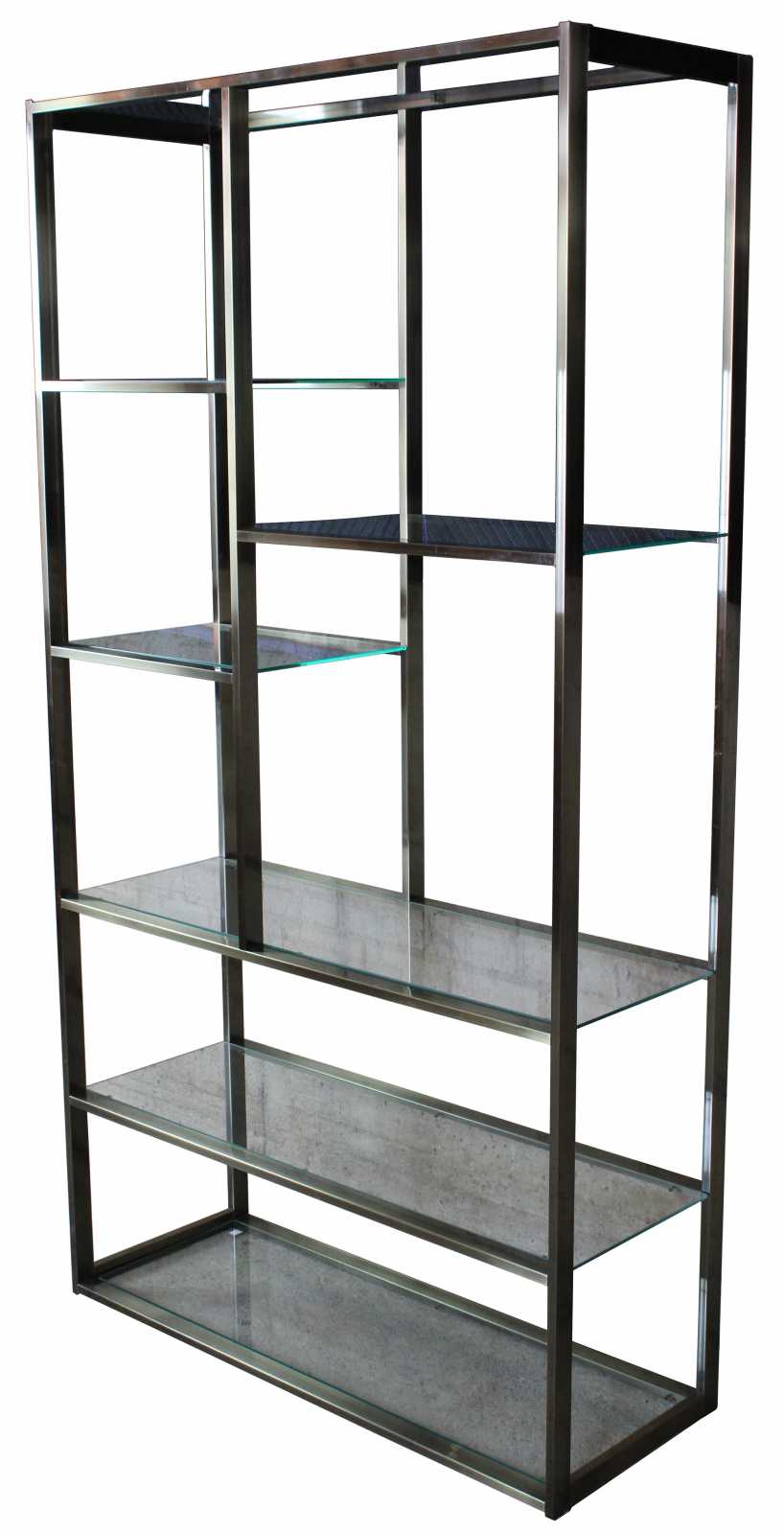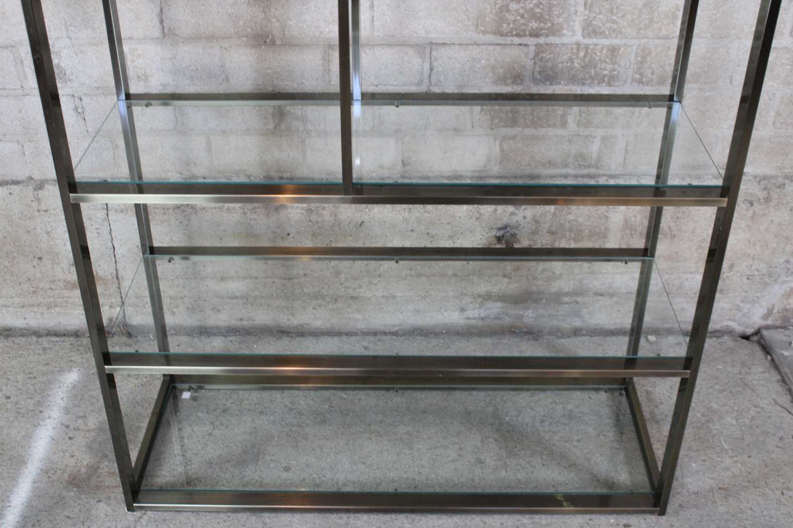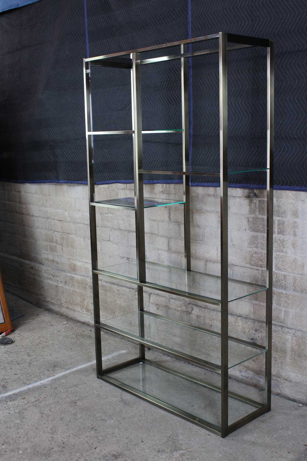 Vintage MCM LaBarge chrome and glass etagere or room divider. Features sleek modular design with polished chrome and exposed glass sides.