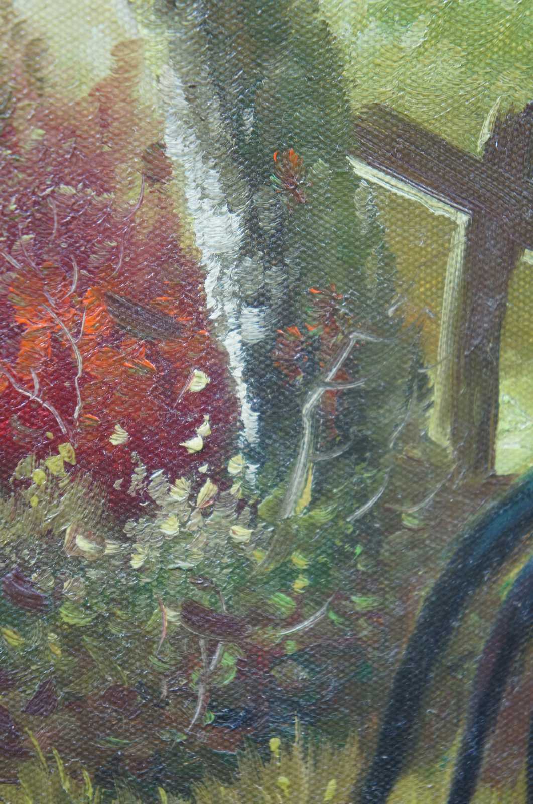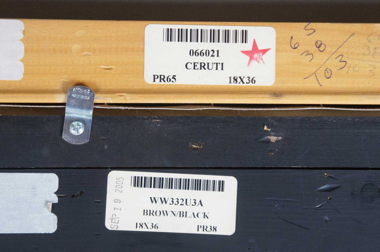 Large oil painting on canvas signed by W. Ceruti showing roosters in a grassy landscape.