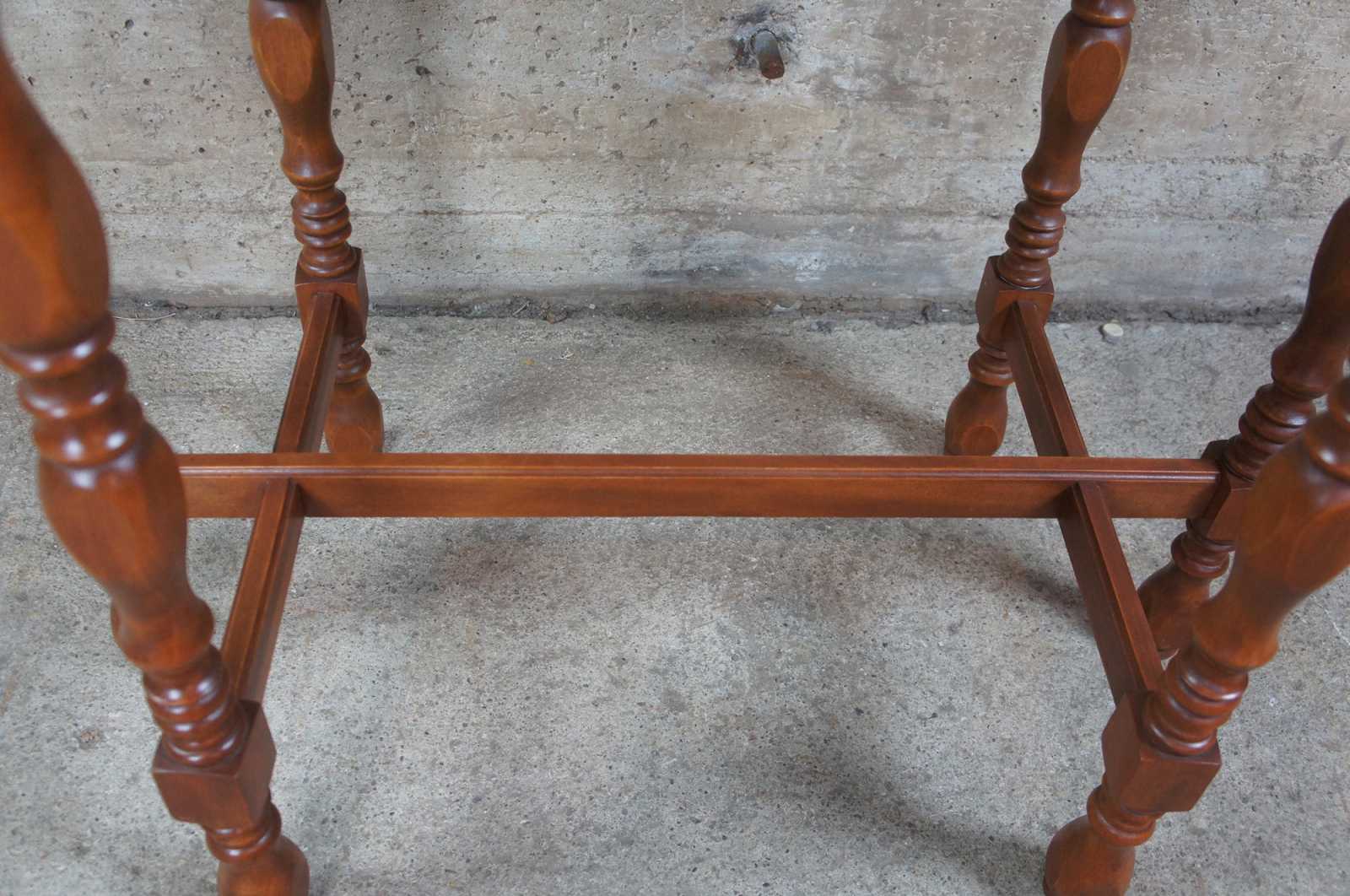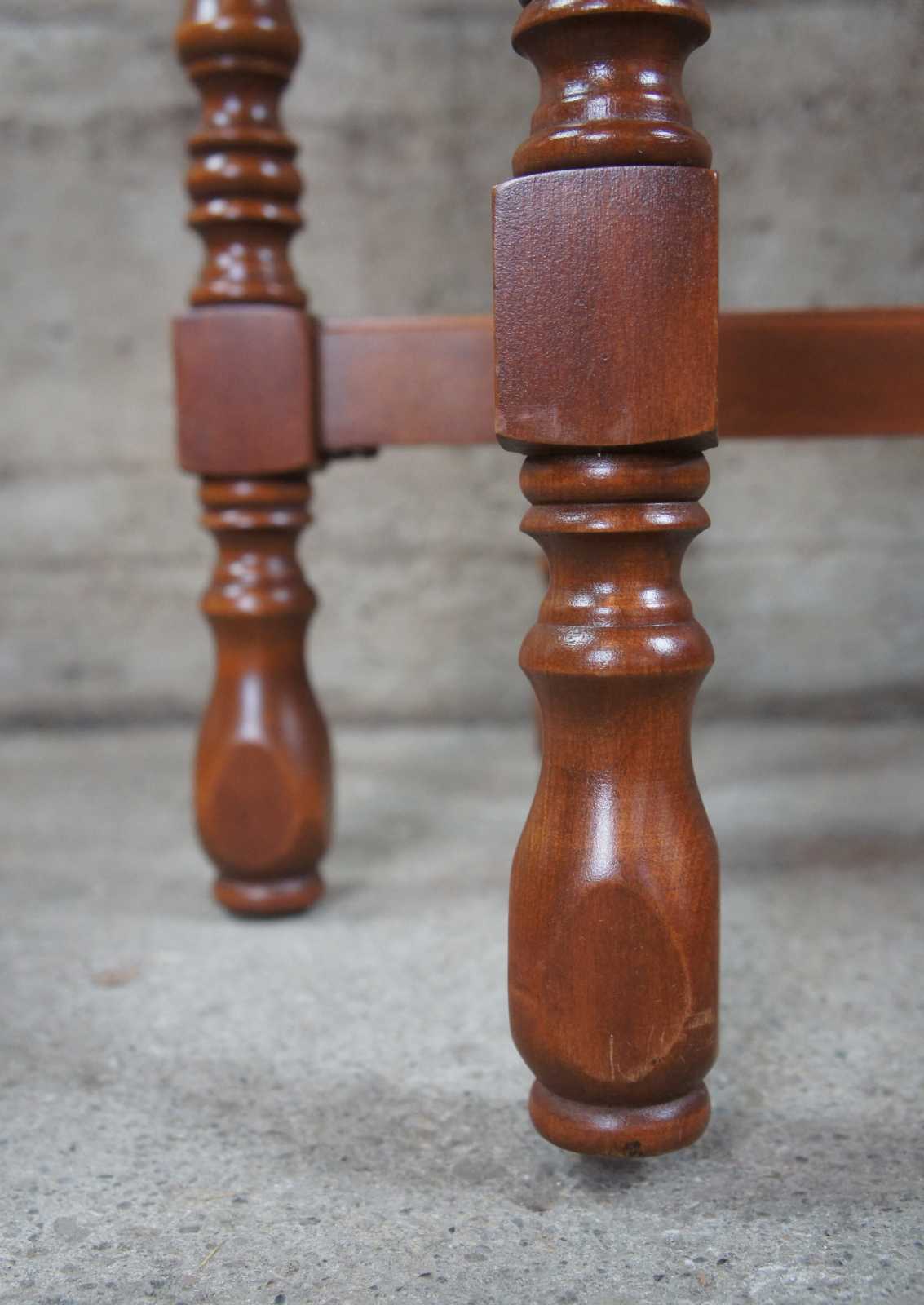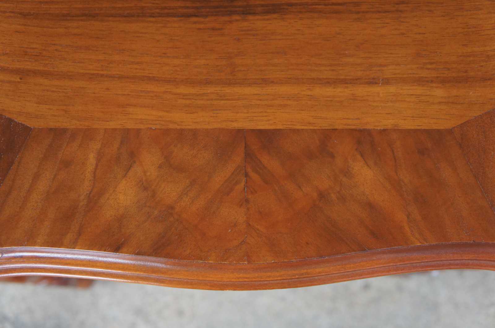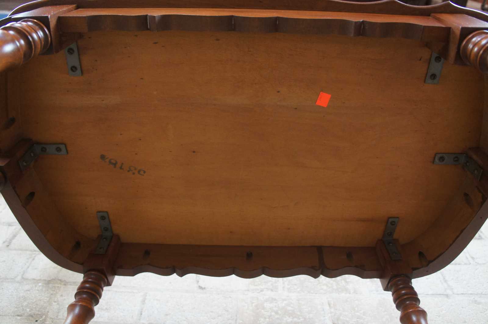 Vintage Jacobean side table. Made of walnut with a matchbook veneered top and scalloped serpentine shape supported by six turned legs and nubby feet.