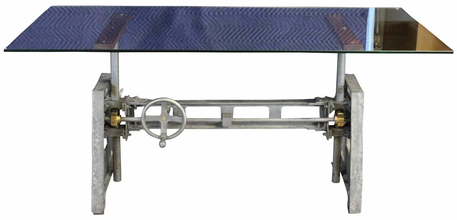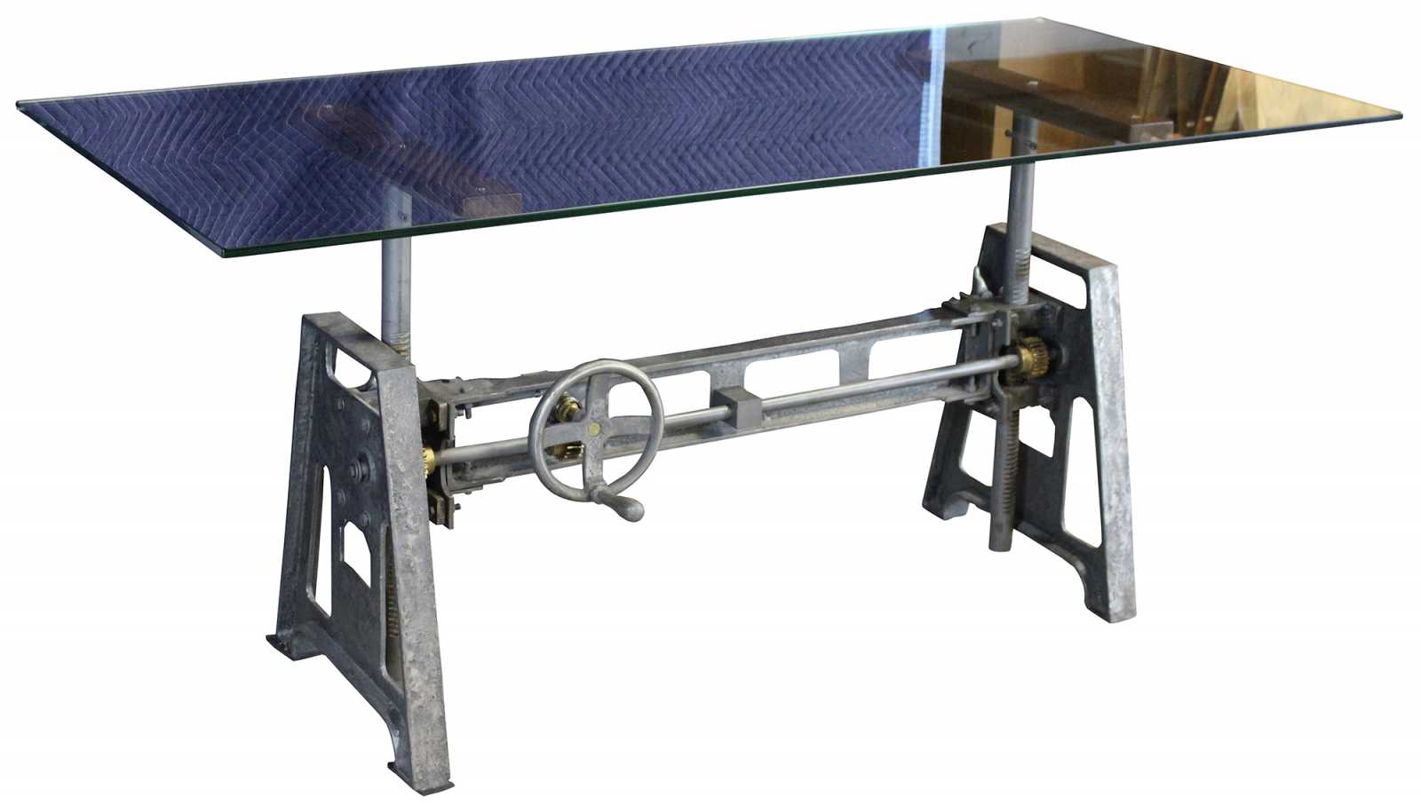 The iron base of Arhaus's Industrial Crank Desk is a feat in engineering with its functioning wheel and gear mechanism. Perfect for a home office or even dining rooms and bar areas, the height of this marvelous, modern desk adjusts to accommodate different uses and spaces. Finished with a simple glass top, to allow for 360-degree views. A versatile work surface that will perfectly fit into your design story.
