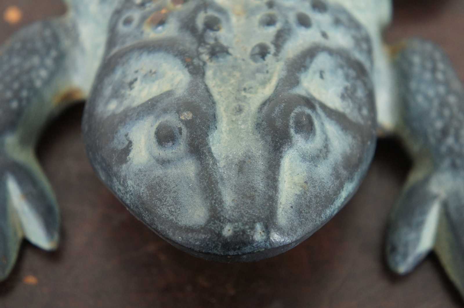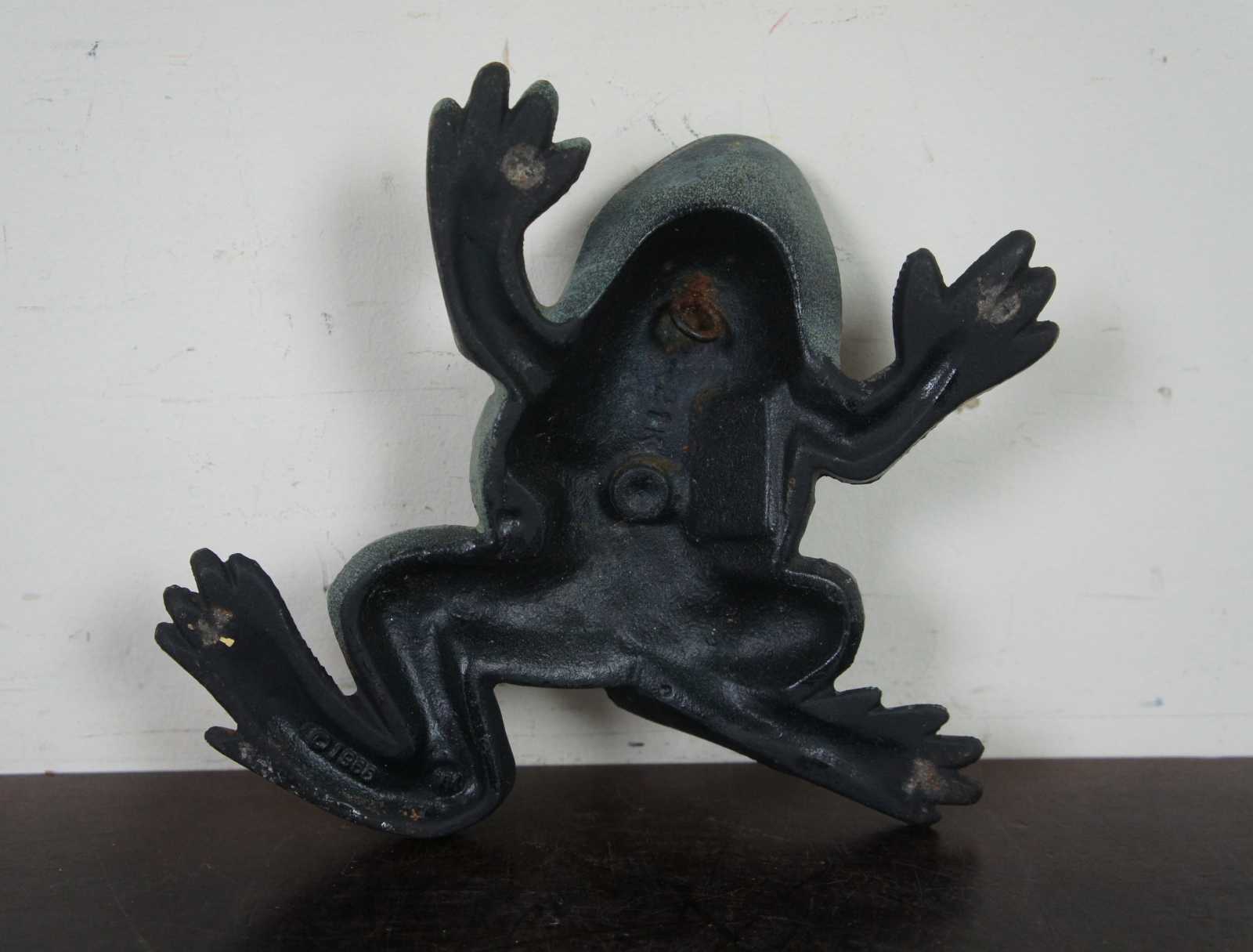 Vintage 1960’s cast iron leaping frog or toad shaped doorstop by Virginia Metalcrafters.
