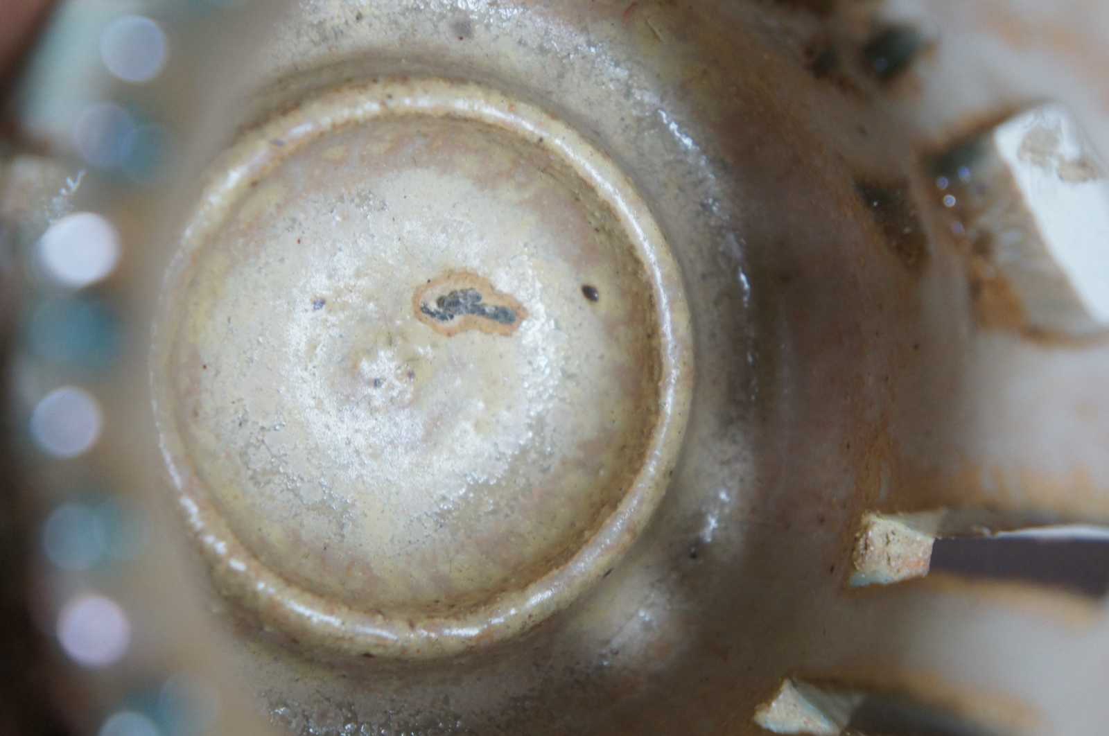 Vintage hand made ceramic candle holder by John Nartker, featuring a pierced butterfly design and a light turquoise glaze with brown details. Signed on vase. BIO: John Nartker (1930-1988) is a multi-media artist whose specialties are painting, printmaking, and designing in clay. His works have been shown in over 250 one-man, group, and invitational exhibitions both in the United States and abroad, and are included in public, private and corporate collections. John was awarded the Ohioana Citation as the outstanding visual artist in Ohio for the year 1985 and is the recipient of an Outstanding Educator in American Colleges and Universities award. His works have been published in “The Guild” by Kraus-Sikes of New York City. “The Great Chess Set” was included in the 1987 “Guiness Book of World Records. Kalida native John Nartker resided many years with his family in Cincinnati, OH and served as Professor of art at the College of Mount St. Joseph.