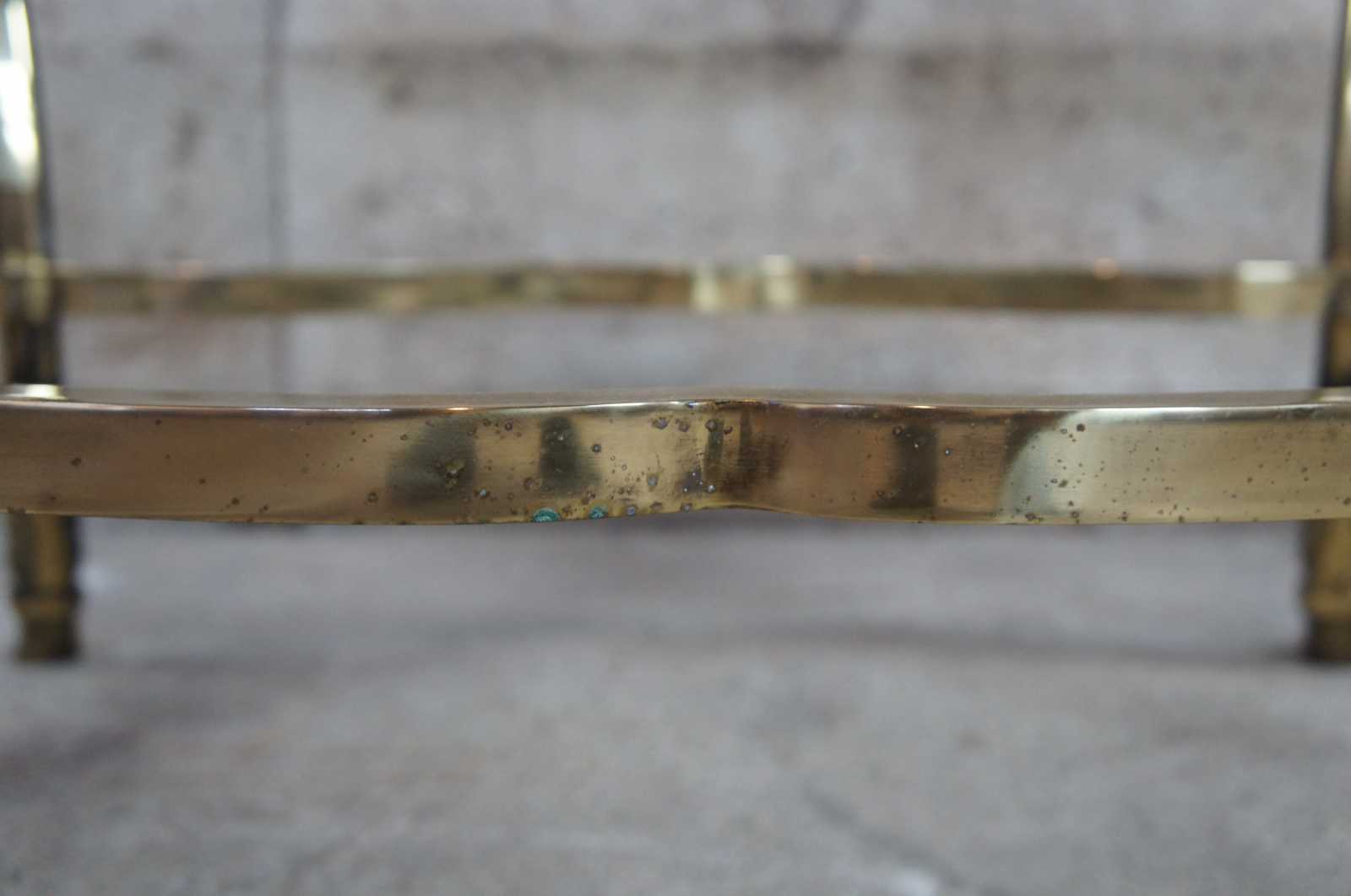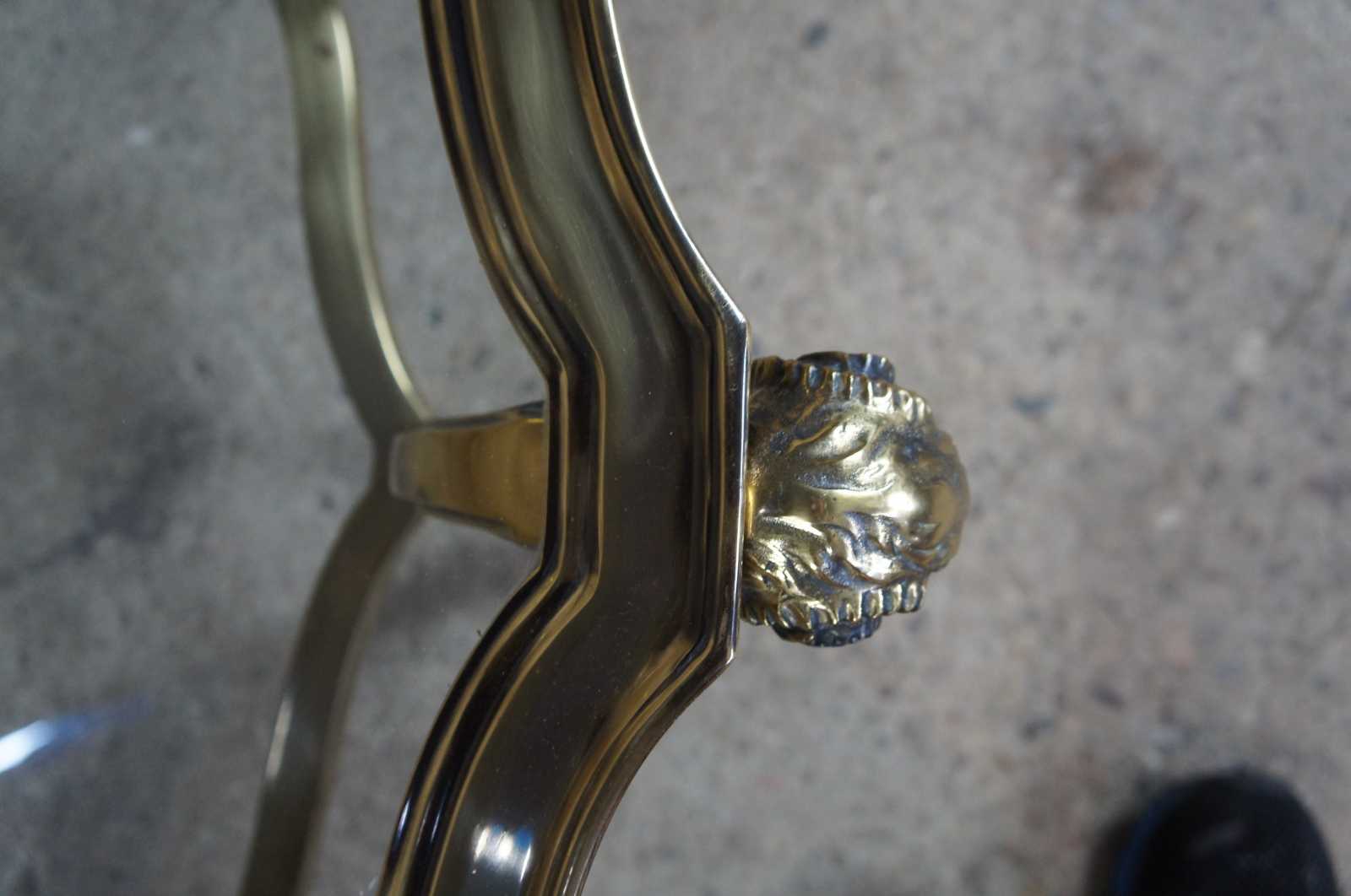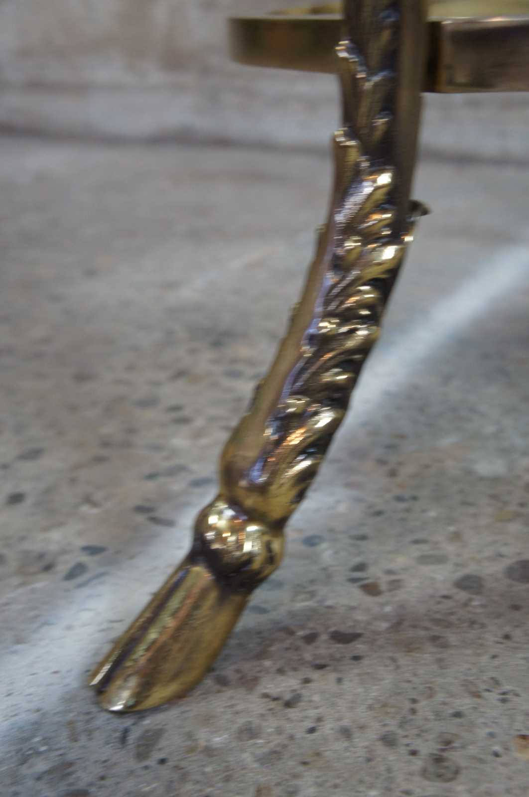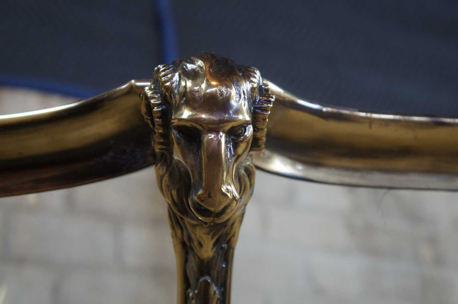 Solid brass sculptural rams head coffee table in Maison Charles and Hollywood Regency Style . Features scalloped edge border and intricately detailed rams head table feetering hoove feet.