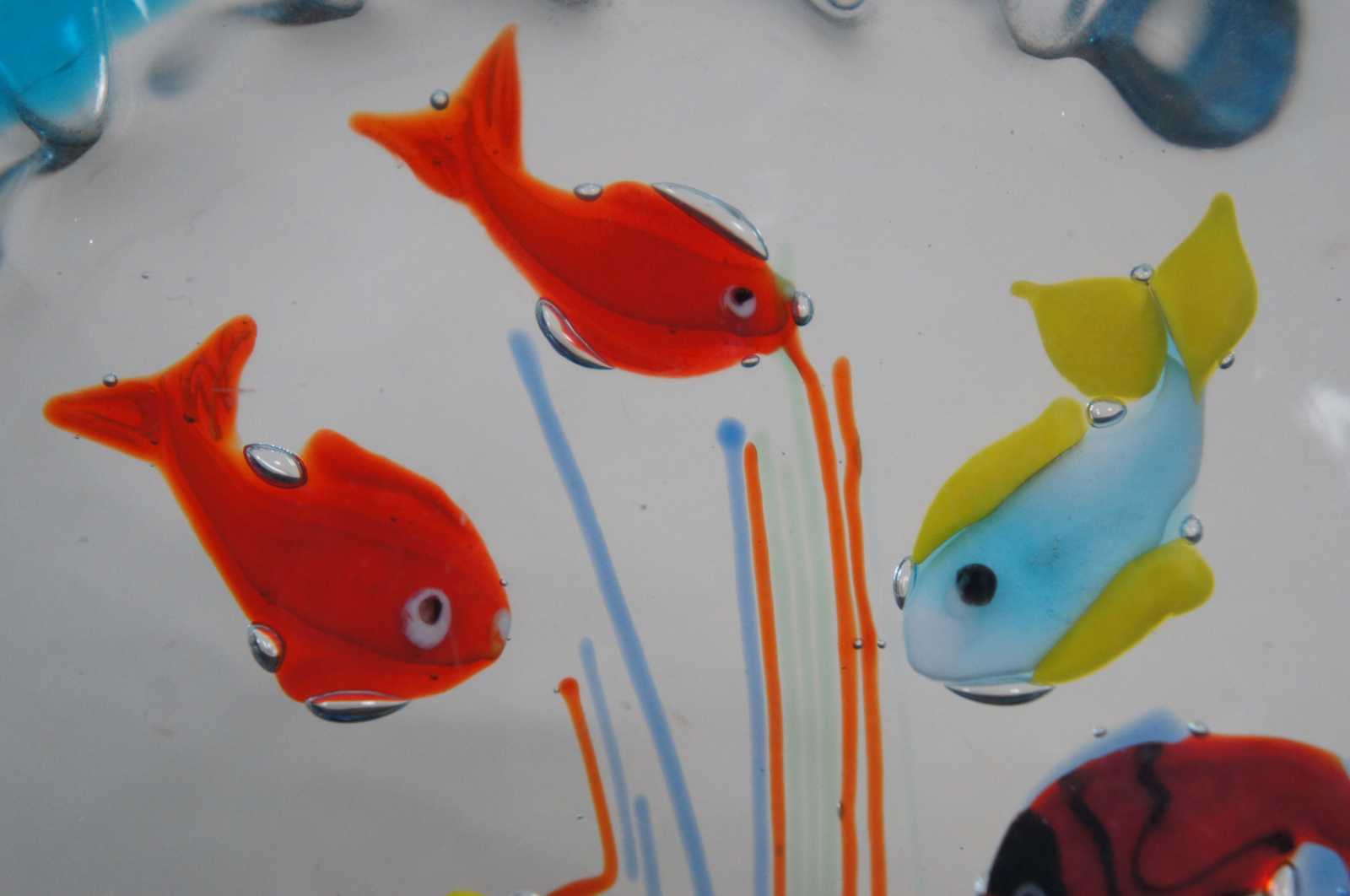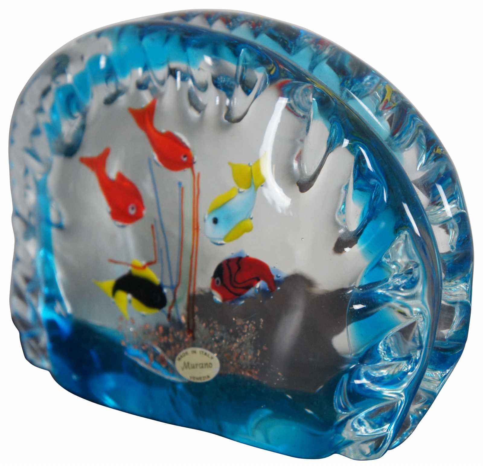 Italian art glass fish bowl paperweight, made in Murano with five fish. With original sticker Made in Italy Murano Venezia.