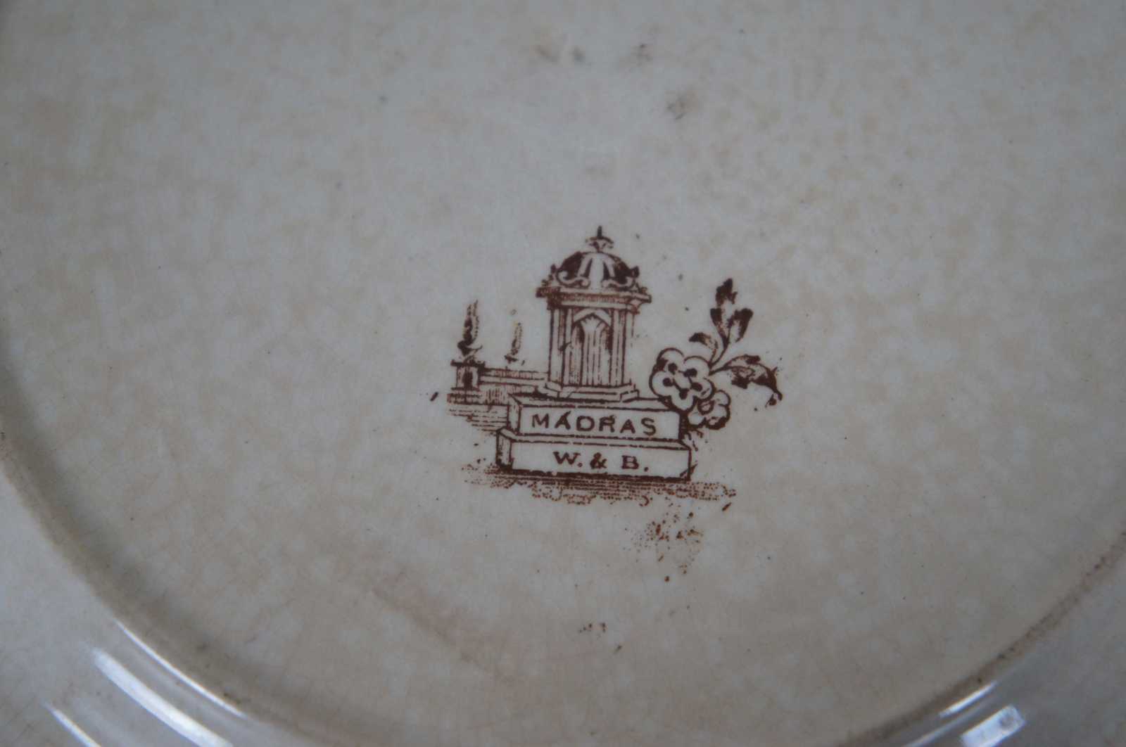 Set of four William Brownfield ironstone brown transferware plates in the Madras pattern.